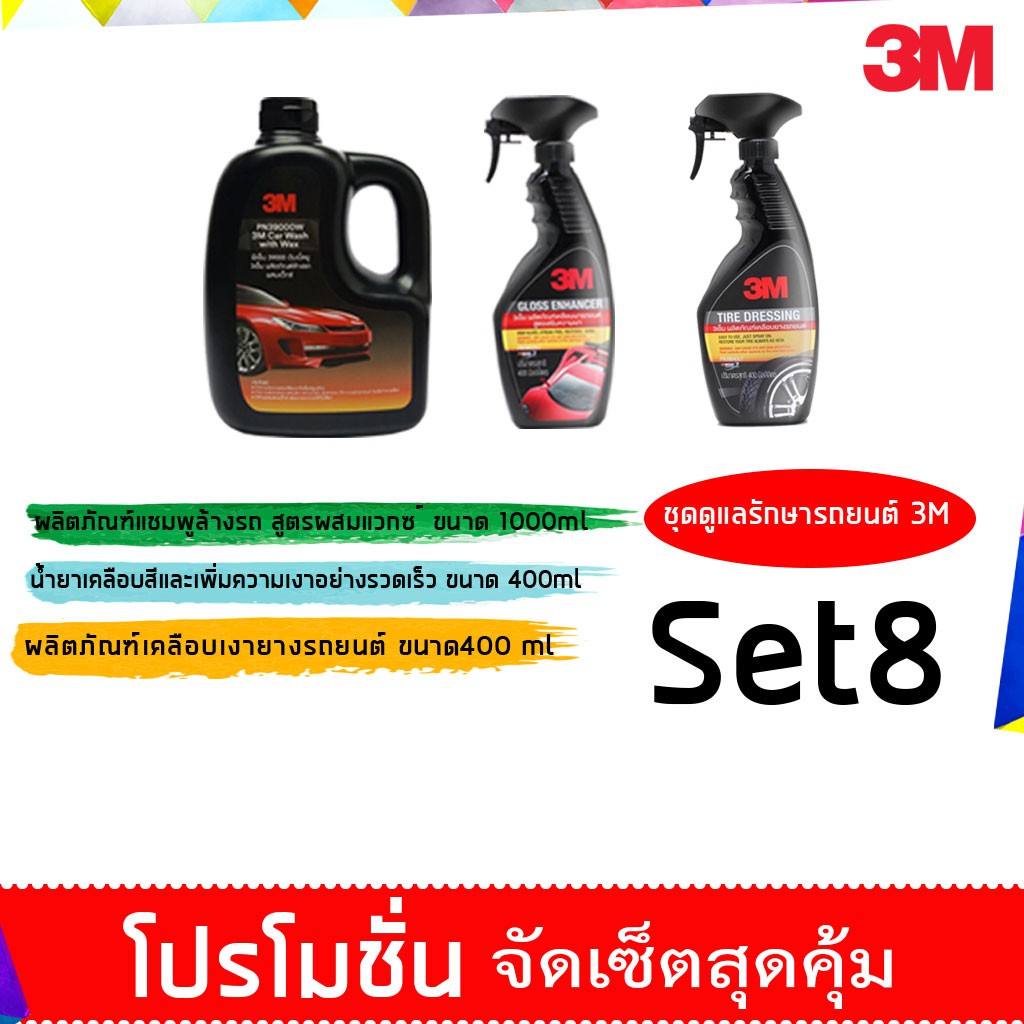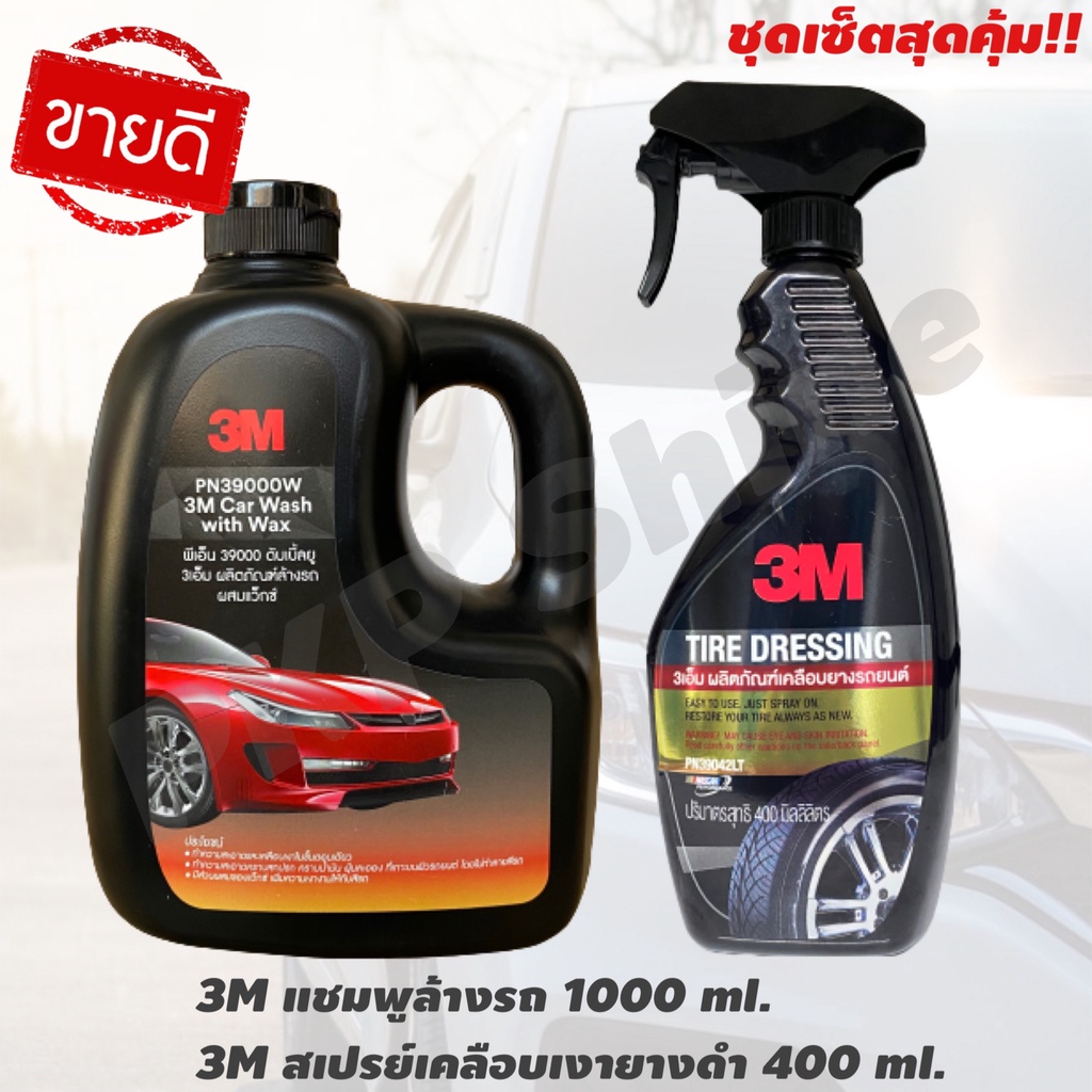 3M Set แชมพูล้างรถ ขนาด 1000 Ml. PN39000W + PN39041A เคลือบเบาะหนัง ยางรถยนต์ + PN39042LT เคลือบยางรถยนต์