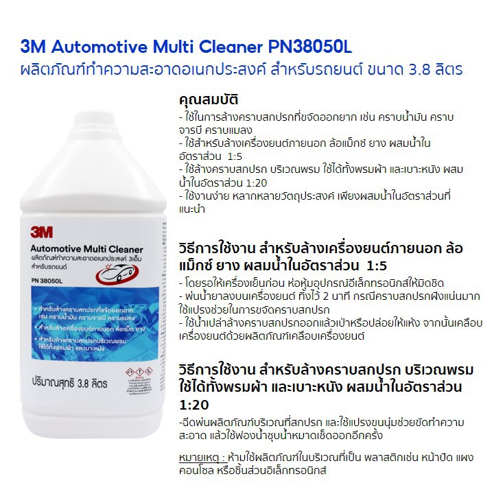 3M PN 38050L Automotive Multi Cleaner ผลิตภัณฑ์ทำความสะอาดอเนกประสงค์ ล้างคราบน้ำมัน คราบจารบี คราบแมลง ขนาด 3.8 ลิตร