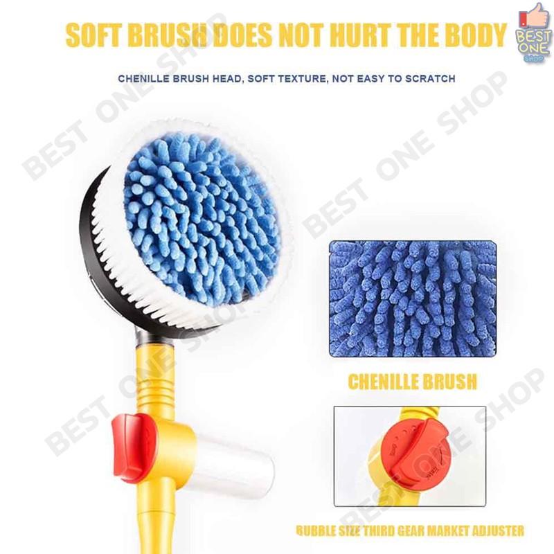 A225 แปรงล้างรถหมุนอัตโนมัติ มีช่องใส่น้ำยาล้างรถ ขนแปรงนุ่ม Chenille fiber ปรับความยาวได้ สะดวก