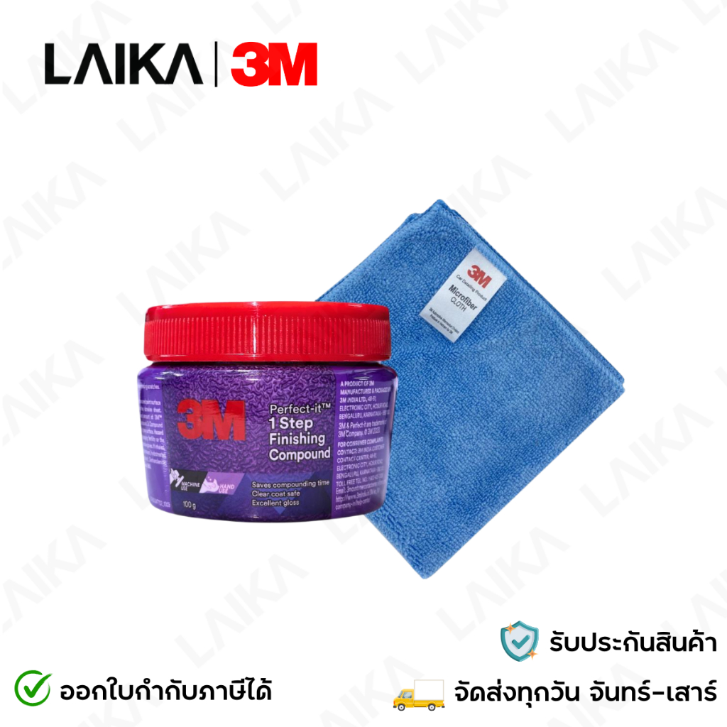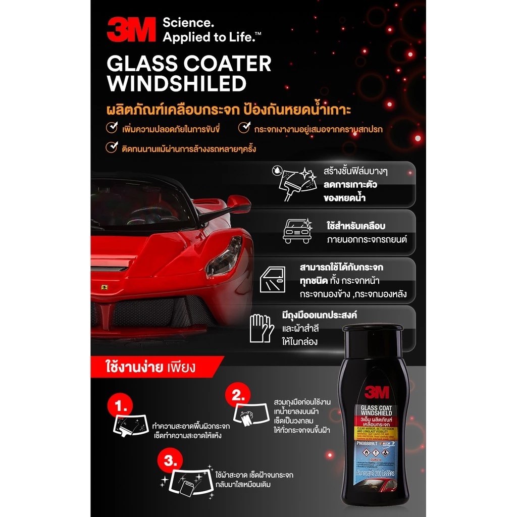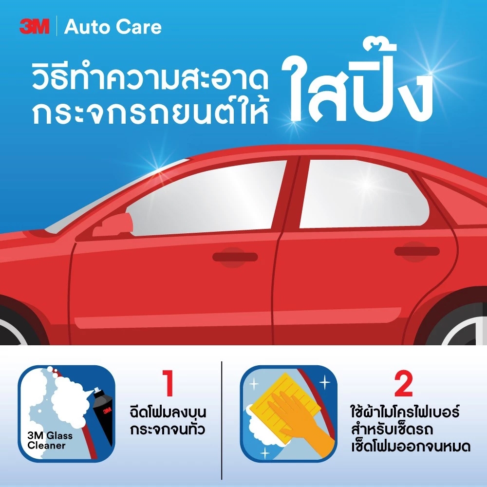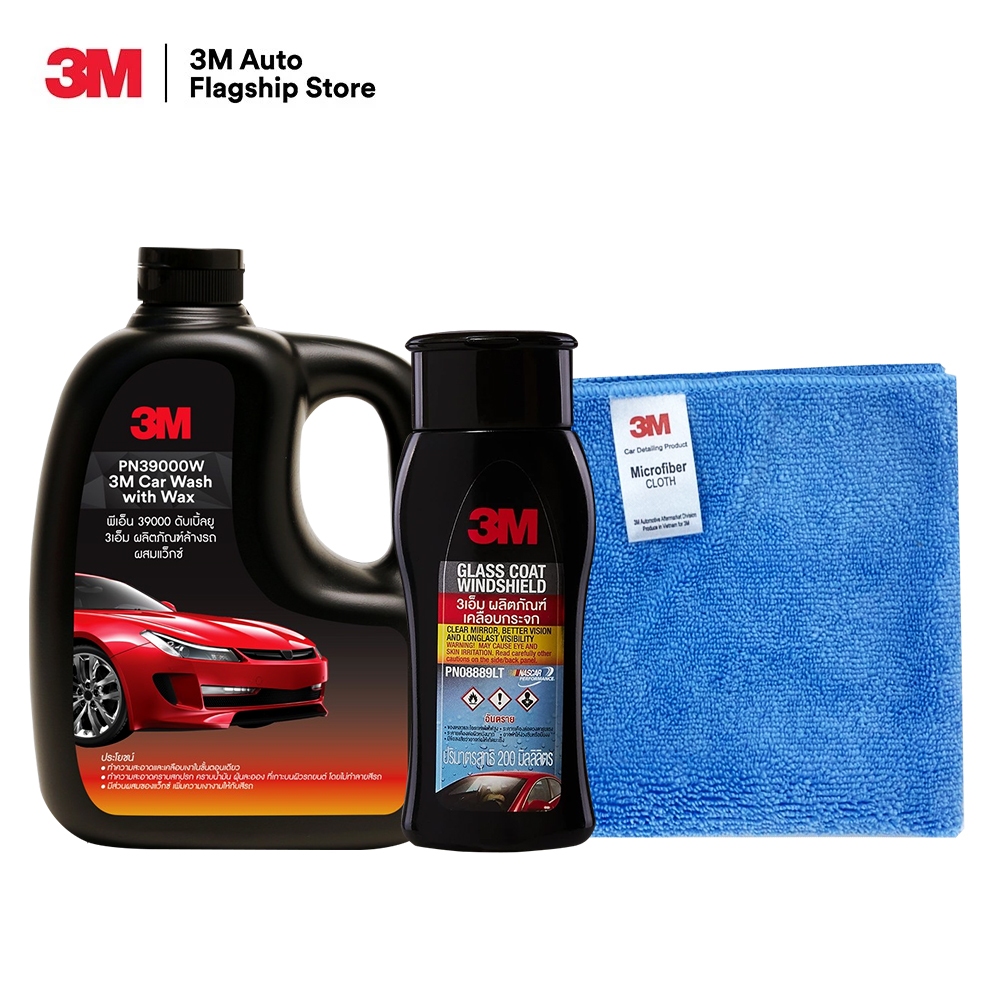 3M Set แชมพูล้างรถ PN39000W + เคลือบกระจก PN08889LT + ผ้าไมโครไฟเบอร์ 30×30 cm. สีฟ้า