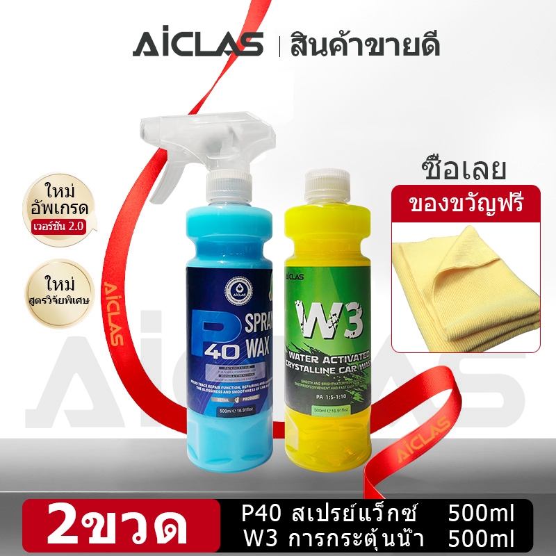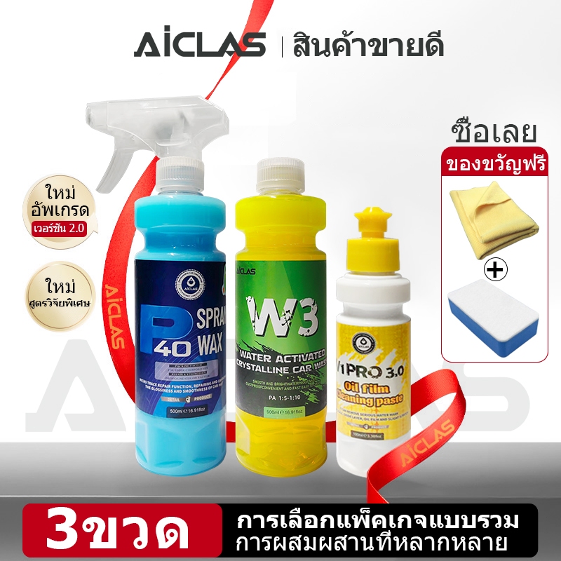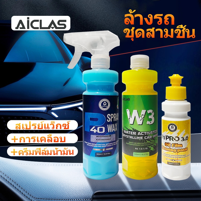 AICLAS น้ำยาเคลือบแว็กซ์ขัดเงาแบบรวดเร็วที่เปิดใช้งานด้วยคริสตัลน้ำ โมเลกุลที่ไม่ชอบน้ำ น้ำยาบำรุงรักษาสีรถ W3+P40