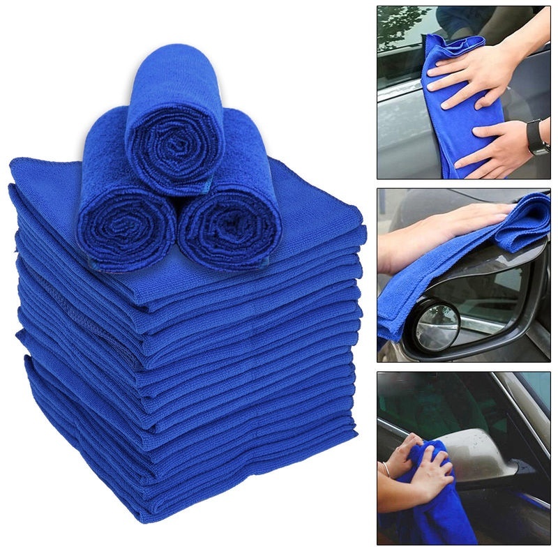 ผ้าขนหนูไมโครไฟเบอร์สีฟ้าขนาด 30×30 ซม . สําหรับทําความสะอาดรถยนต์ 10 ชิ้น