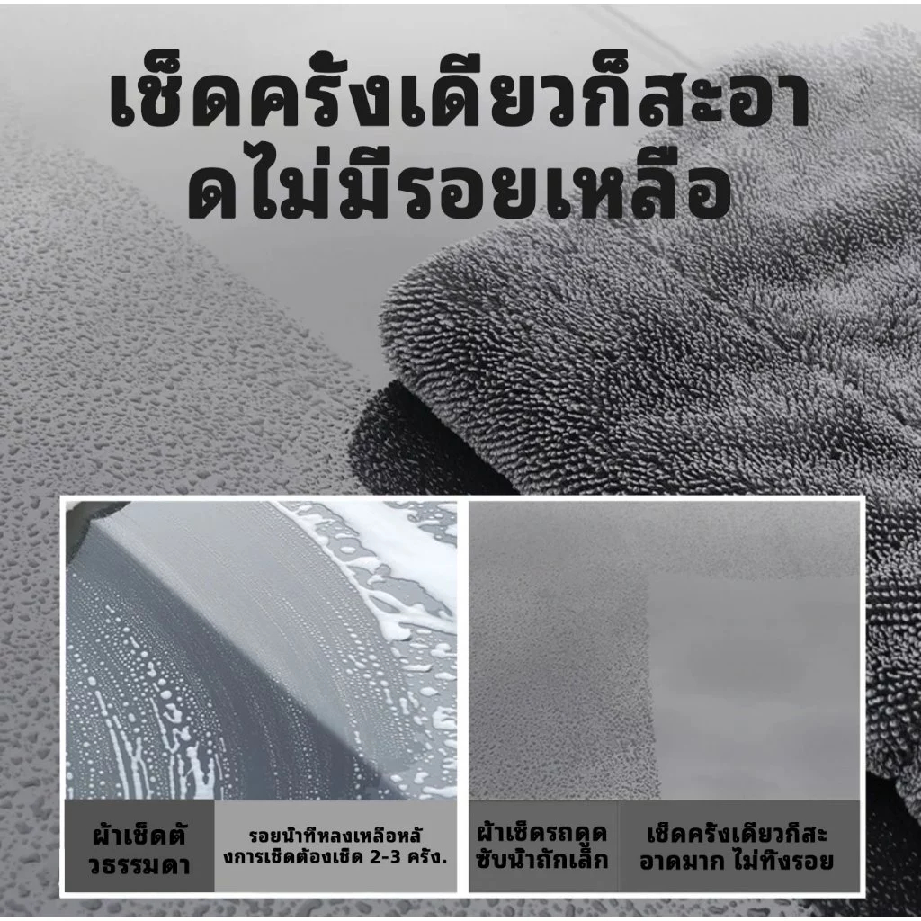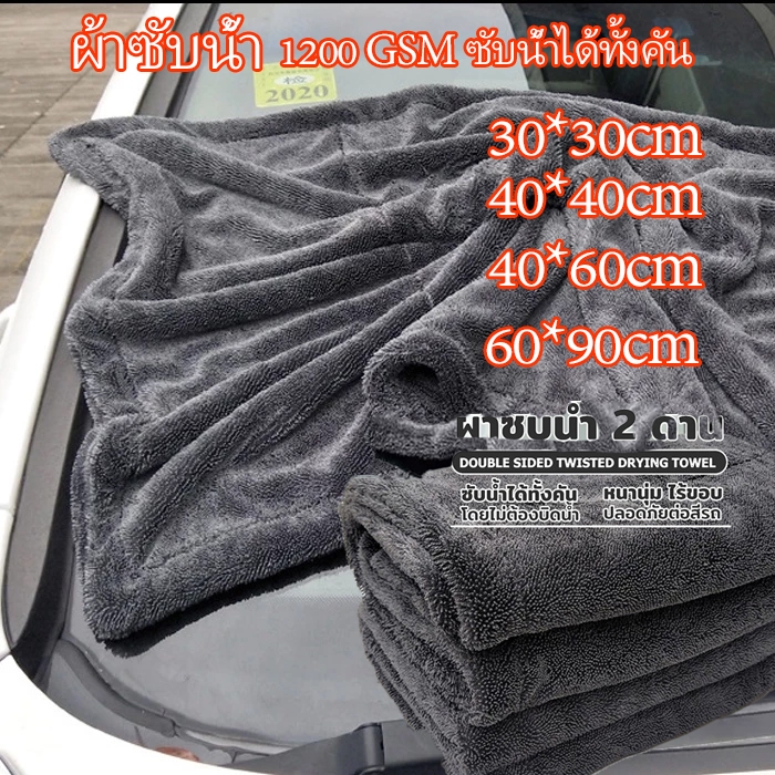 ผ้าซับน้ำ ผ้าซับน้ำ ผ้าเช็ดรถ 1200 GSM ซับน้ำได้ทั้งคัน โดยไม่ต้องบิดน้ำ หนานุ่ม ไร้ขอบ ปลอดภัยต่อสีรถ