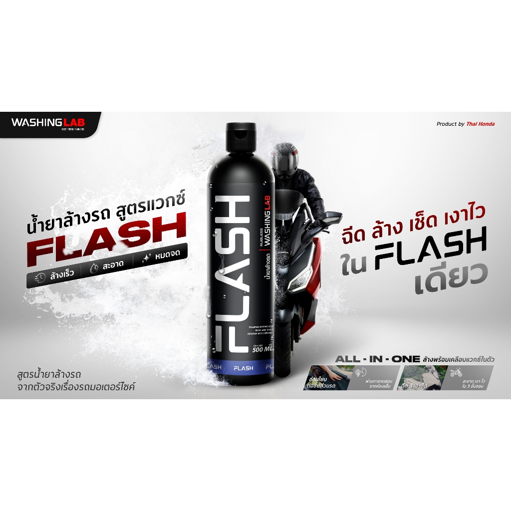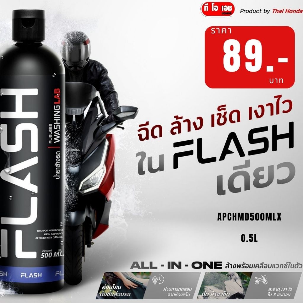 น้ำยาล้างรถ สูตรแวกซ์ FLASH ฉีด ล้าง เช็ด เงาไว ใน FLASH เดียว APCHMD500MLX 0.5 L