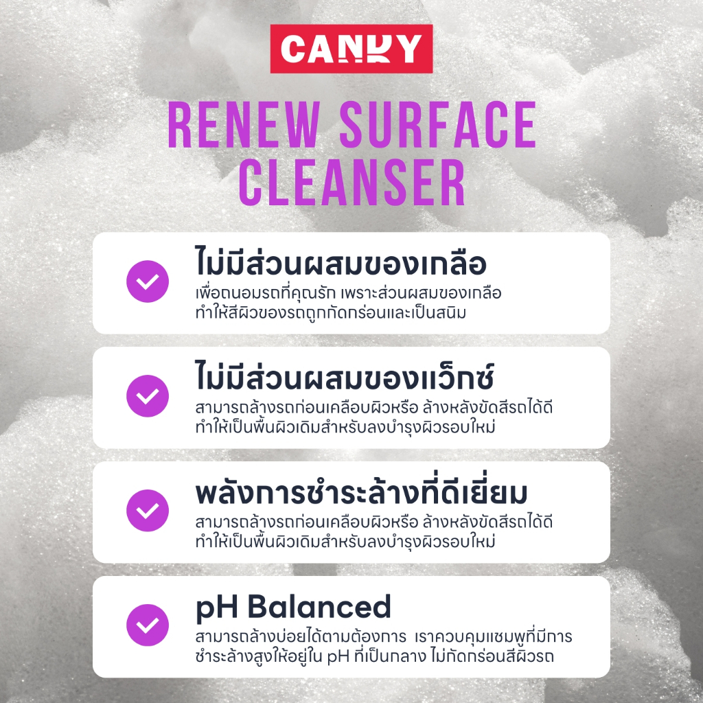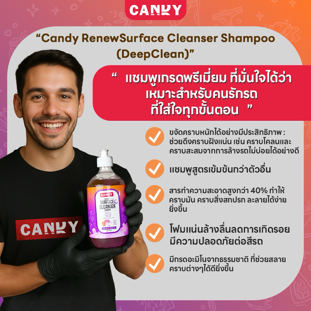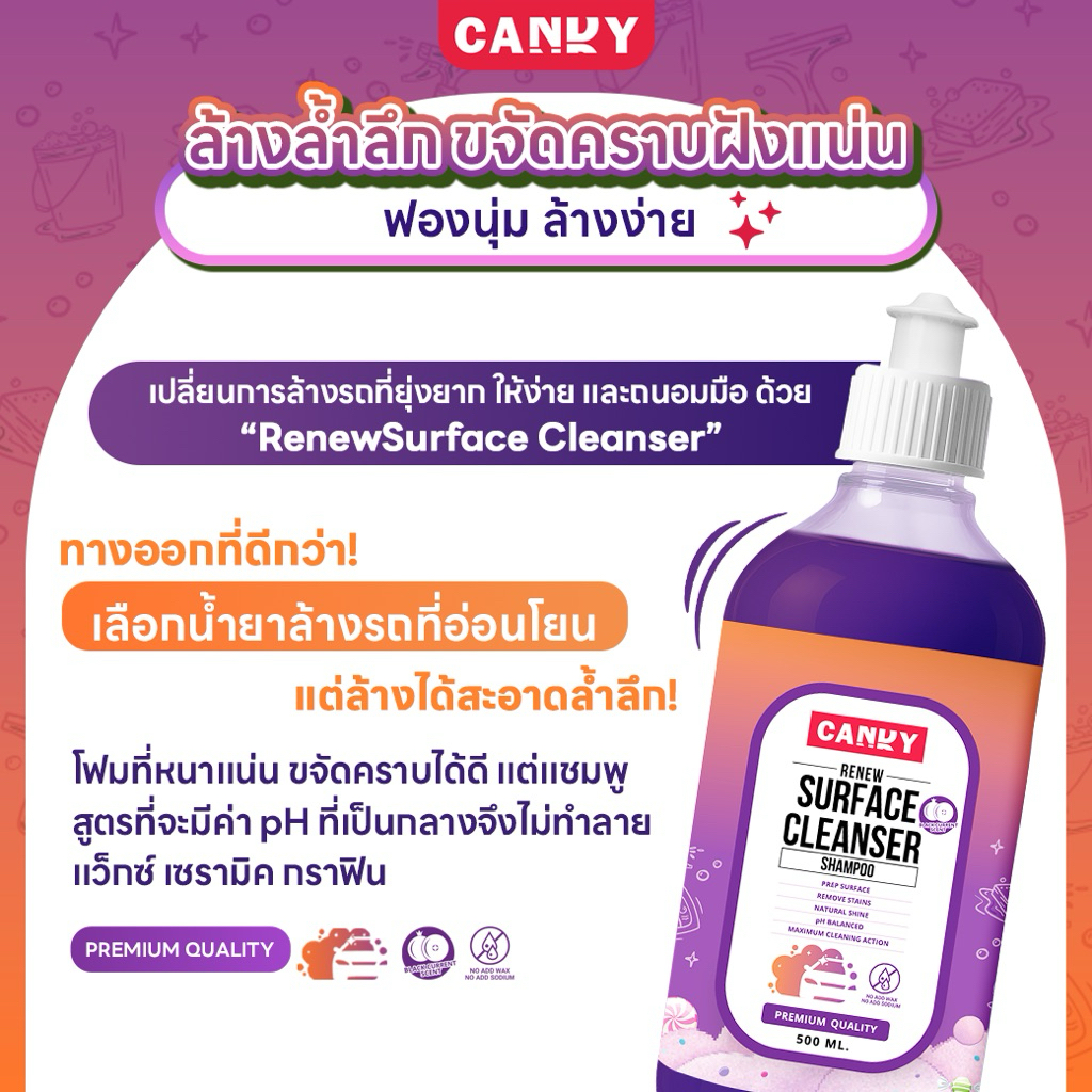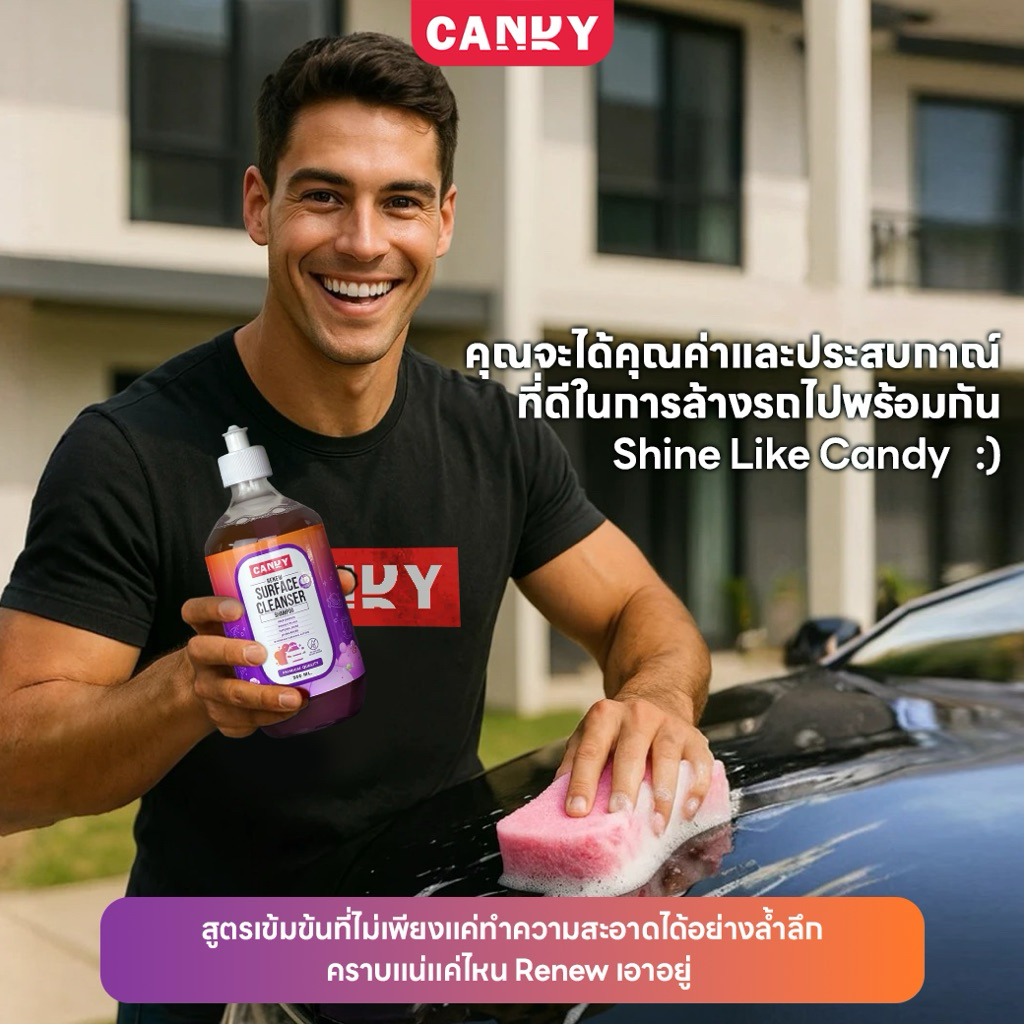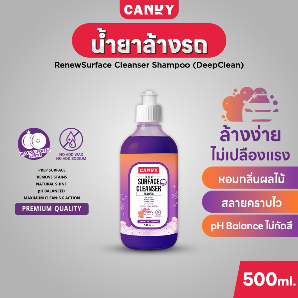 น้ำยาล้างรถ CandyRenewSurface Cleanser Shampoo (DeepClean)หอมผลไม้ ล้างง่าย ขจัดคราบหนัก pHกลาง