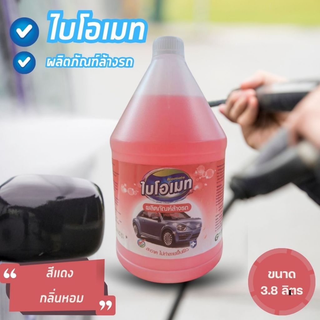 น้ำยาล้างรถ ขจัดคราบ ไบโอเมท สีแดงกลิ่นหอม ขนาด 3.8 ลิตร