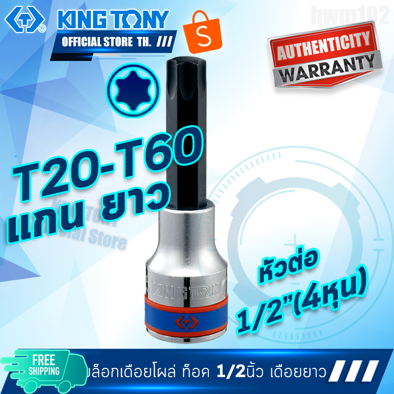 KINGTONY ลูกบล็อกเดือยโผล่ท็อค 1/2″ 4หุน T20 T25 T27 T30 T30 T40 T50 T60 70 ยาว 4033 แกนจีบดาว6แฉก คิงก์โทนี่ไต้หวันแท้