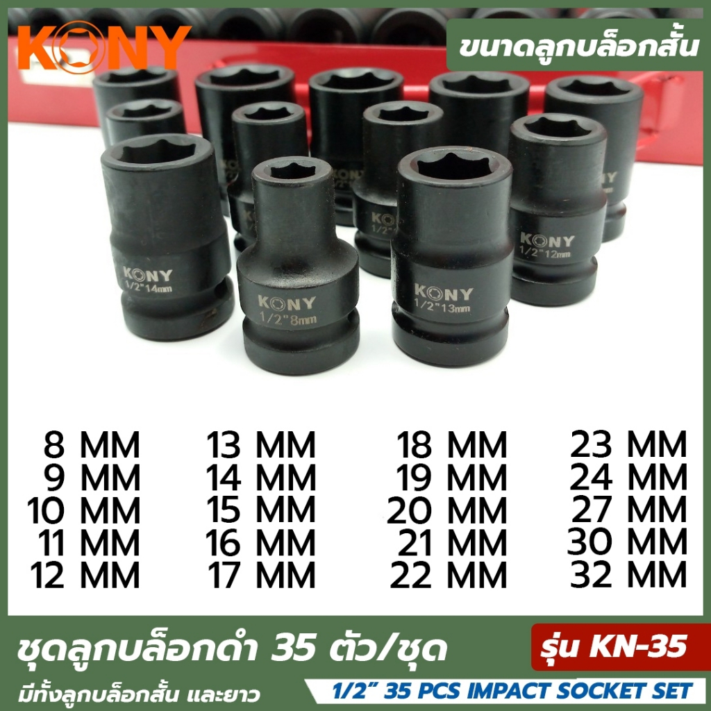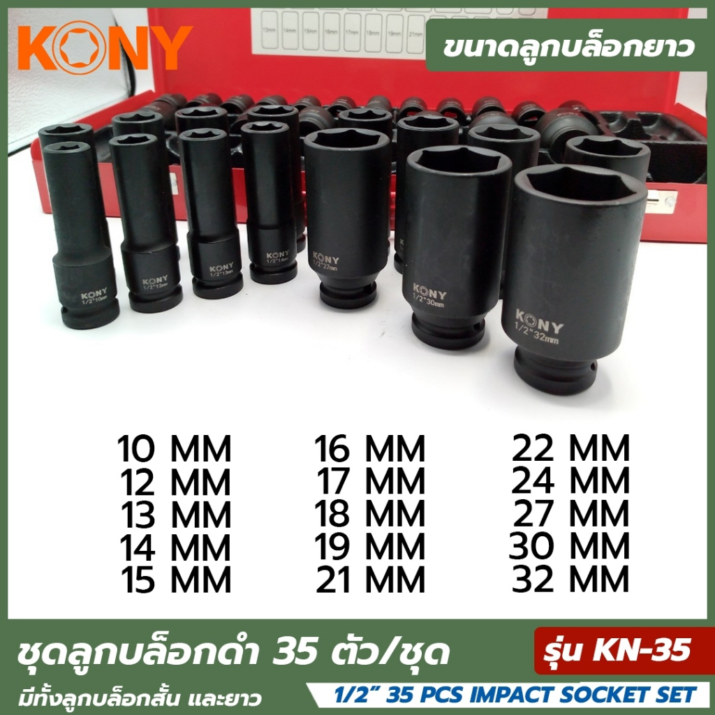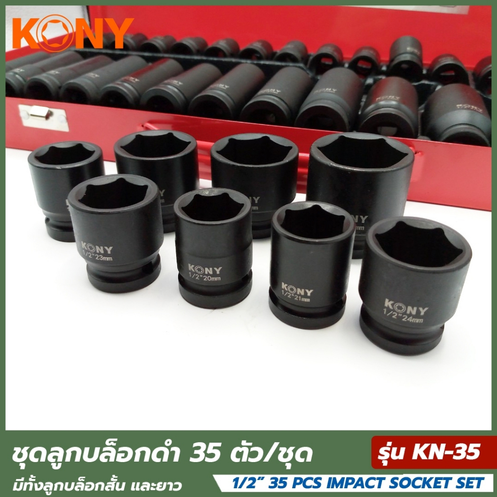 KONY ชุดบล็อกดำ 1/2″ 35 ชิ้น/ชุด ลูกบล็อกสั้น ลูกบล็อกยาว ลูกบล็อกดำ ลูกบล็อกลม ลูกบล็อค ลูกบล็อก 1/2