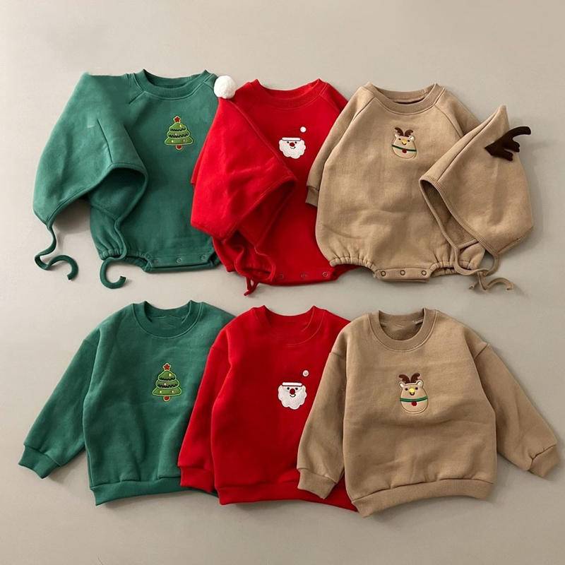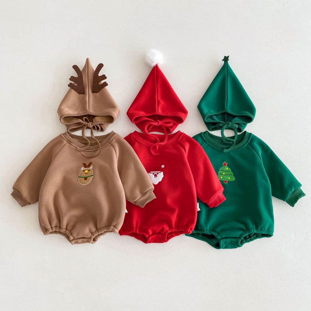 Ins ชุดรอมเปอร์ แขนยาว มีฮู้ด ผ้ากํามะหยี่ แบบหนา ลายคริสต์มาส แฟชั่นฤดูใบไม้ผลิ และฤดูใบไม้ร่วง สําหรับเด็กผู้ชาย และเด็กผู้หญิง