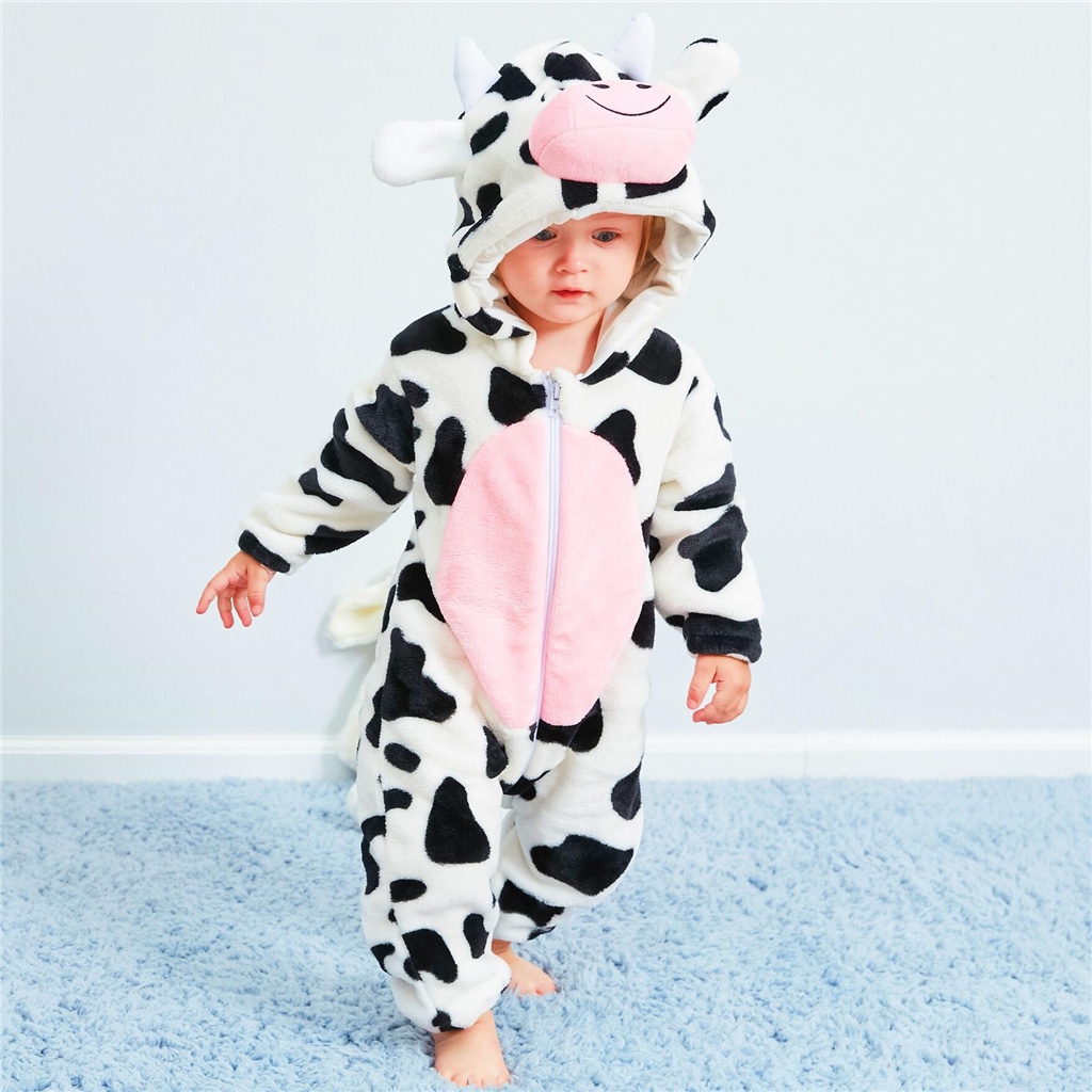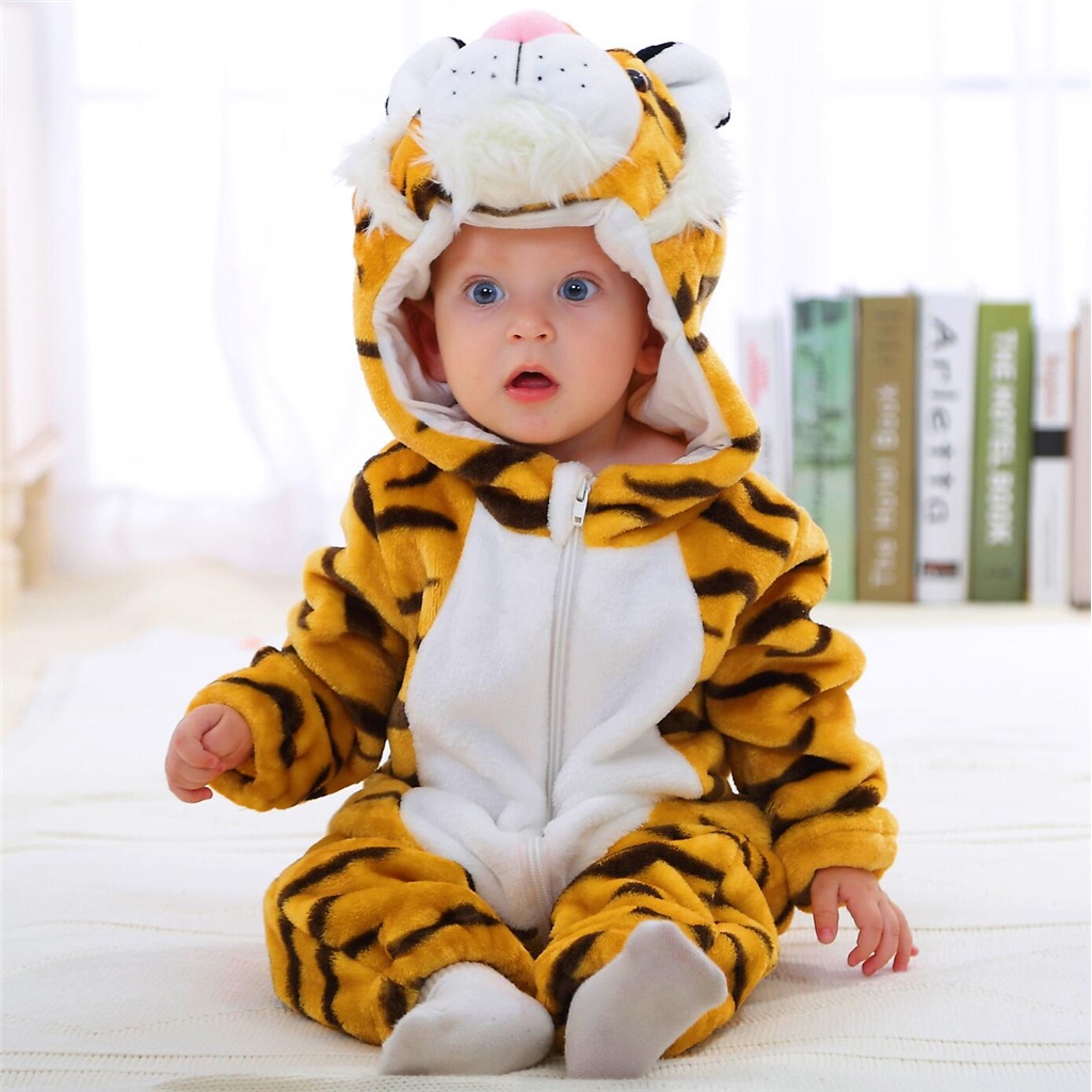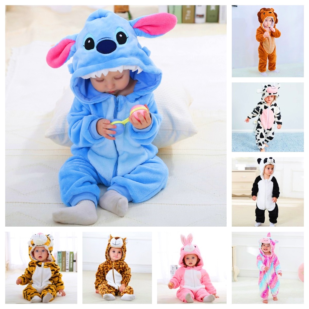 Kigurumi ชุดจั๊มสูทรอมเปอร์ วันพีช ผ้าสักหลาด ลายการ์ตูนสิงโต แพนด้า วัว กระต่าย น่ารัก ฤดูหนาว สําหรับเด็กทารกแรกเกิด