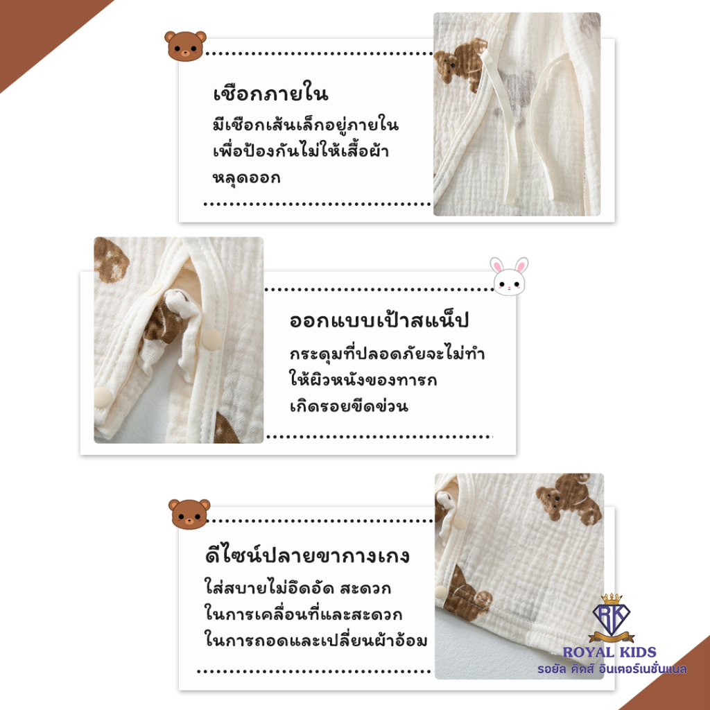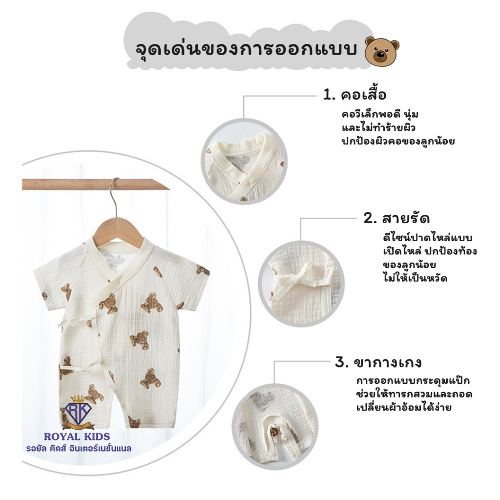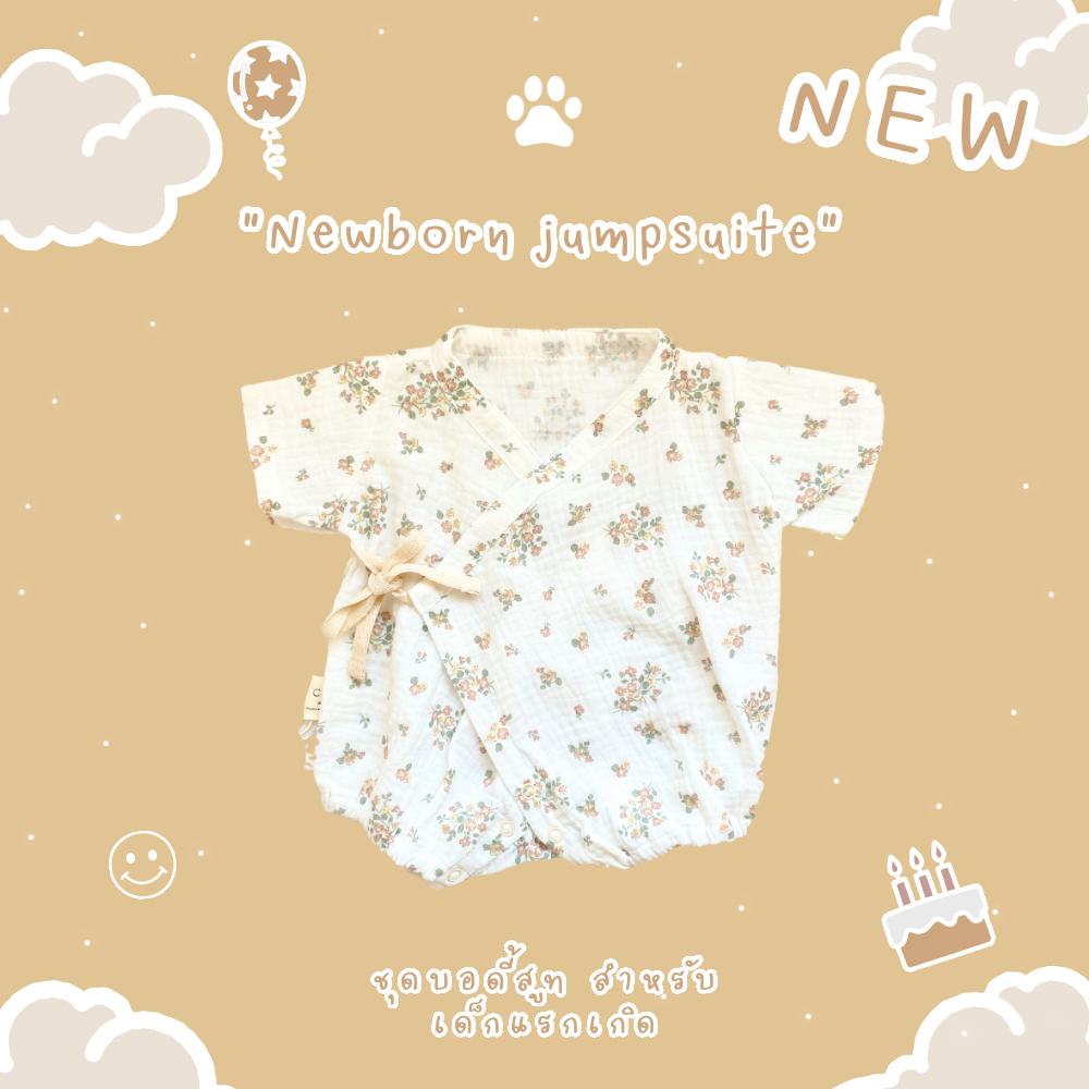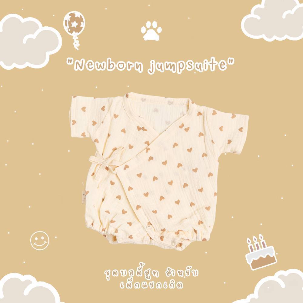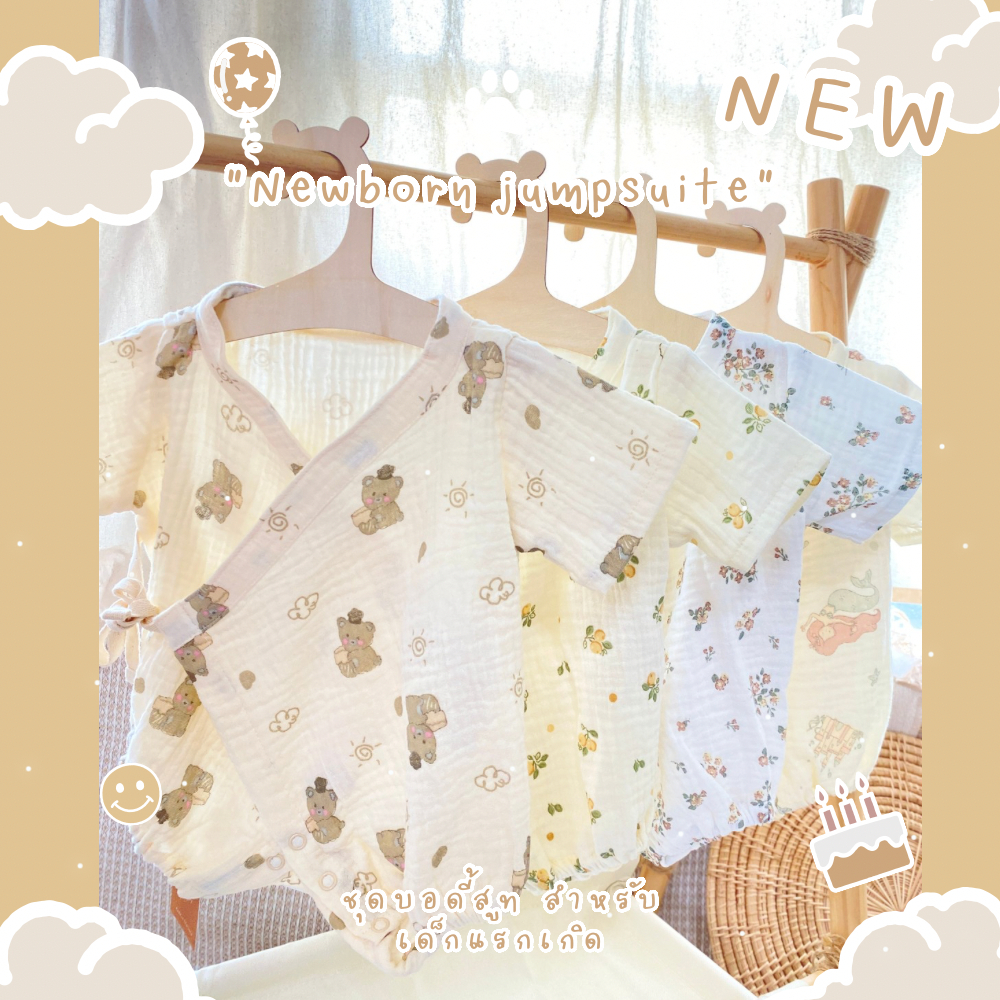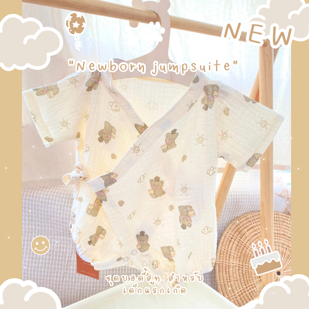 Cali บอดี้สูท เด็กอ่อน 0-3 เดือน ผูกหน้าผ้ามัสลินทอ สไตล์เกาหลี 🤎Collection teddy *ป้าย Cali baby