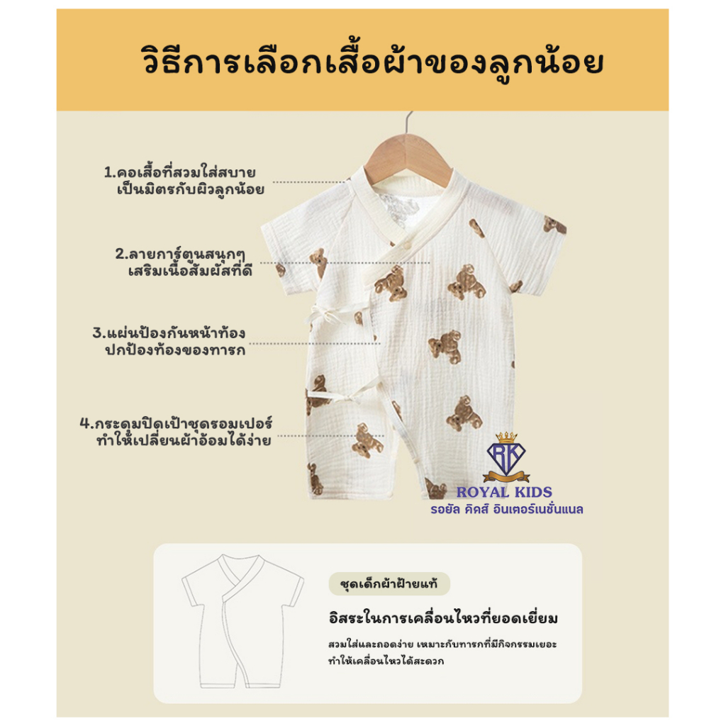 F0068 ชุดเด็กอ่อน แบบญี่ปุ่นน่ารัก ชุดเด็กผูกหน้า บอดี้สูทเด็กผูกหน้า เสื้อผ้าเด็กอ่อน เสื้อผ้าเด็กแรกเกิด