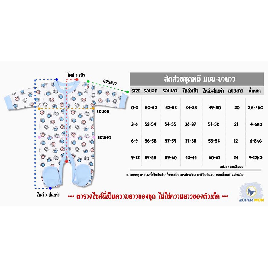 Zuper Mom ชุดหมีเด็กอ่อน บอดี้สูทเด็กอ่อน ชุดเด็กแรกเกิด บอดี้สูทเปิดเท้า ผ้า cotton 100% สำหรับเด็ก 0-12 เดือน no.5030