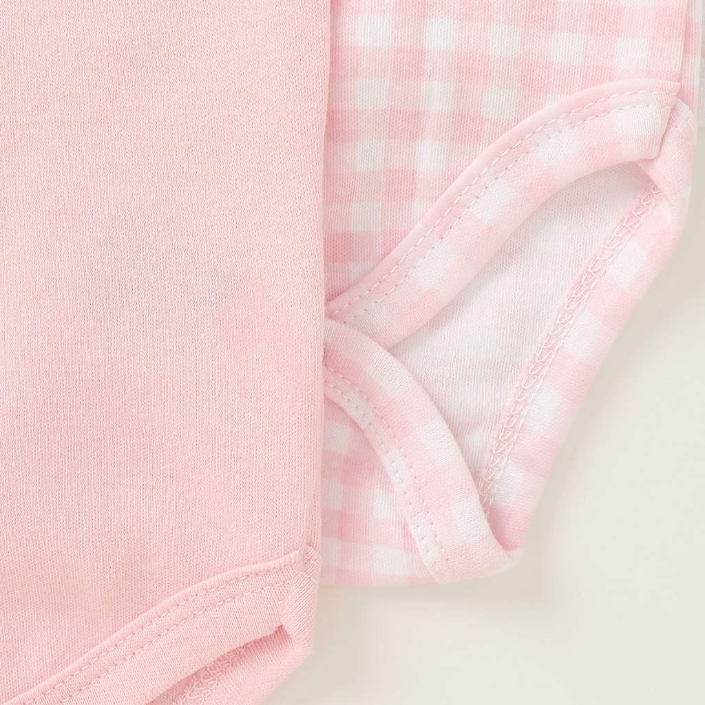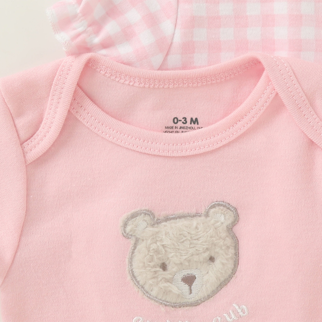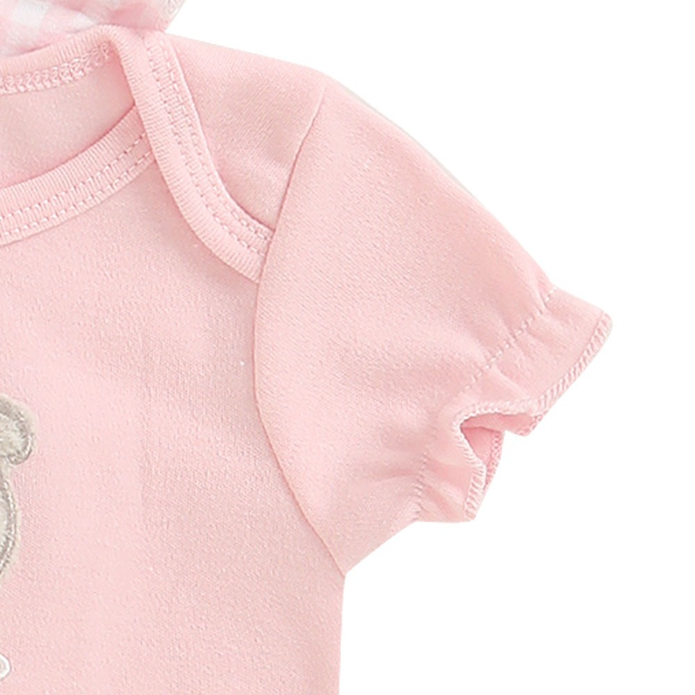 PAYI BABY-3 ชิ้น หมีสีชมพูลายสก๊อต เด็กทารก ทารก ผ้าฝ้ายนุ่มชุดบอดี้สูทแขนสั้น