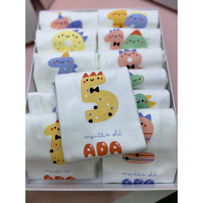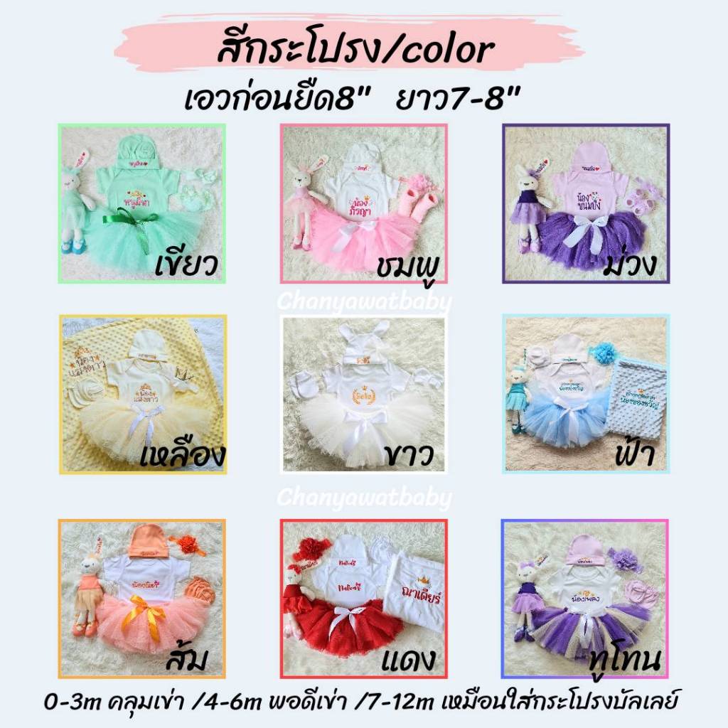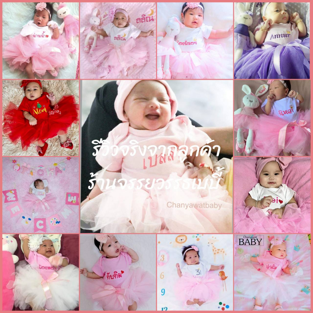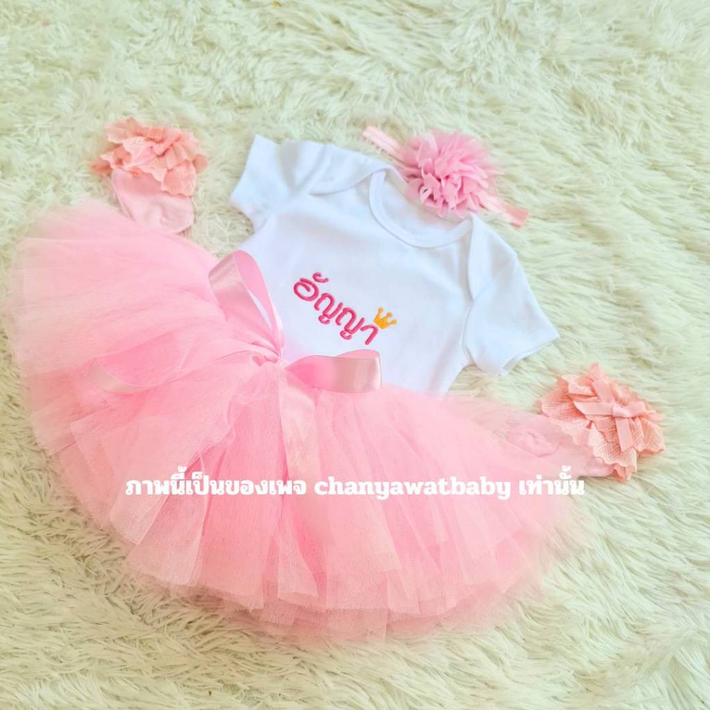 SET490 เซต 4 ชิ้น บอดี้สูทปักชื่อ กระโปรงฟูฟู ที่คาด,ถุงเท้า(คละให้) เด็กแรกเกิด