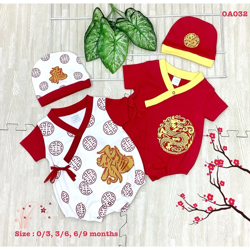 ชุดจั๊มสูท ลายมังกรตรุษจีน สีแดง แบบดั้งเดิม สําหรับเด็กทารก