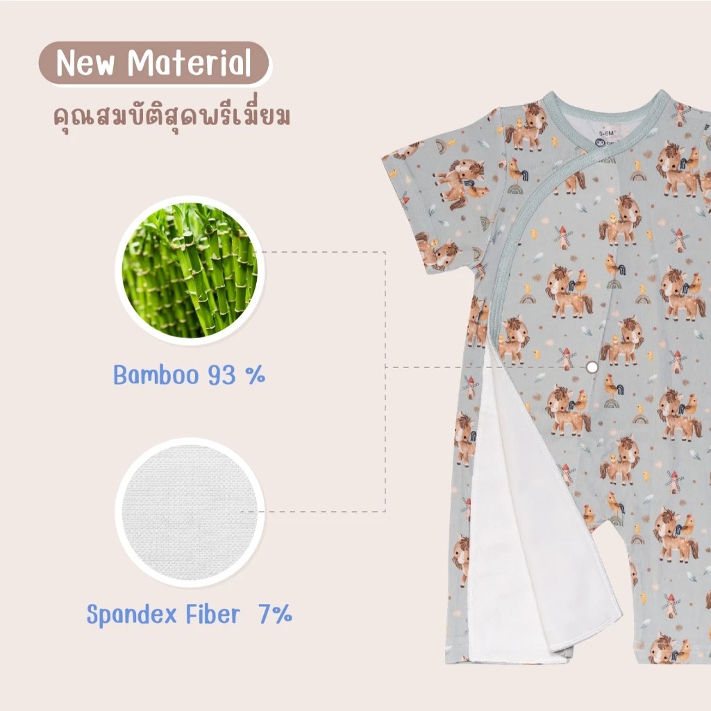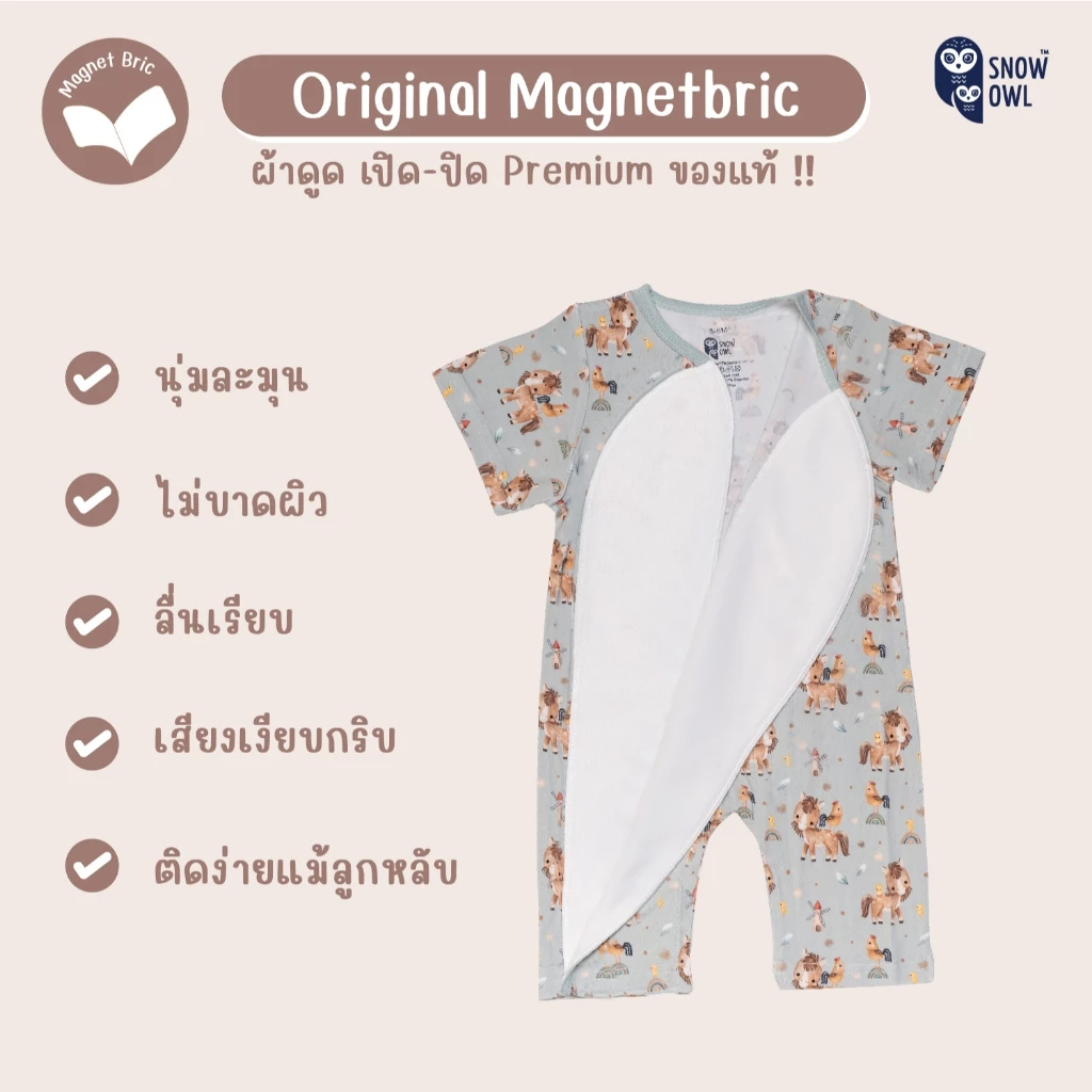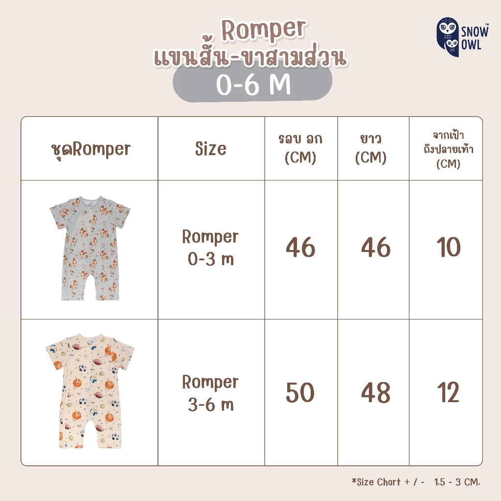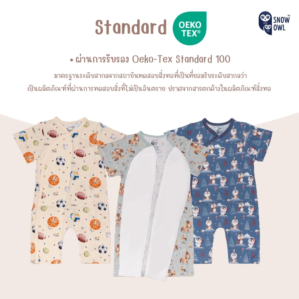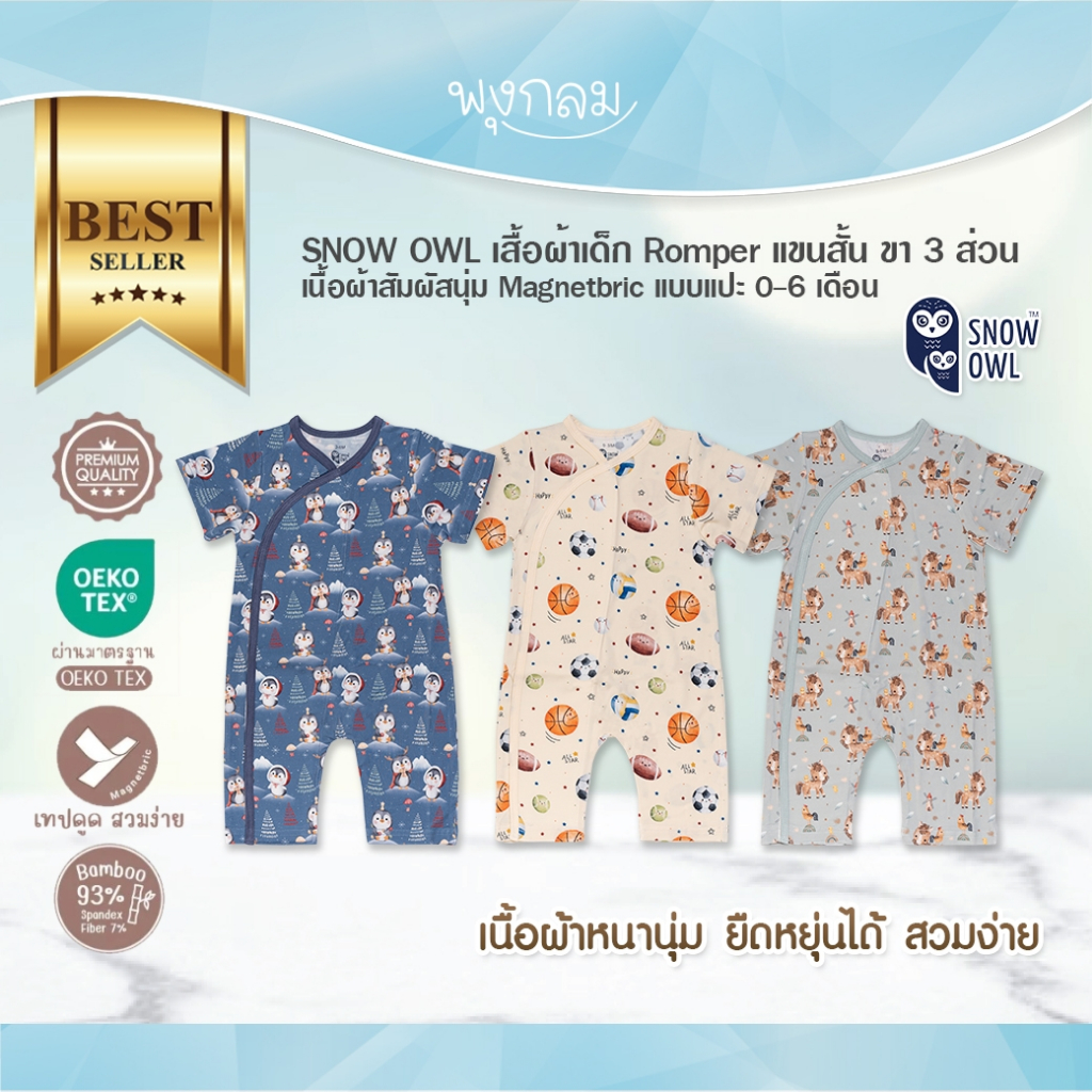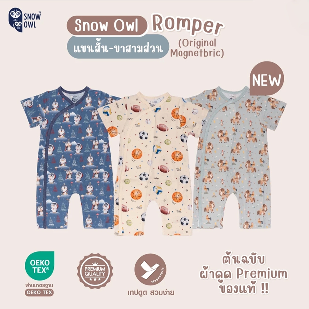 SNOW OWL เสื้อผ้าเด็ก Romper แขนสั้น ขา 3 ส่วน Magnetbric แบบแปะ 0-6 เดือน