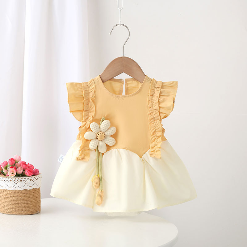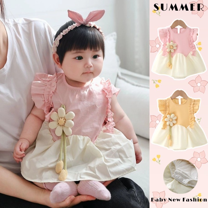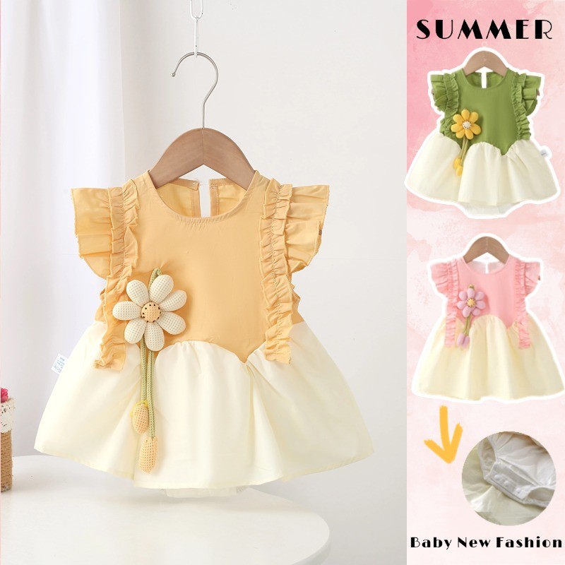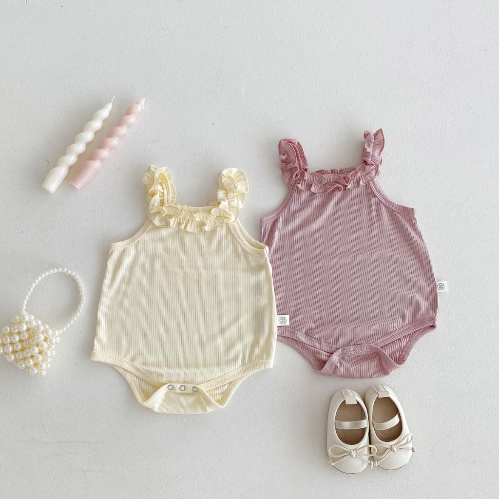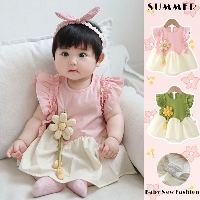 ฤดูร้อนใหม่เสื้อผ้าเด็กเด็กสาวบางสไตล์เจ้าหญิงบินแขนบอดี้สูท 0-24 เดือนทารกผิวและสบาย โดปามีน สวมใส่สไตล์เกาหลี