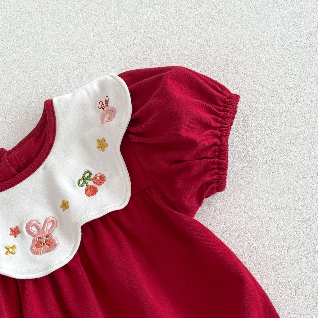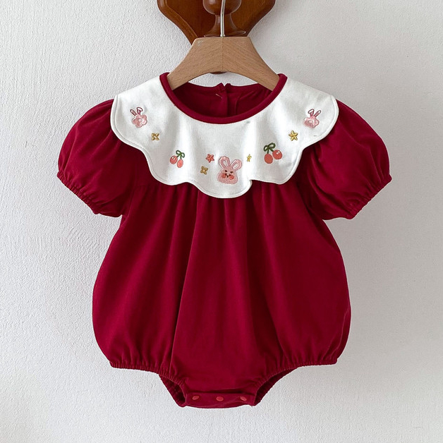 ฤดูร้อนใหม่เสื้อผ้าเด็กชายและหญิงบอดี้สูทแขนสั้นพร้อมจี้0-24เดือนทารกบางจีนปักเทศกาลฤดูใบไม้ผลิ ชุดรอมเปอร์