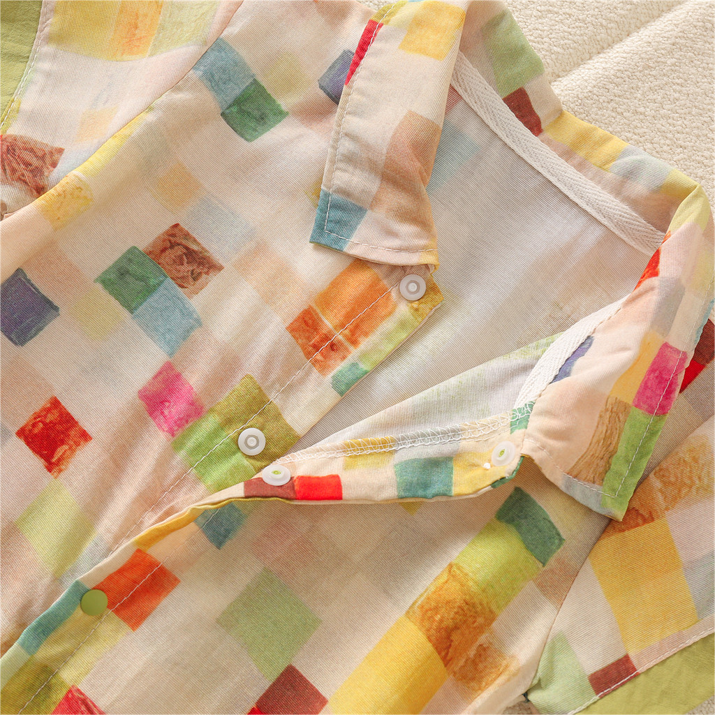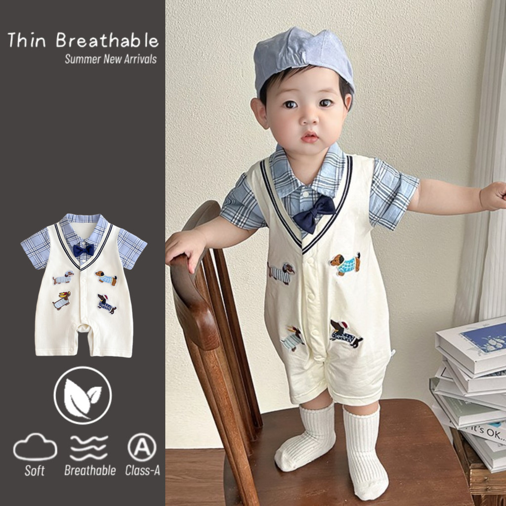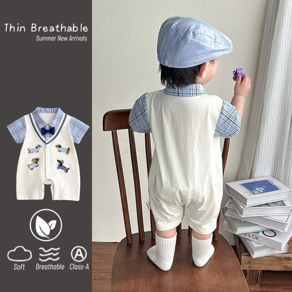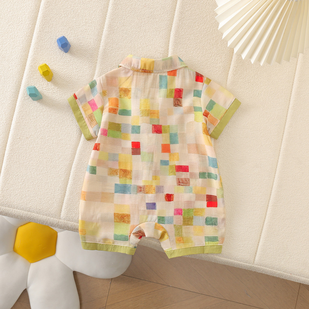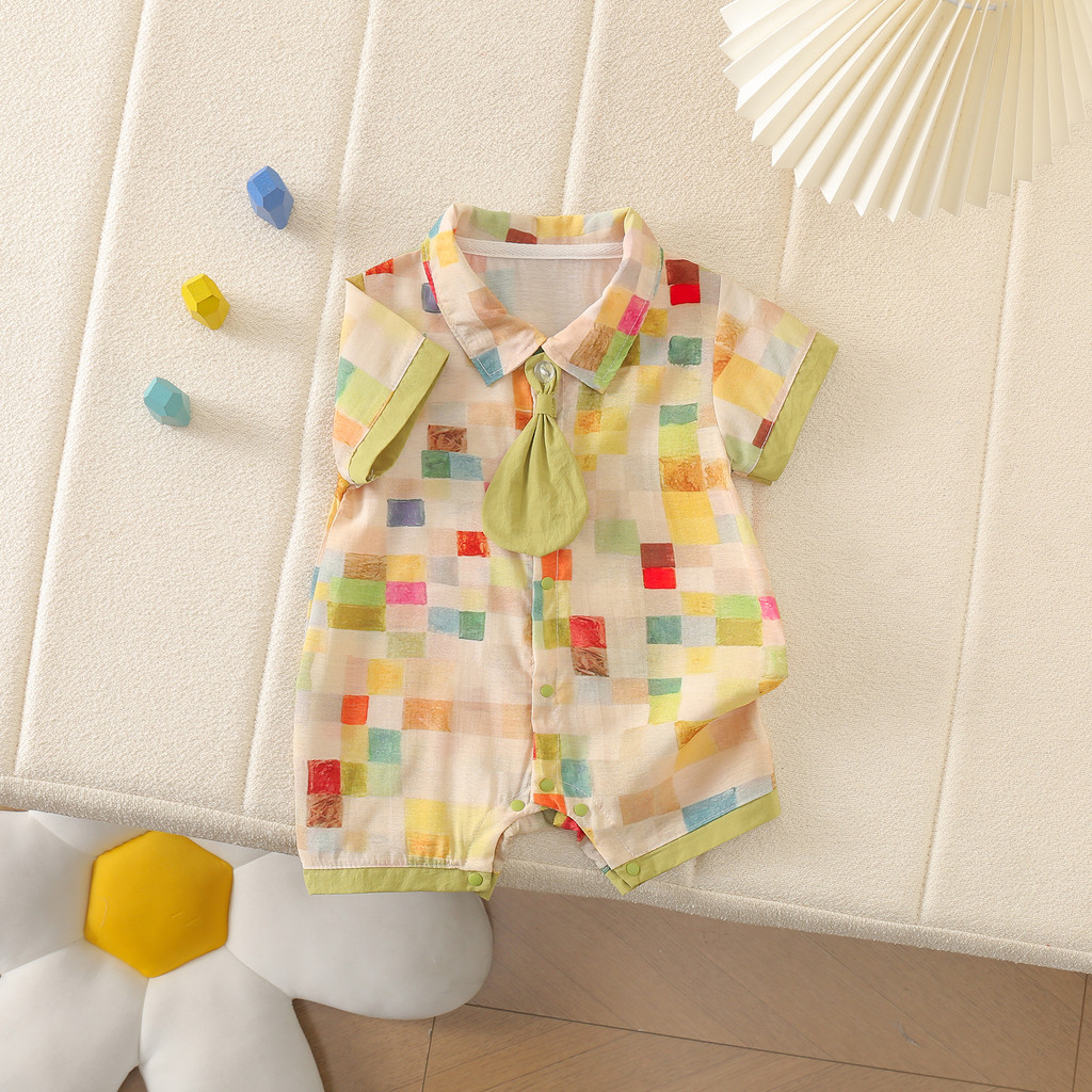 ฤดูร้อนใหม่เสื้อผ้าเด็กชายและหญิงชุดบอดี้สูทแขนสั้น 0-24 เดือนเป็นมิตรกับผิวและระบายอากาศลายสก๊อตสี ชุดรอมเปอร์ สไตล์เกาหลี