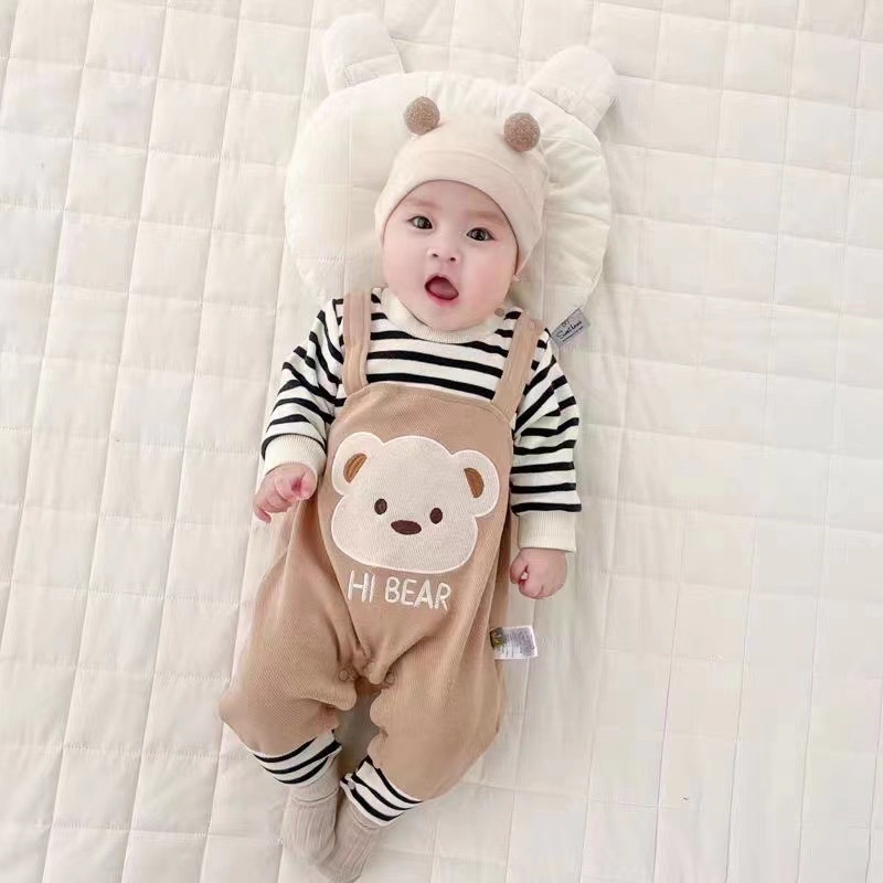 ฤดูใบไม้ร่วงใหม่เสื้อผ้าเด็กคุณภาพสูงเด็กชายและเด็กหญิงบอดี้สูทแขนยาว 0-36 เดือนเด็กทารกสุดน่ารักการ์ตูนหมี ชุดรอมเปอร์ สไตล์เกาหลี