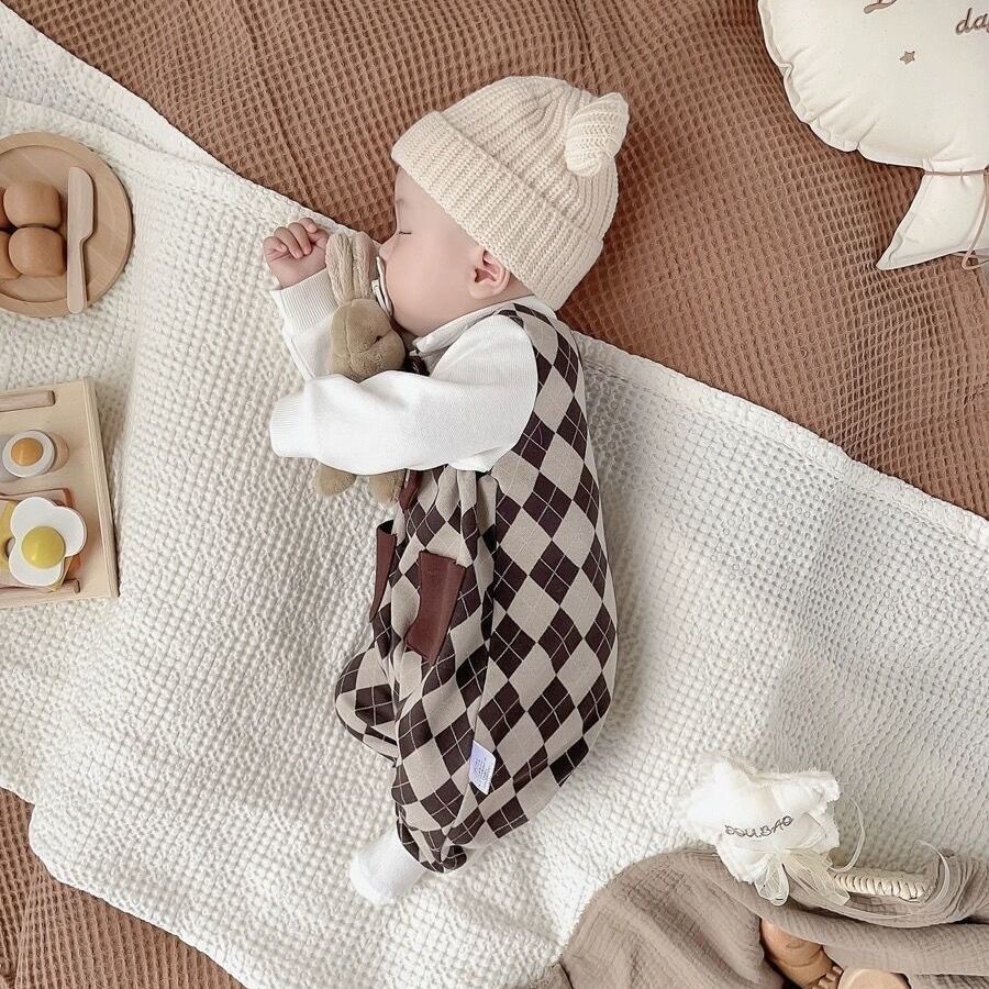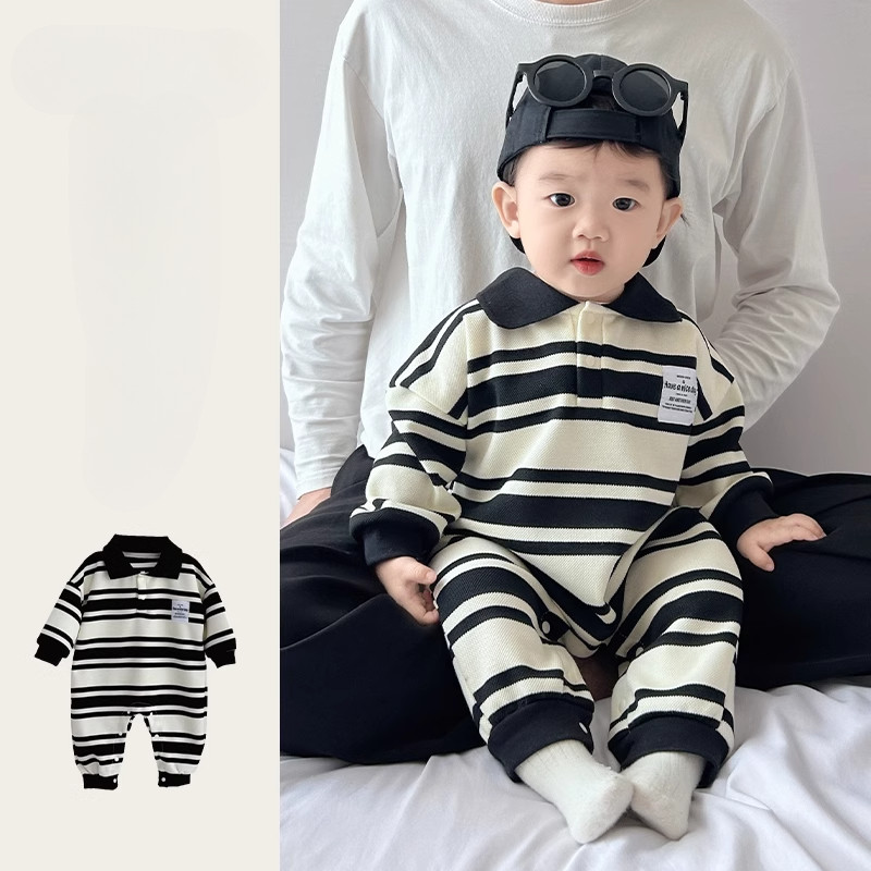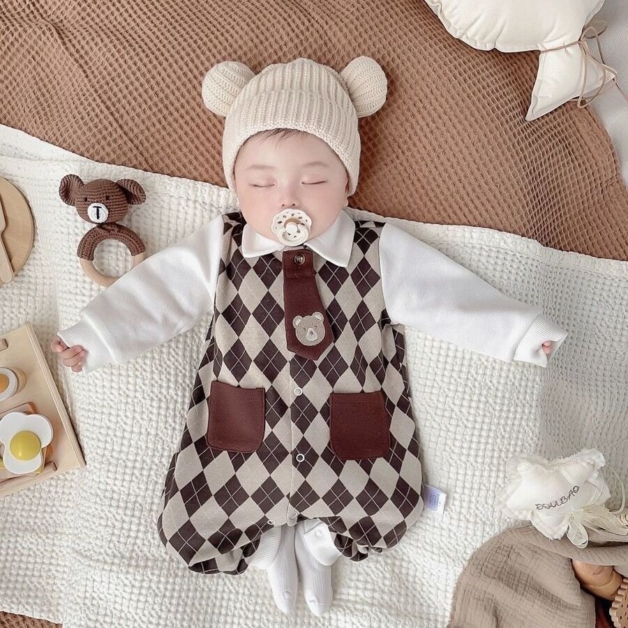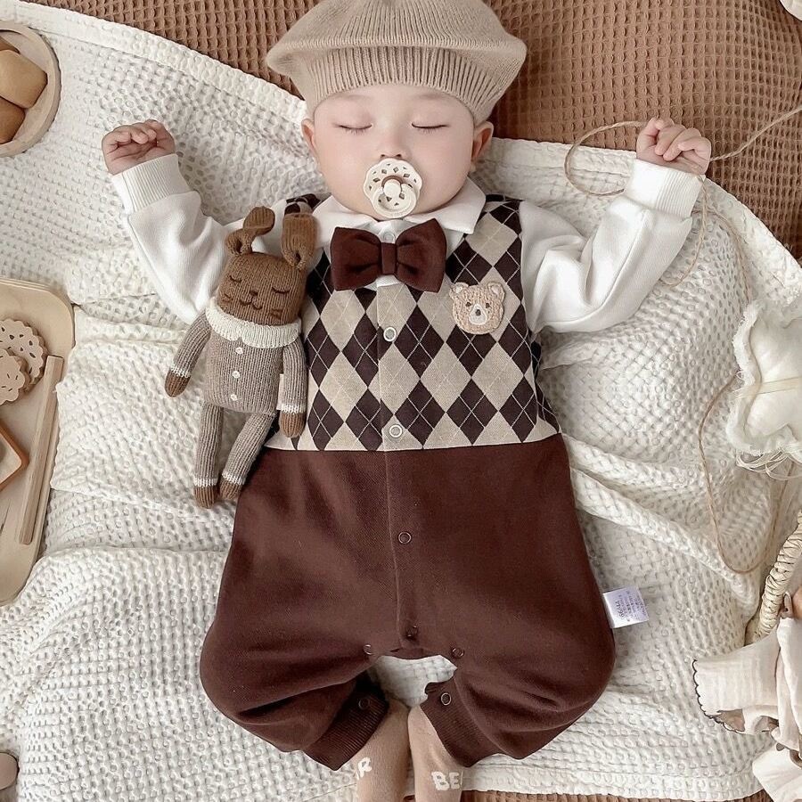 ฤดูใบไม้ผลิและฤดูใบไม้ร่วงใหม่เสื้อผ้าเด็กชายหญิงแขนยาวบอดี้สูทเด็กโปโลผูกสไตล์สุภาพบุรุษสุดหล่อ รูปสี่เหลี่ยมขนมเปียกปูน ออกแบบ ชุด