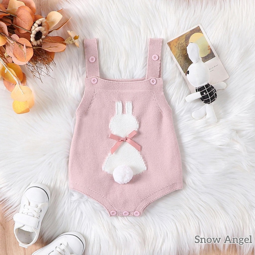 เด็กทารกอีสเตอร์ Overalls แขนกุดกระต่ายพิมพ์โบว์ Rompers ชุดฤดูใบไม้ผลิทารกแรกเกิด