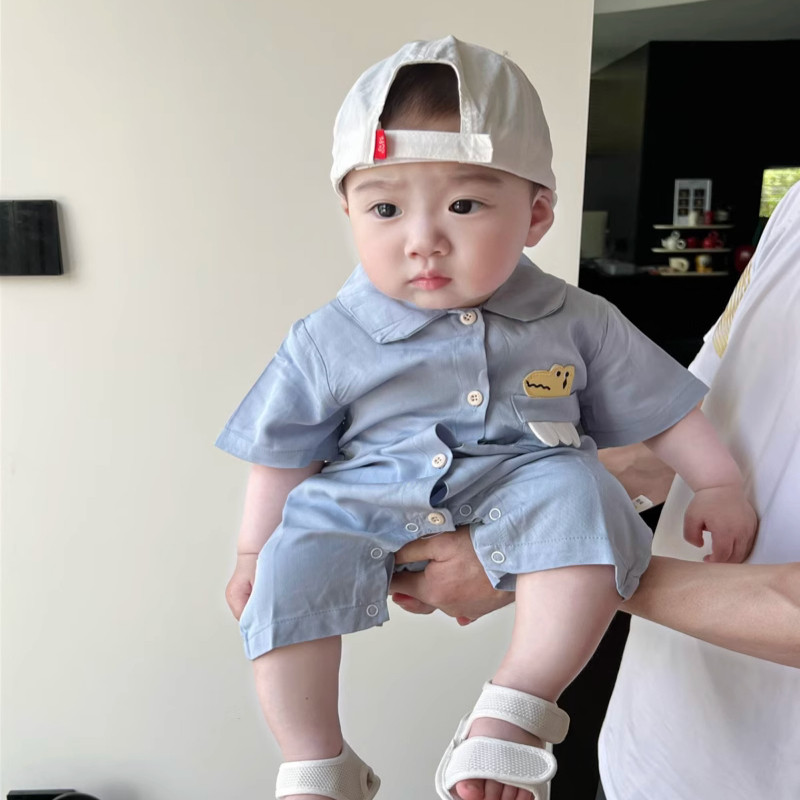 เด็กฤดูร้อนเสื้อผ้าใหม่ชายและหญิงระบายอากาศสบายบอดี้สูทแขนสั้น0-24เดือนเด็กสุดน่ารักการ์ตูนจระเข้สไตล์เกาหลี ชุดรอมเปอร์