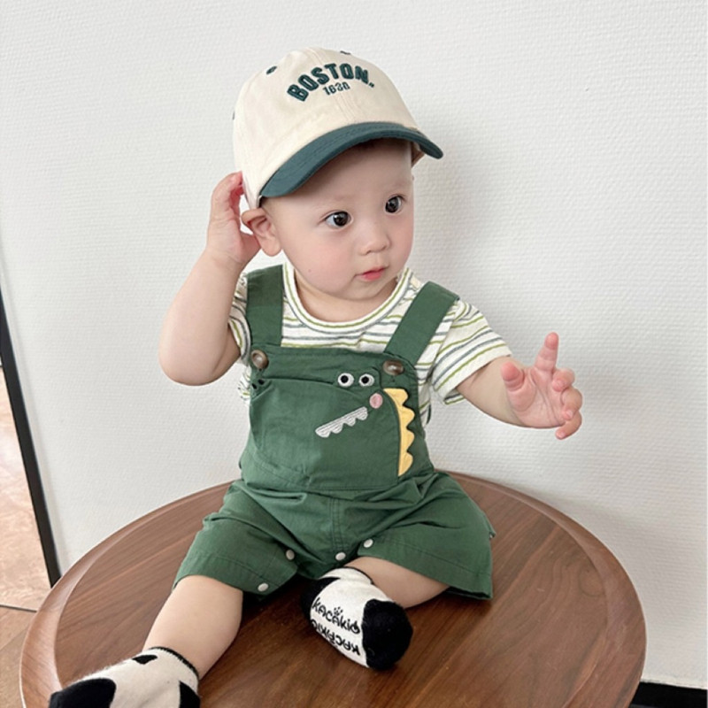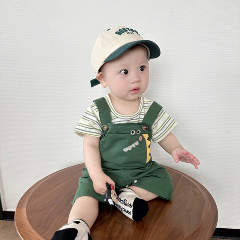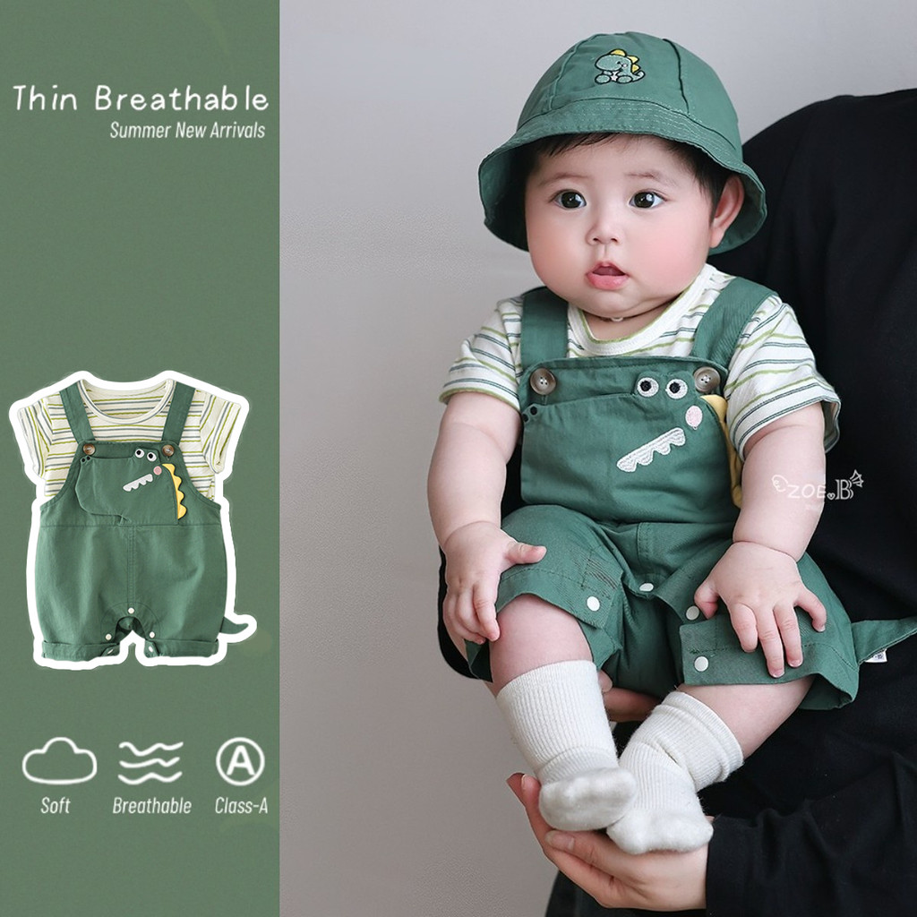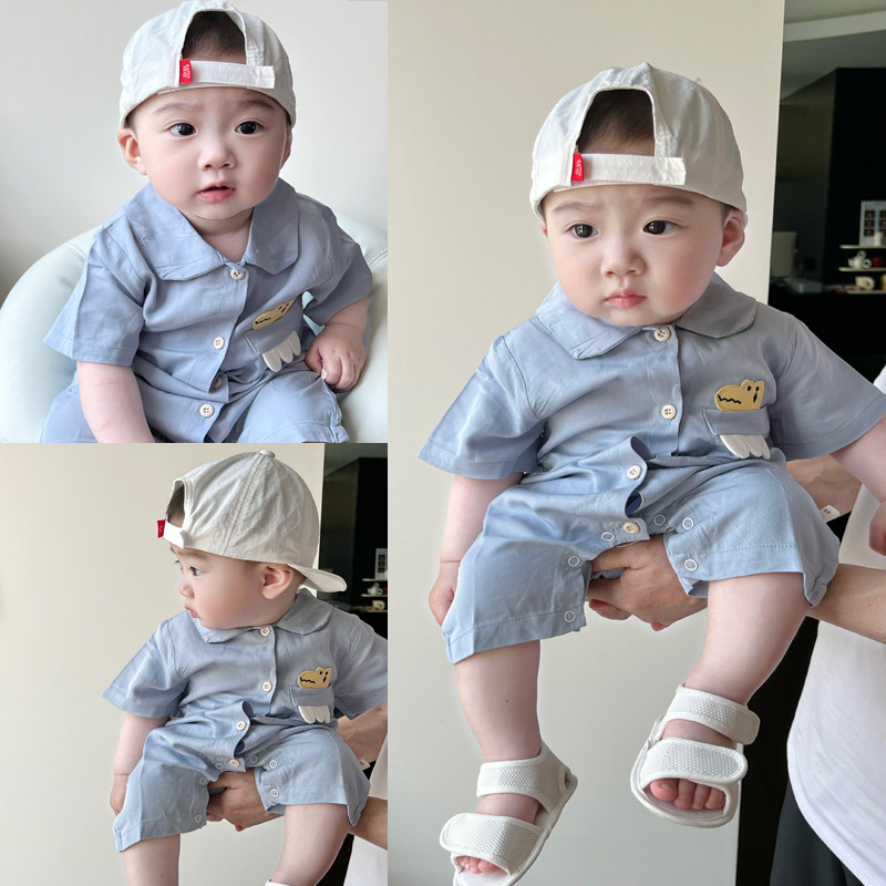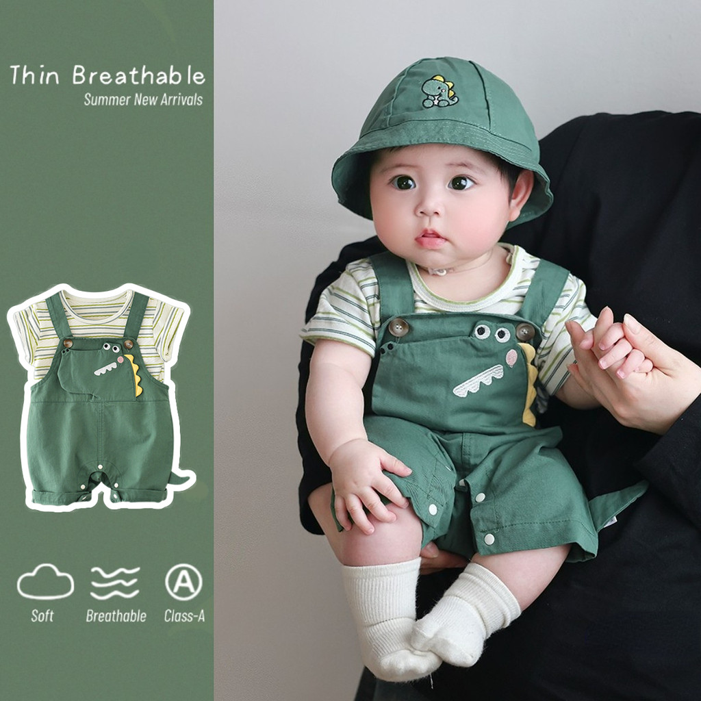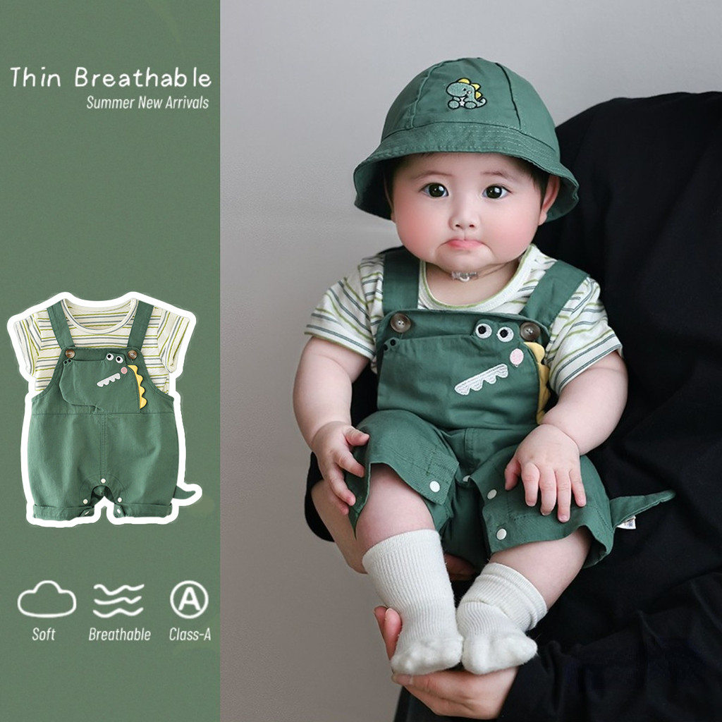 เด็กฤดูร้อนเสื้อผ้าใหม่เด็กชายและเด็กหญิงบอดี้สูทแขนสั้น 0-28 เดือนประกบการ์ตูนไดโนเสาร์ซูเปอร์หล่อ ชุดรอมเปอร์ สไตล์เกาหลี