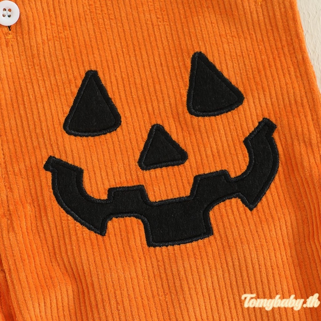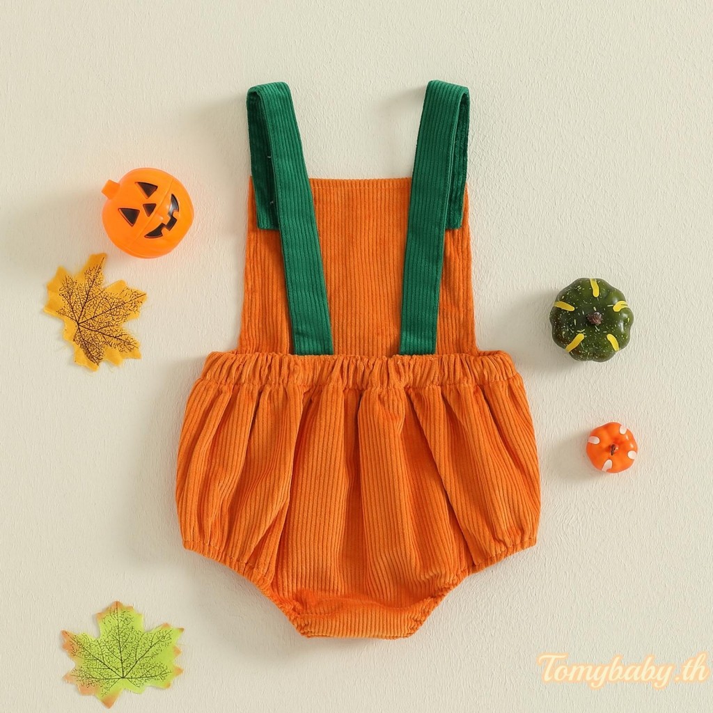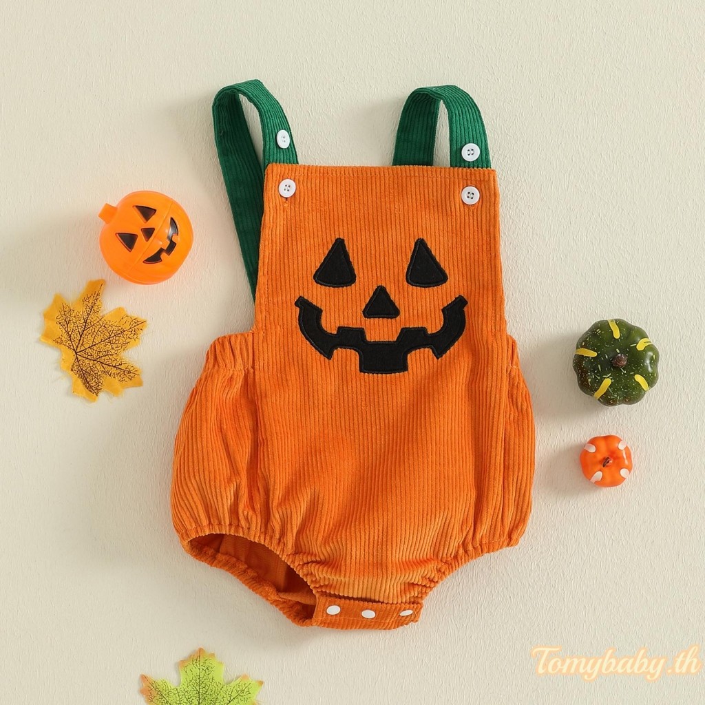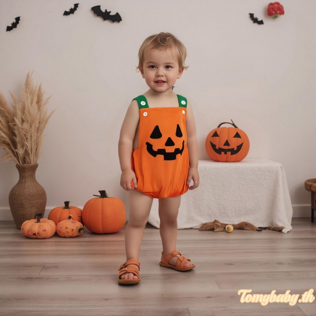 เด็กฮาโลวีน romper ทรงฟักทอง พร้อมหน้าจอแสดงผลแบบแขนกุด สีตัดกัน สำหรับงานปาร์ตี้