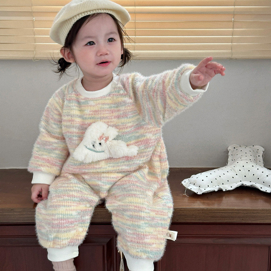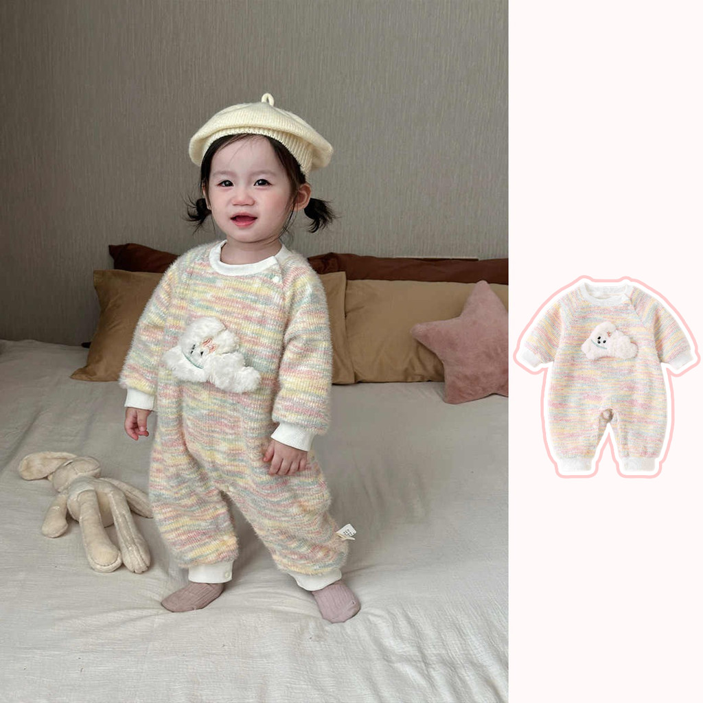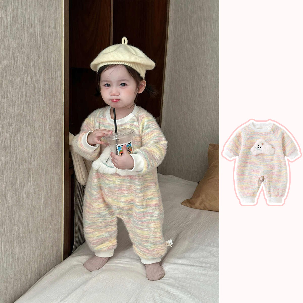 ฤดูใบไม้ผลิและฤดูใบไม้ร่วงเสื้อผ้าเด็กหญิงบอดี้สูทแขนยาว 0-28 เดือนทารกแรกเกิดสายรุ้งขนสัตว์สุดน่ารักสไตล์เจ้าหญิง ชุดรอมเปอร์ สไตล์เกาหล