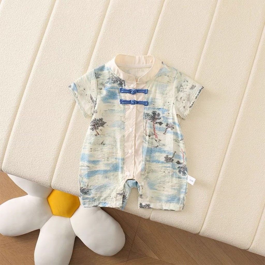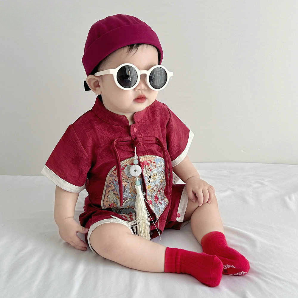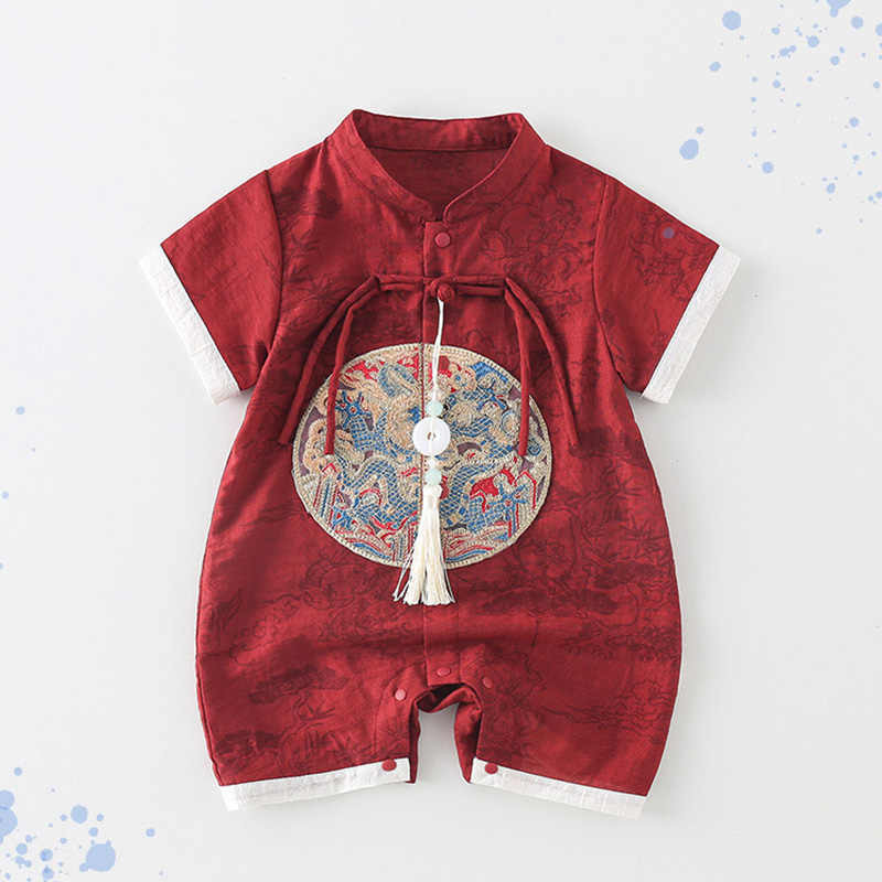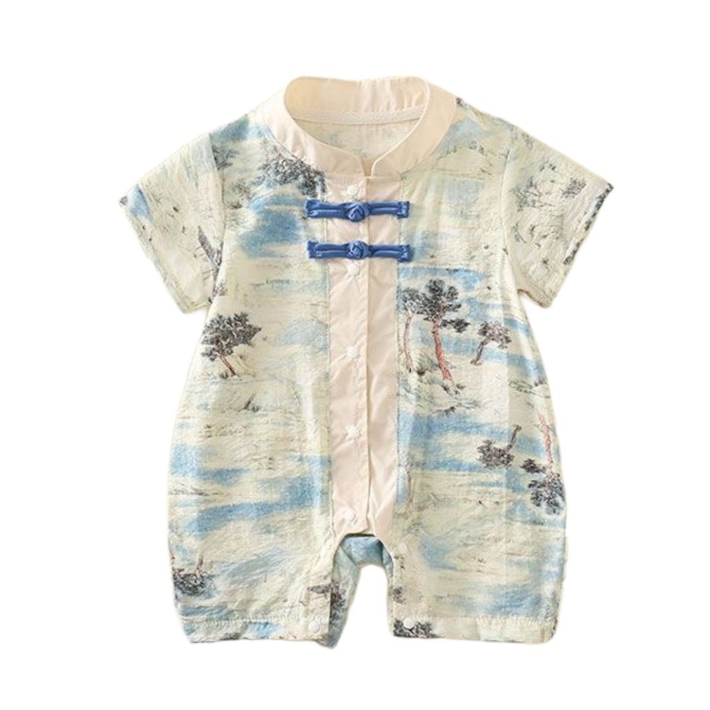 ฤดูร้อนใหม่เสื้อผ้าเด็กชายหญิงบอดี้สูทแขนสั้น 0-24 เดือนเด็กบางแฟชั่นสไตล์จีน Tang Hanfu Disc-buckled Romper