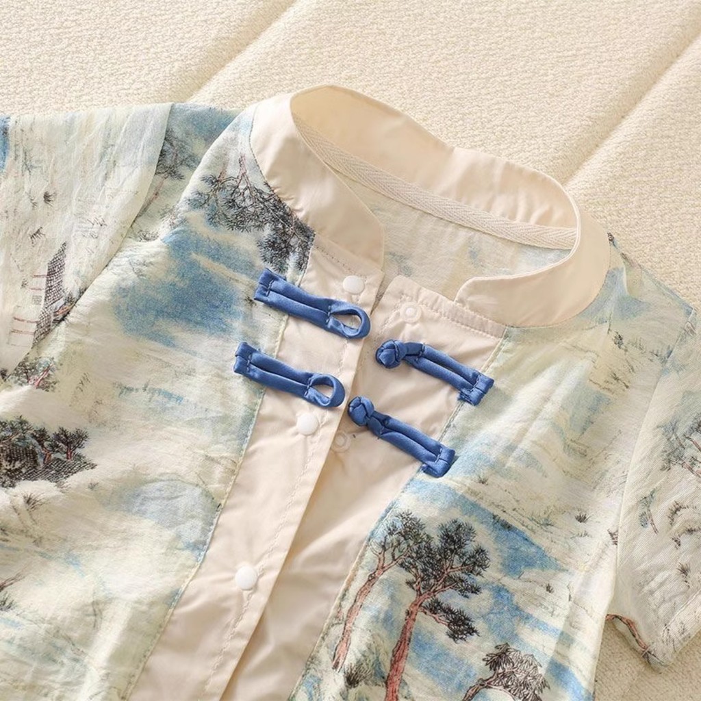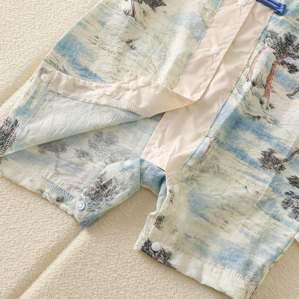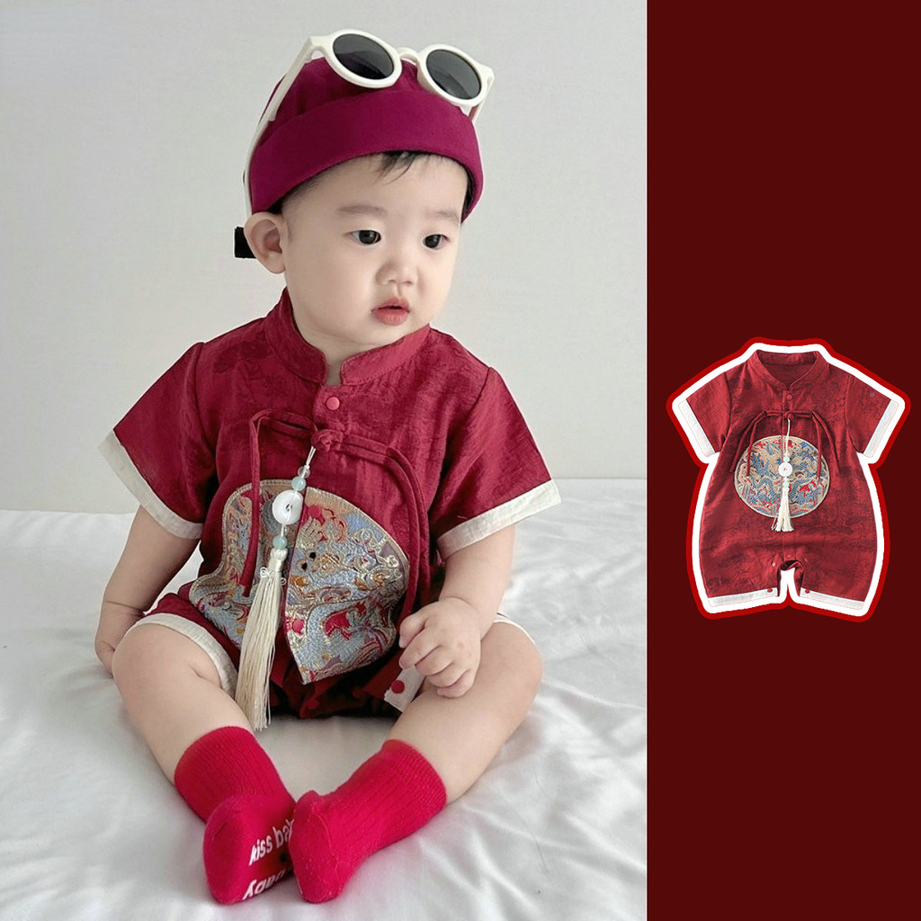 ฤดูร้อนใหม่เสื้อผ้าเด็กชายหญิงบอดี้สูทแขนสั้น 0-24 เดือนเด็กบางแฟชั่นสไตล์จีน Tang Hanfu Disc-buckled Romper