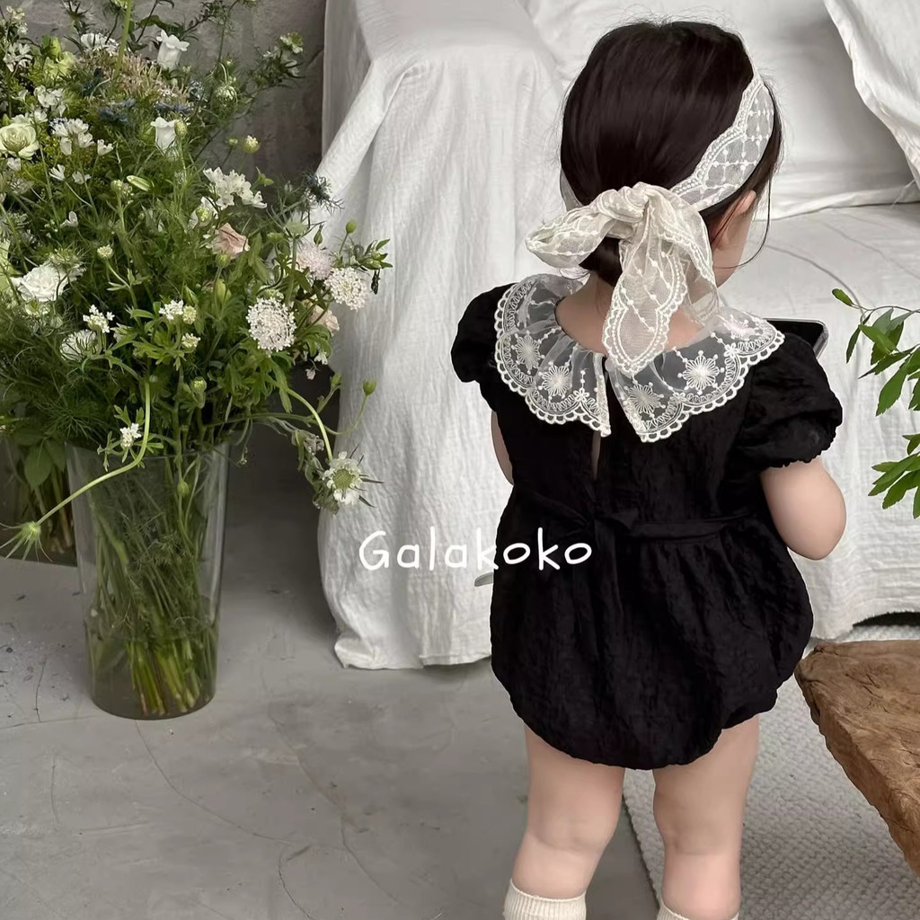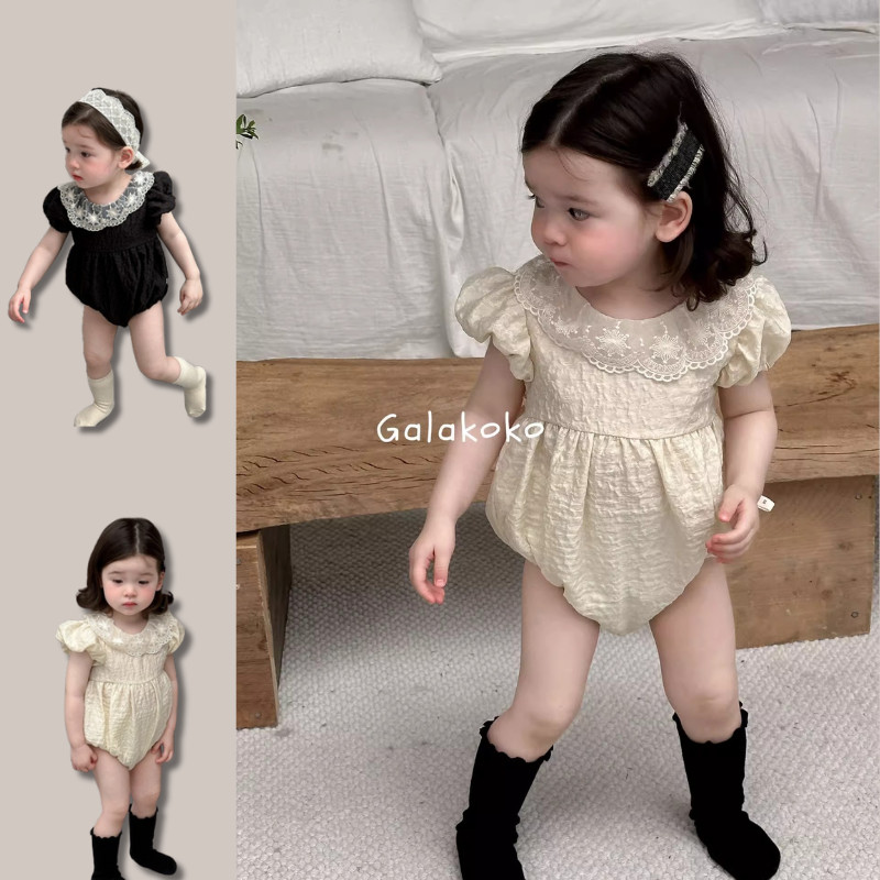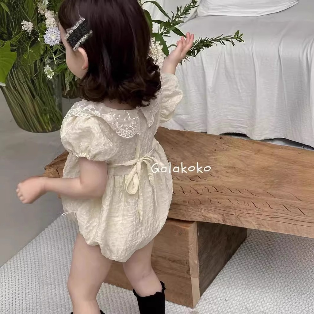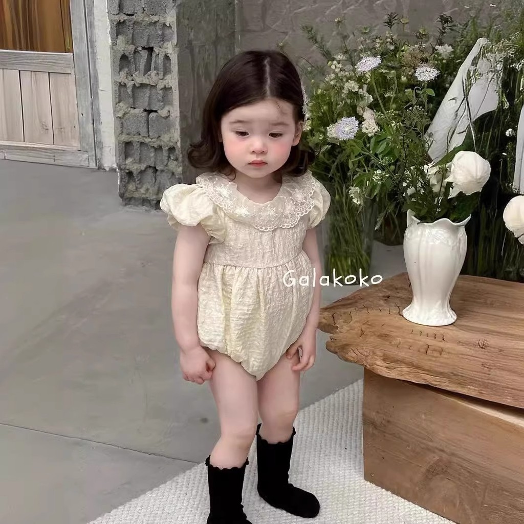 สไตล์เกาหลีทารกแรกเกิดเสื้อผ้าเด็กทารกบอดี้สูทลูกไม้คอปกแขนสั้นเด็กวัยหัดเดินสาว ชุดรอมเปอร์ 0-24เดือน