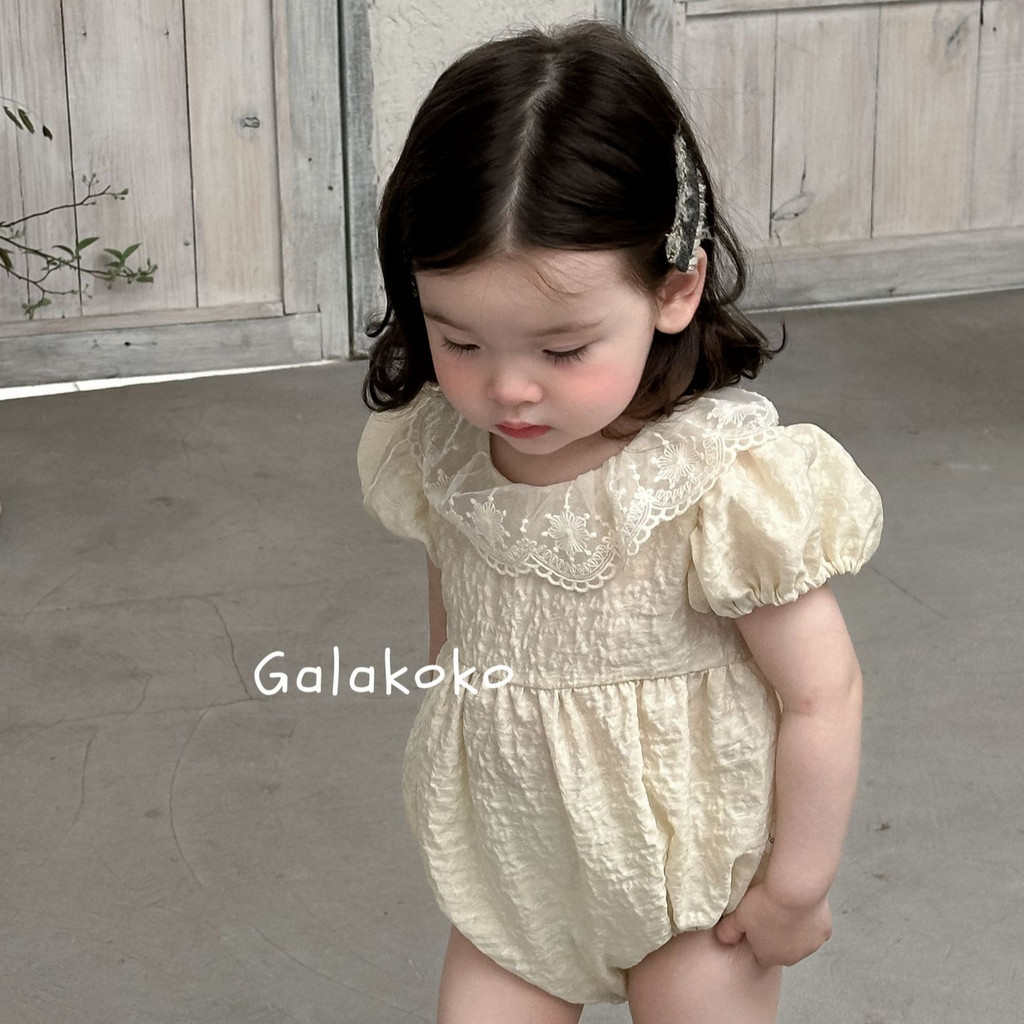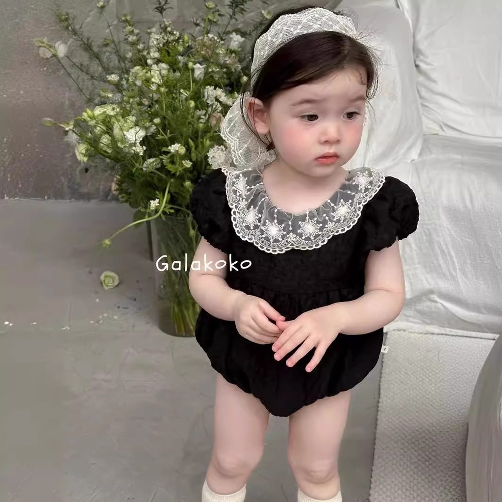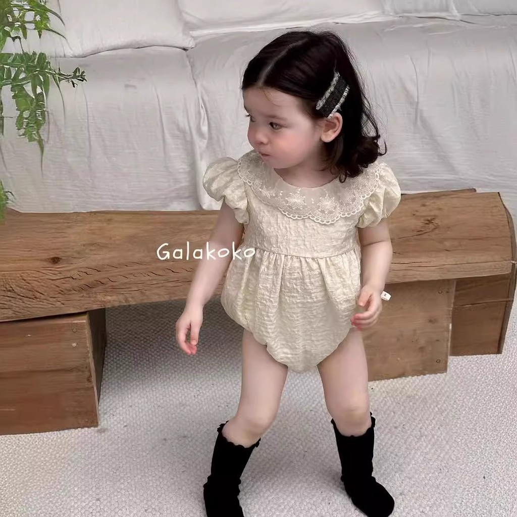 สไตล์เกาหลีทารกแรกเกิดเสื้อผ้าเด็กทารกบอดี้สูทลูกไม้คอปกแขนสั้นเด็กวัยหัดเดินสาว ชุดรอมเปอร์ 0-24เดือน