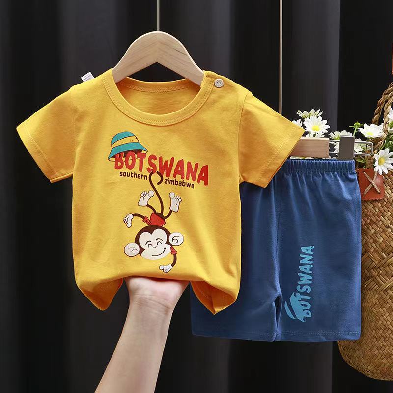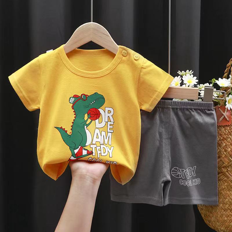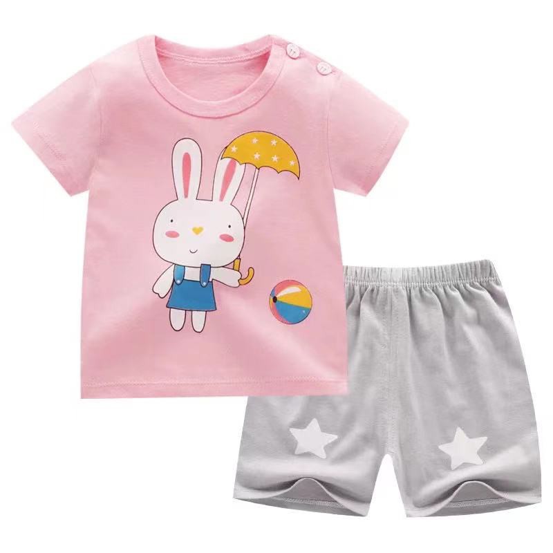 【ซื้อ 1 แถม 1】เสื้อและกางเกงขาสั้นสำหรับเด็กอายุ 0-7 ปี 1 ชุด การ์ตูน ระบายอากาศได้ดี สไตล์เกาหลี สำหรับเด็กวัยเตาะแตะ