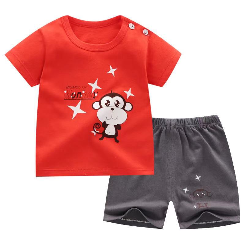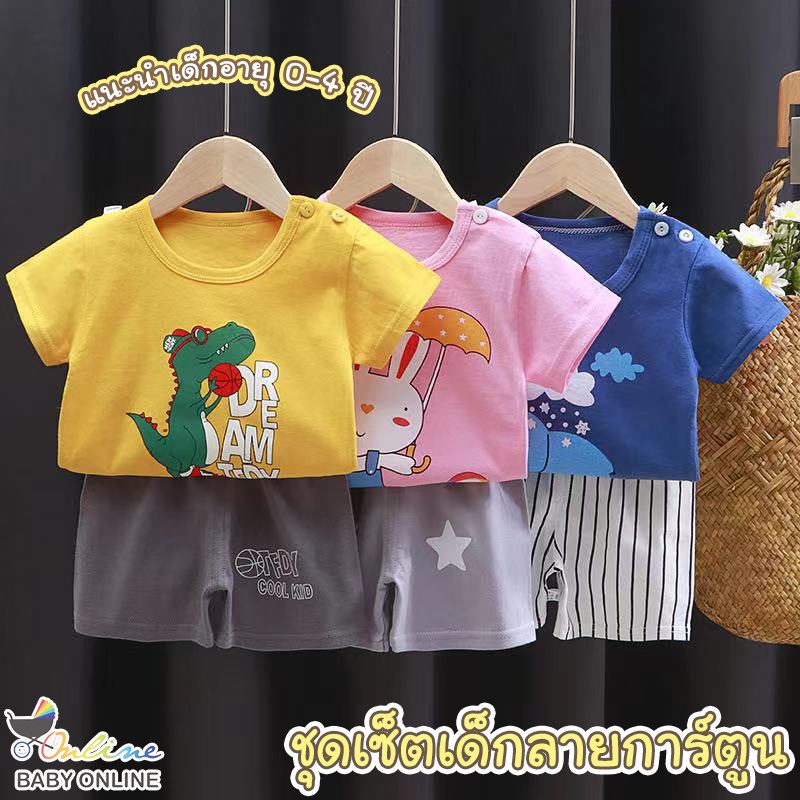 Babyonline(Y089)2H1-2 (ส่งด่วน1วัน)ชุดเซ็ตเสื้อยืดแขนสั้นกางเกงขาสั้นลายการ์ตูน ผ้าฝ้าย นิ่ม สำหรับเด็ก6เดือน-4ปี