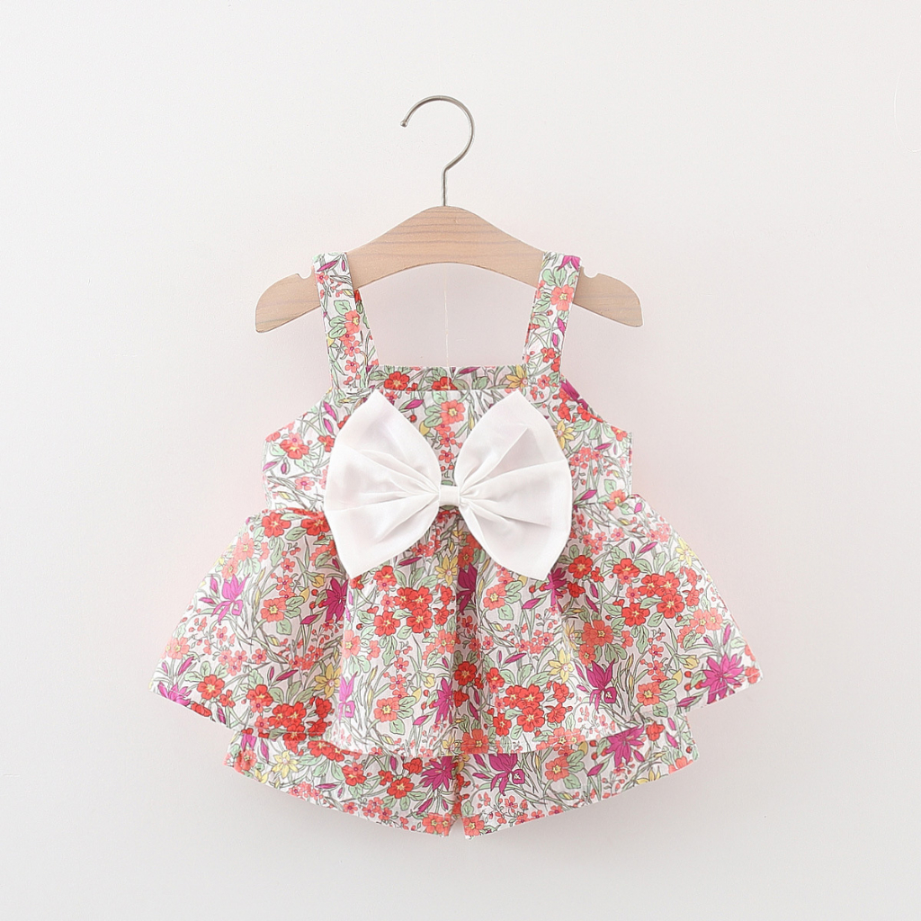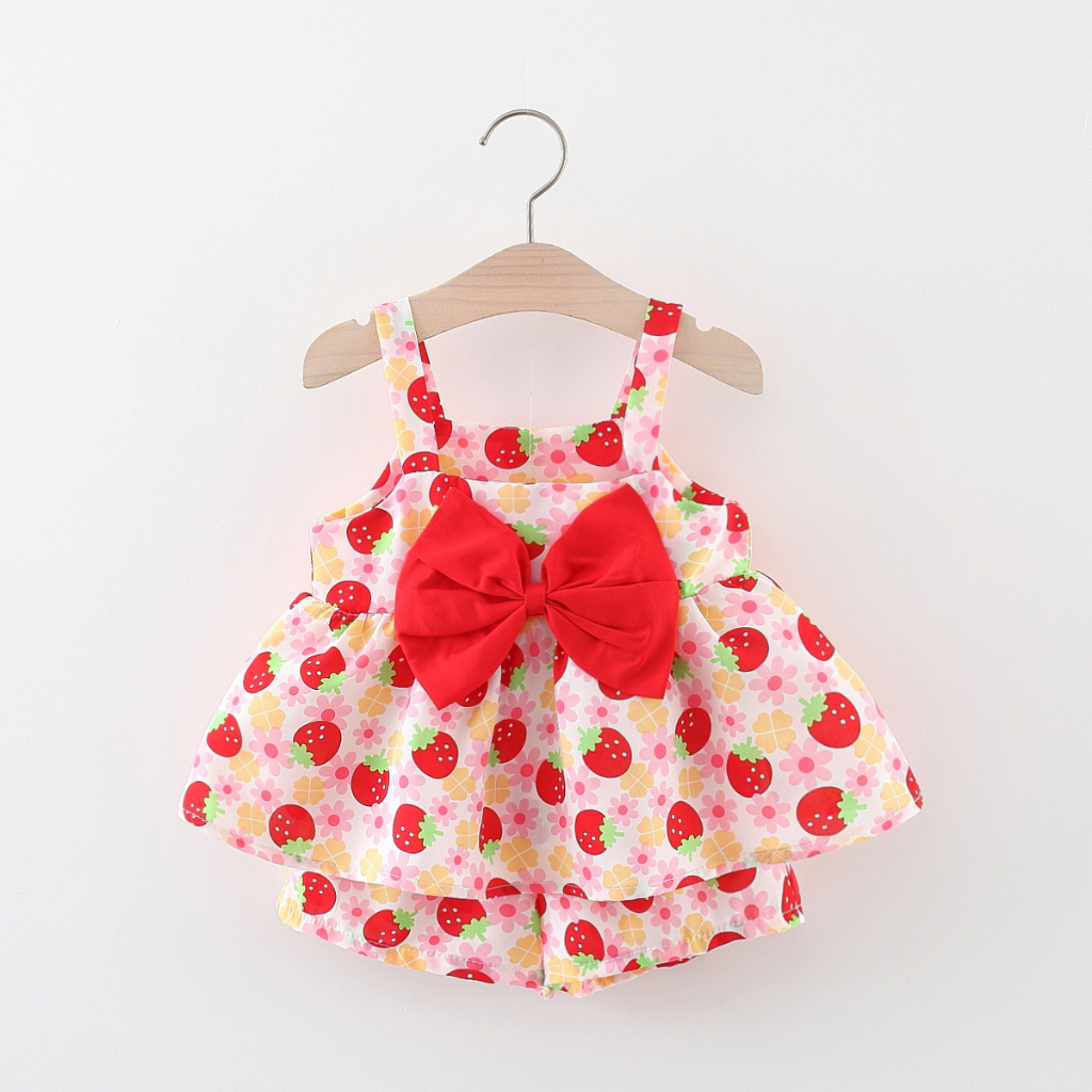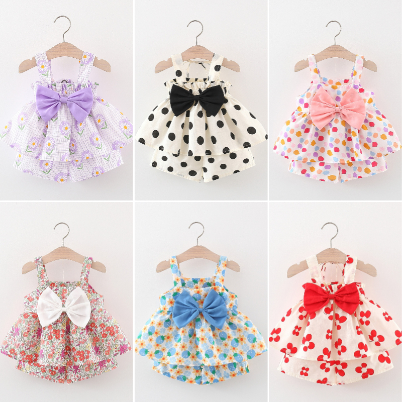 2 ชิ้น / เซต เสื้อผ้าเด็กผู้หญิง ชุดเด็กวัยหัดเดิน เด็กวัยหัดเดิน ชุดเดรส พิมพ์ลายน่ารัก + กางเกงชั้นใน ชุดแรกเกิด แขวน ดอกไม้ ชุดเดรส เสื้อผ้าเด็ก