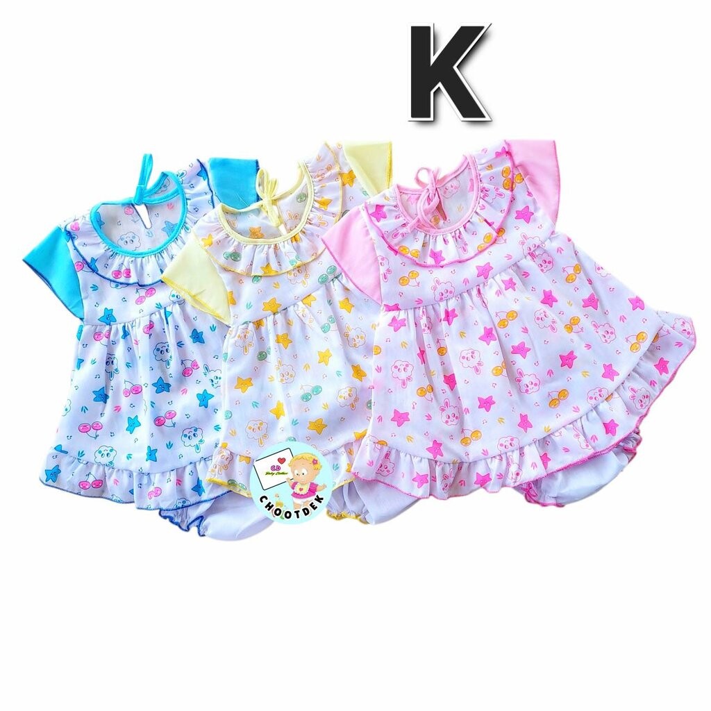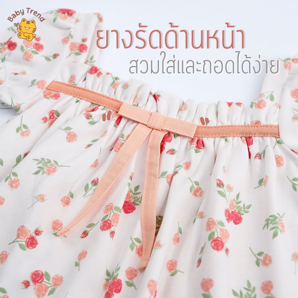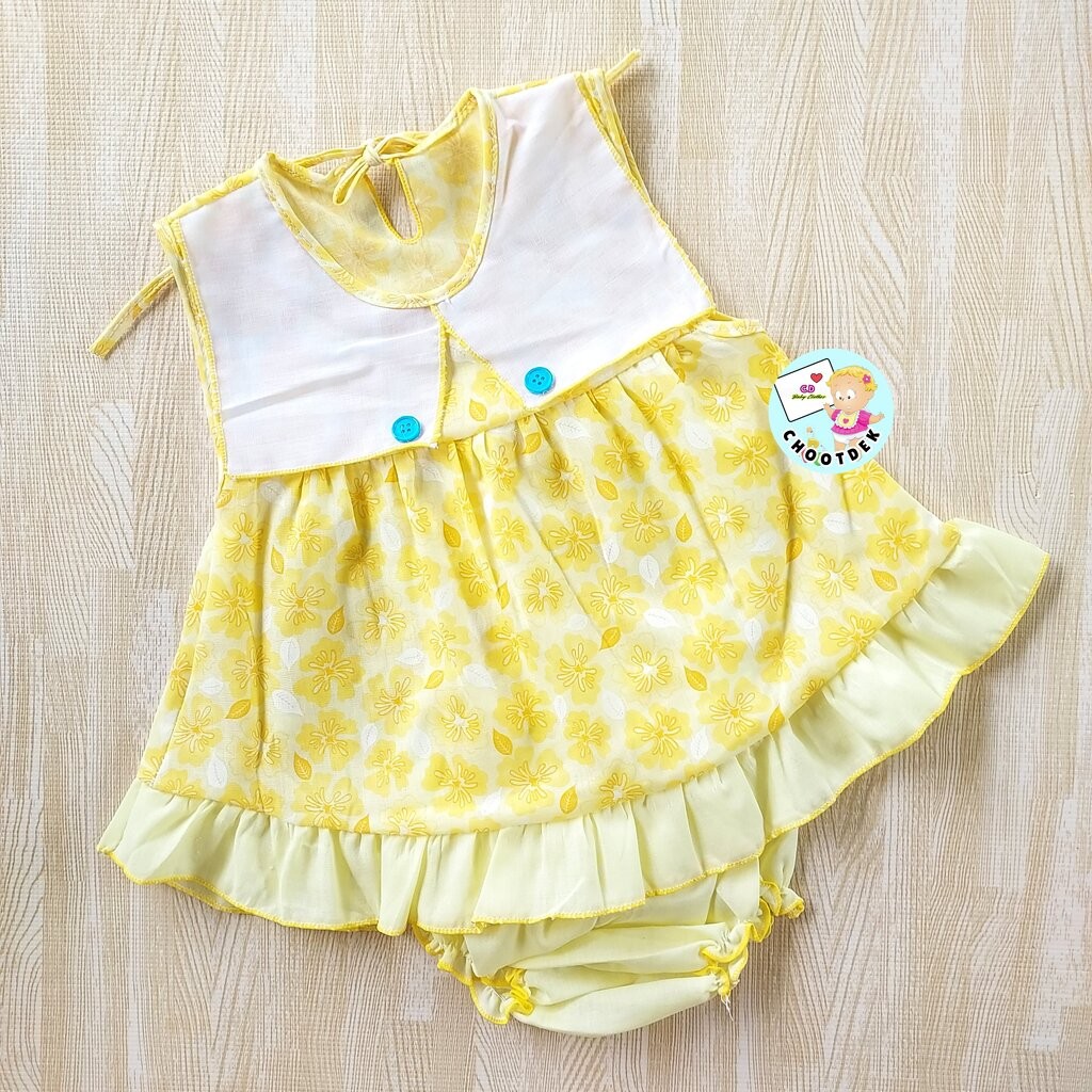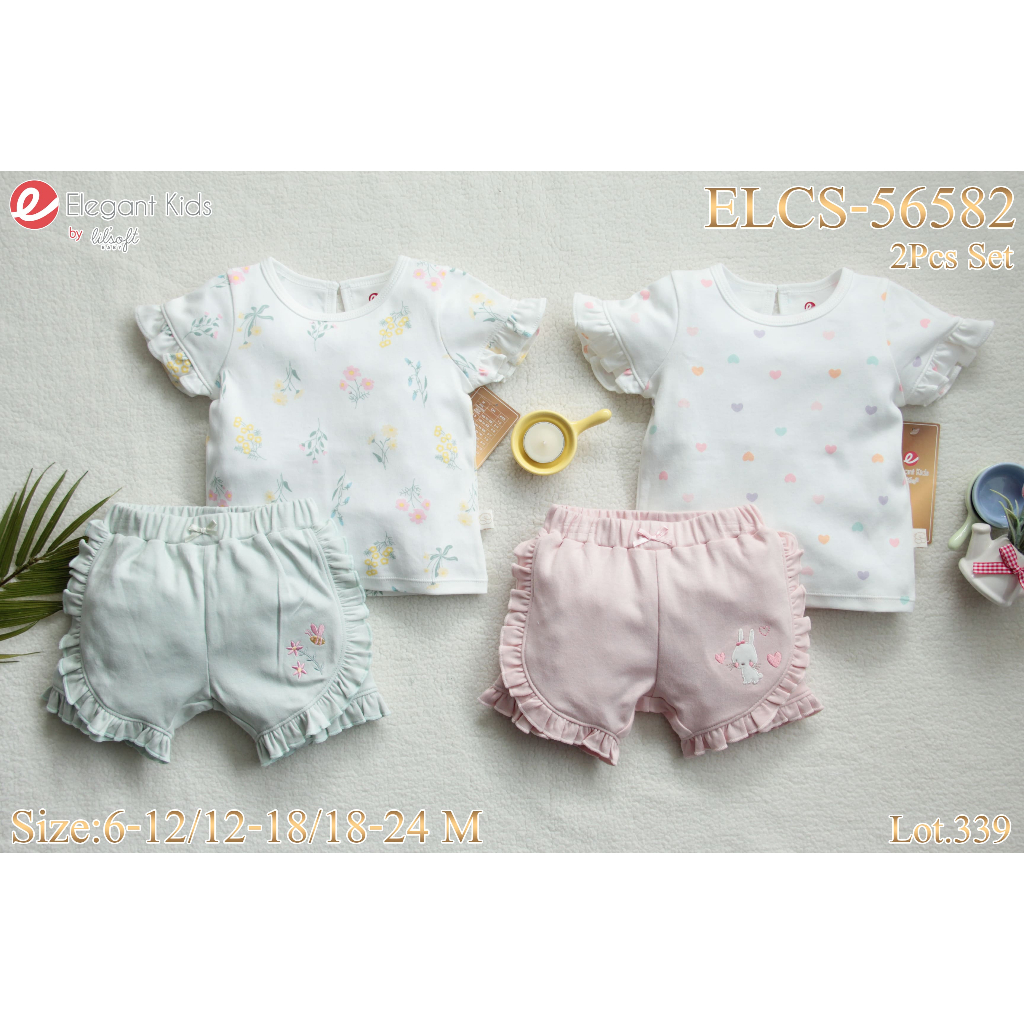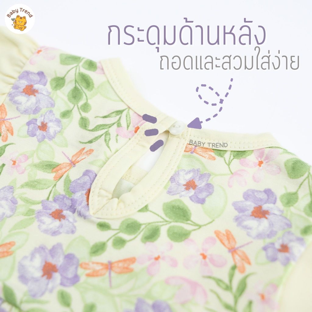 Elegant Kids ชุดลูกสาว 6-24เดือน ชุดเสื้อแขนตุ๊กตา กางเกงขาสั้น ลายเห็ดเต่าทอง