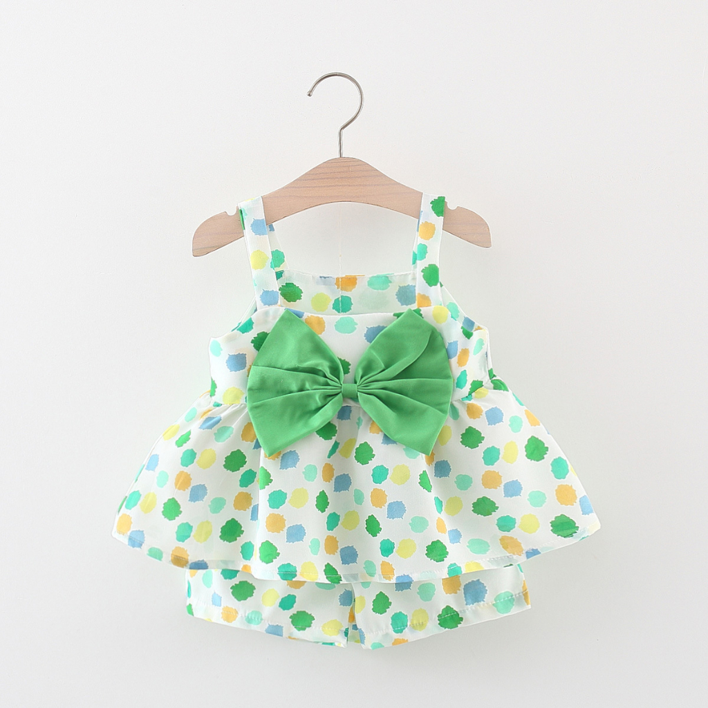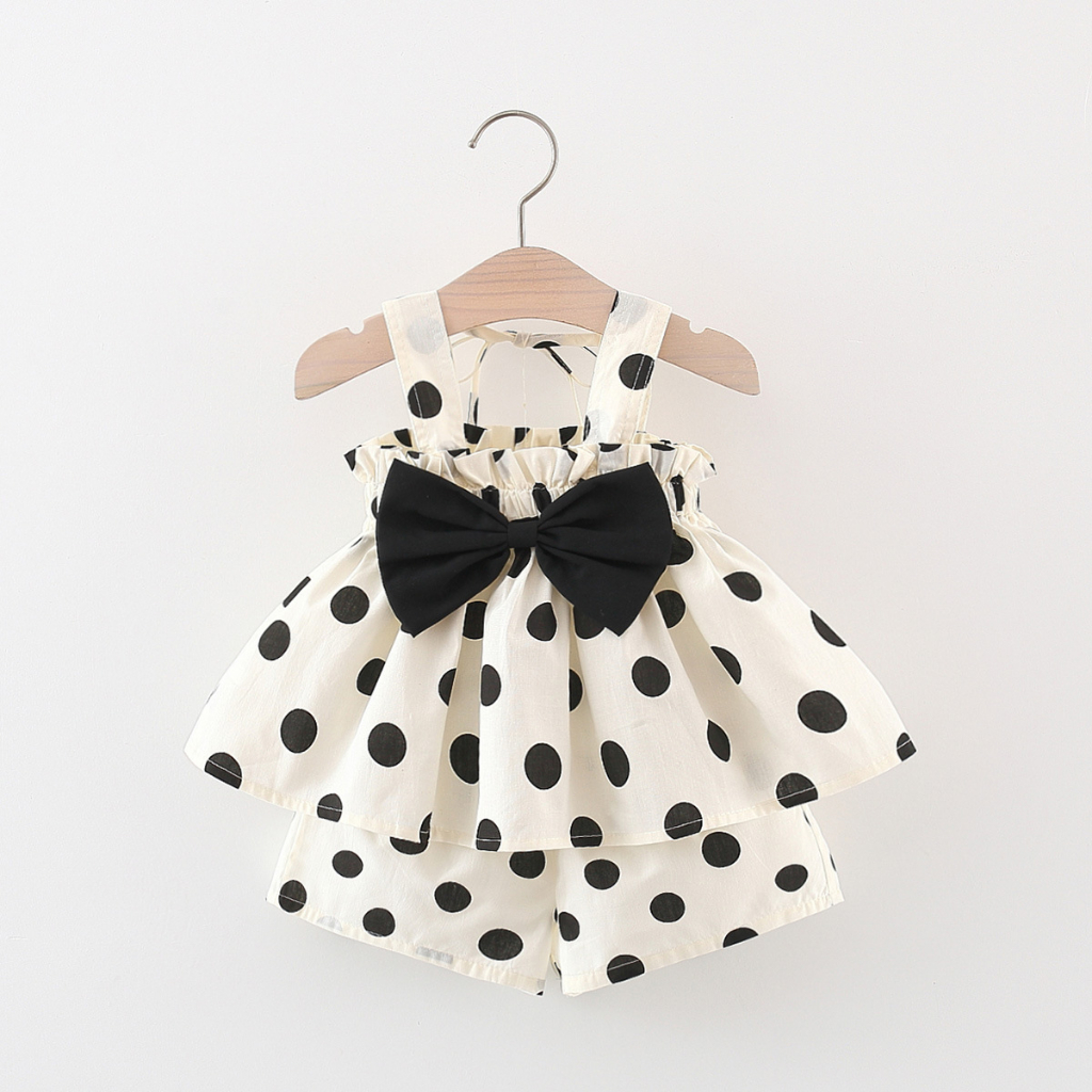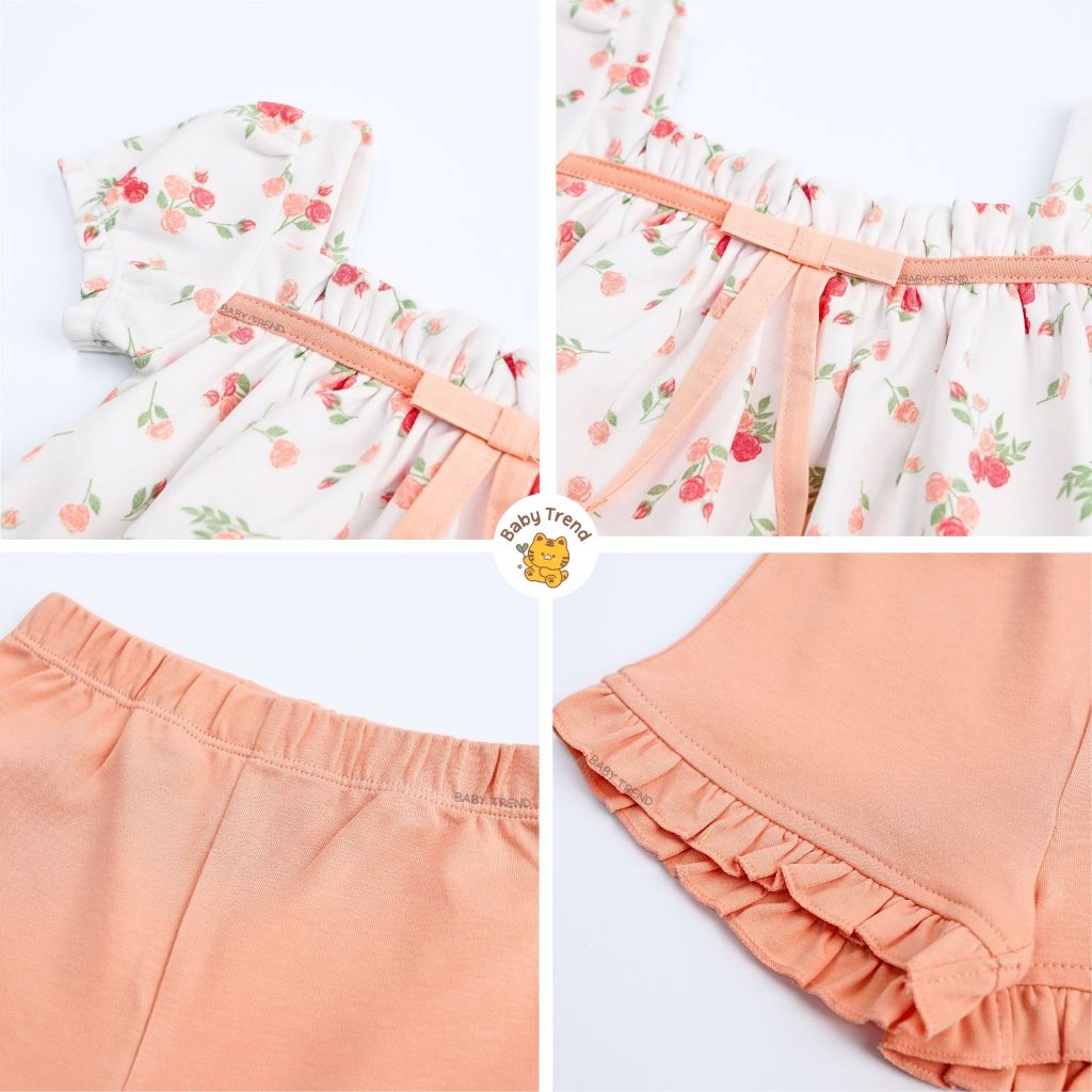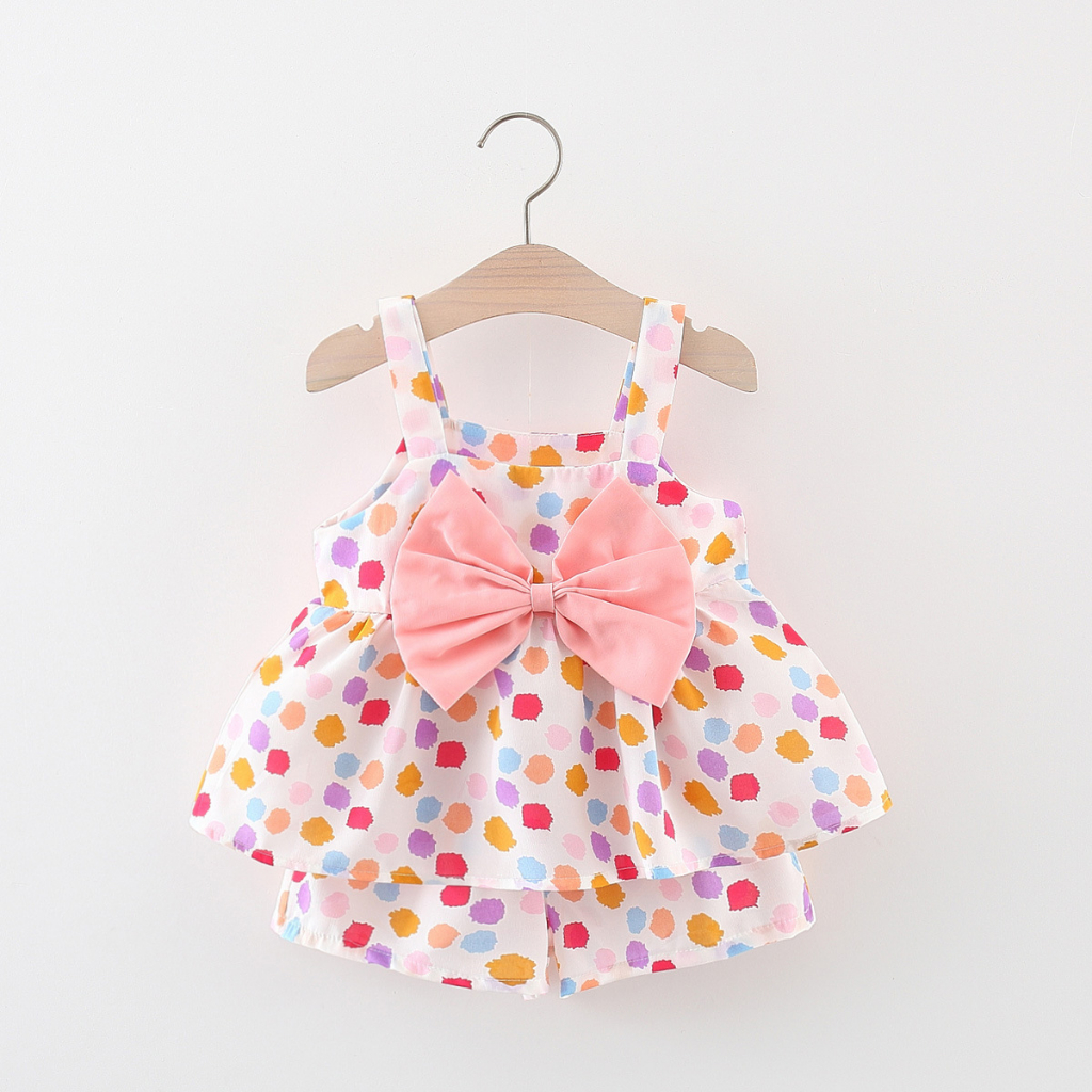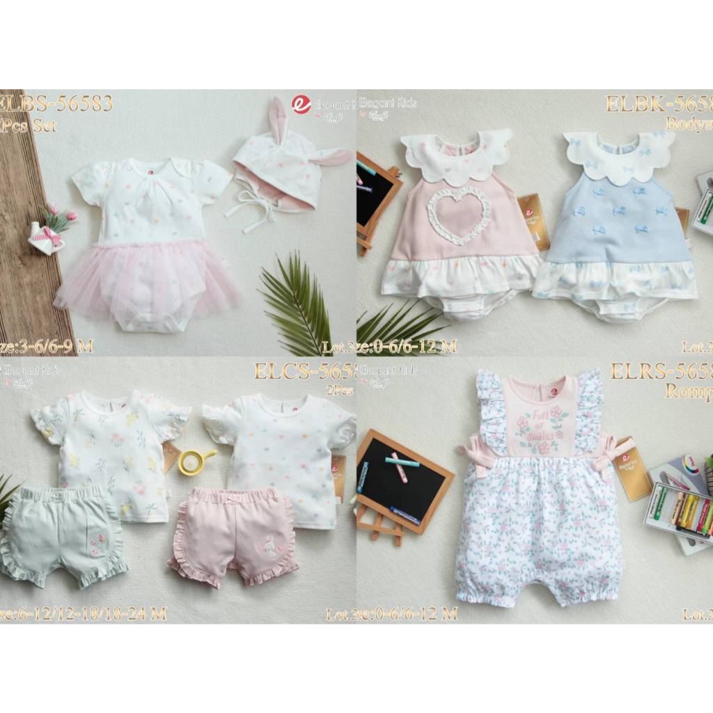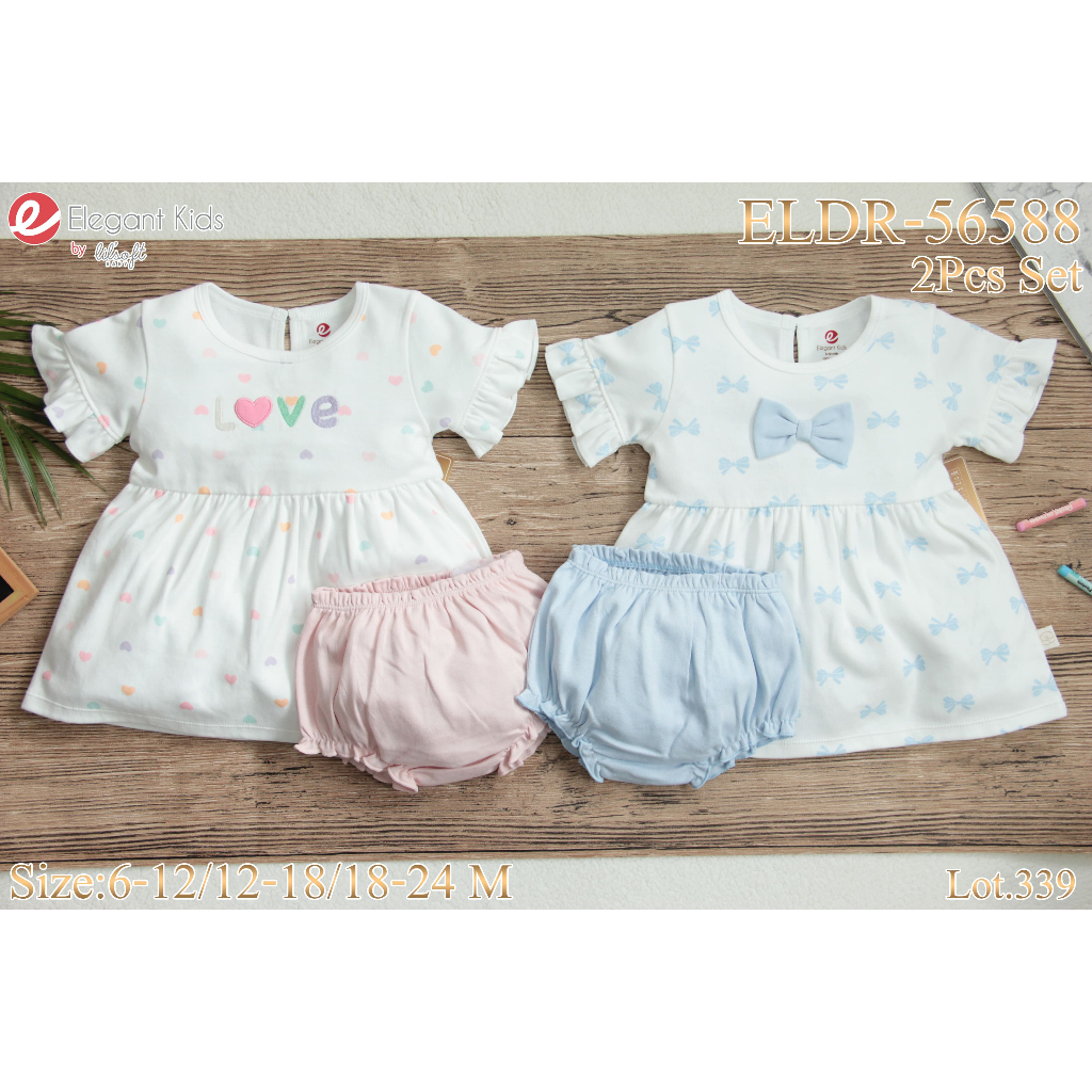 Elegant Kids ชุดลูกสาว 6-24เดือน ชุดเสื้อแขนตุ๊กตา กางเกงขาสั้น ลายเห็ดเต่าทอง
