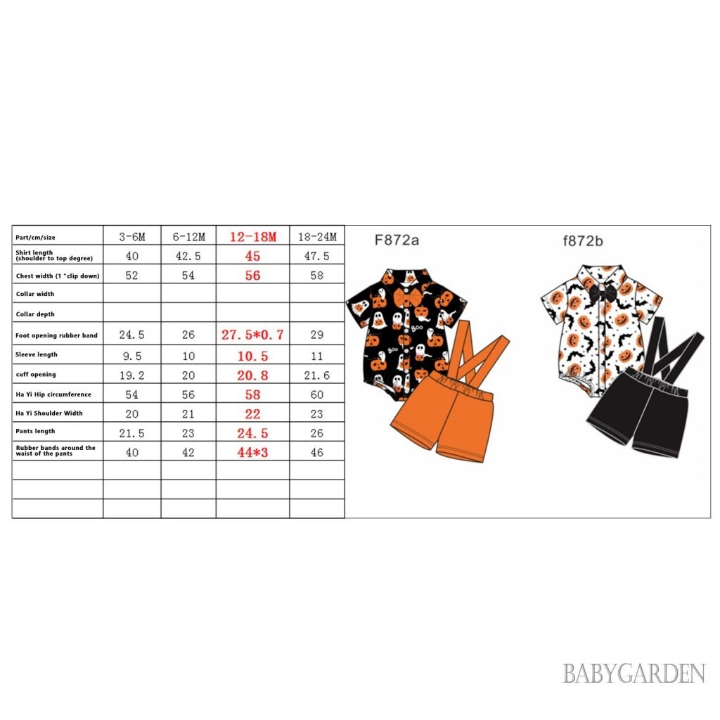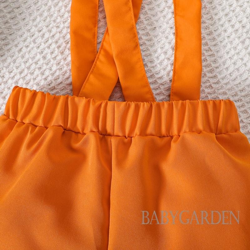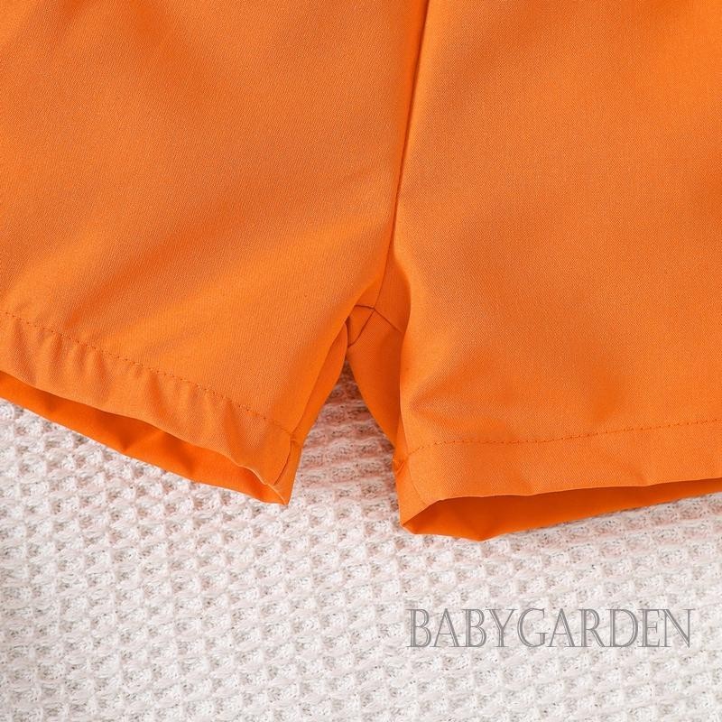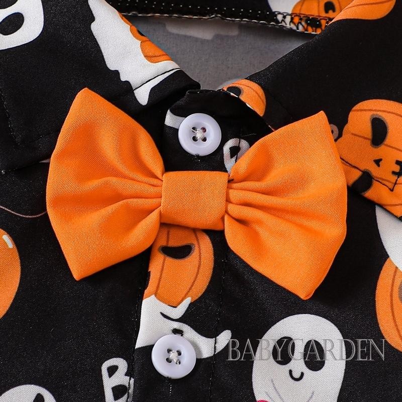 Baga-3-24months เด็กทารกฮาโลวีนชุดฟักทองพิมพ์แขนสั้นปุ่มลง Romper พร้อมกางเกงขาสั้นแขวนแข็ง 2 ชิ้นชุด