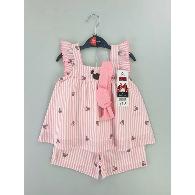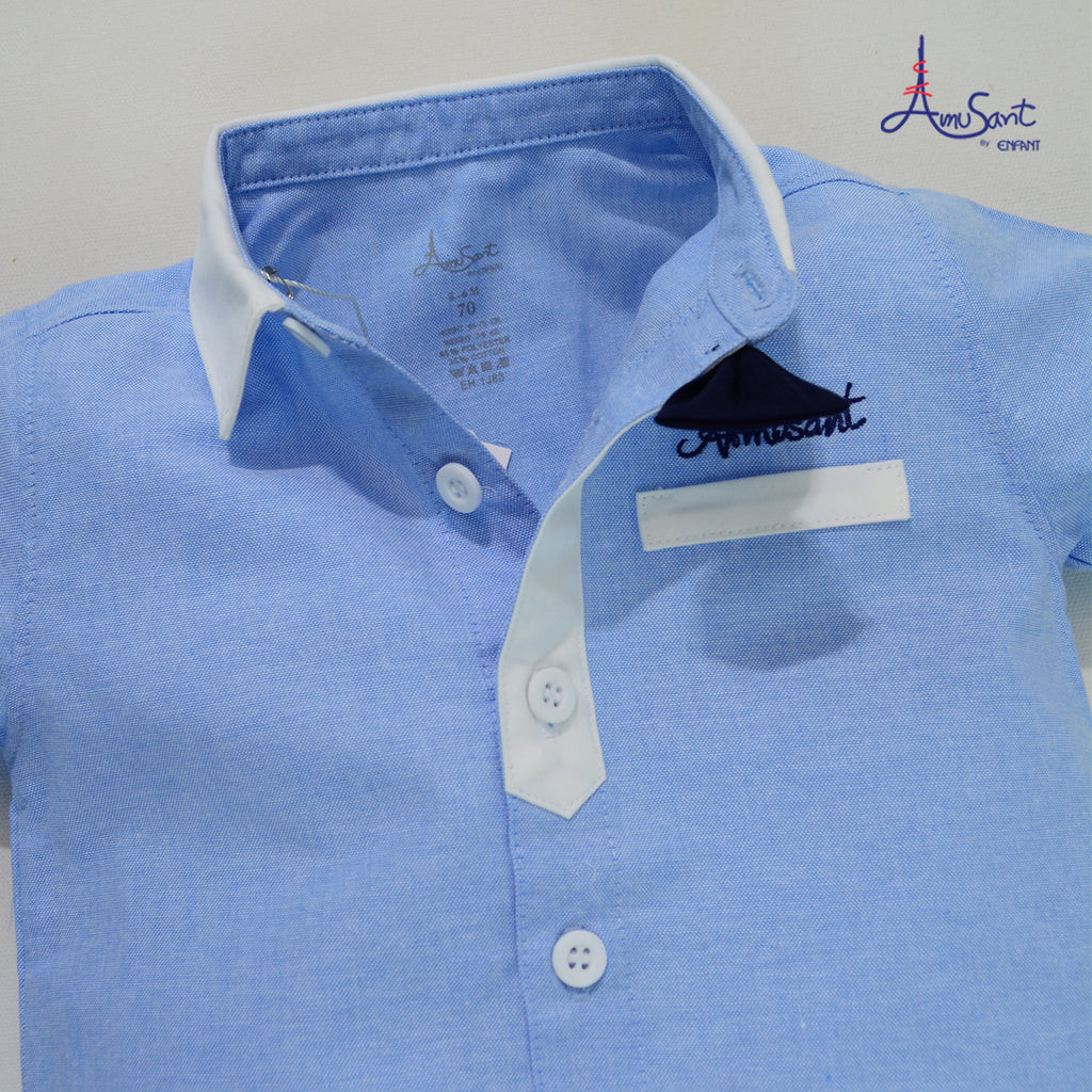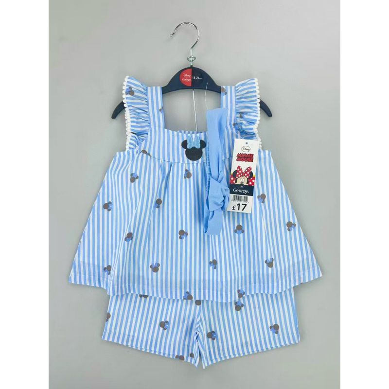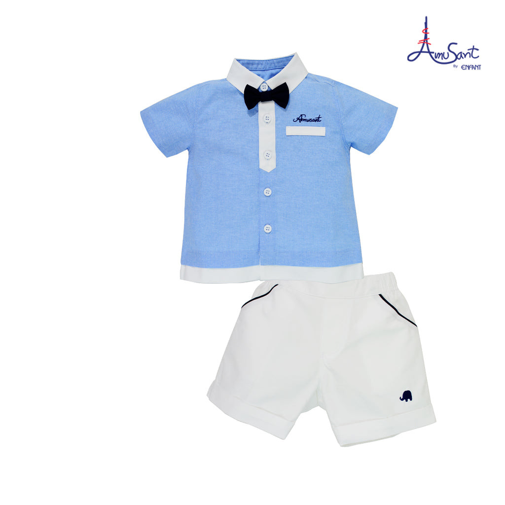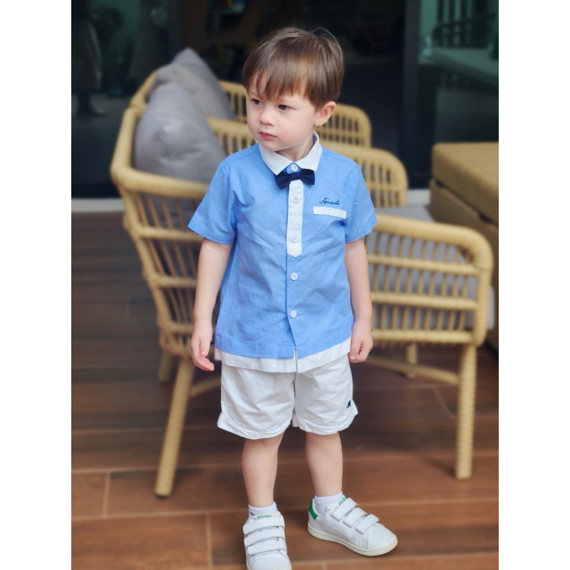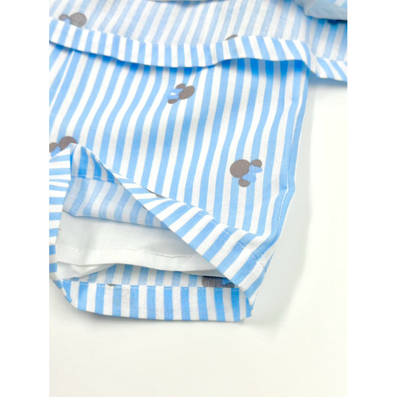 Cali ชุดเสื้อเชิ้ตแขนสั้น+กางเกงขาสั้น ผ้ามัสลินทอ สีพาลเทล*ป้าย Cali Baby