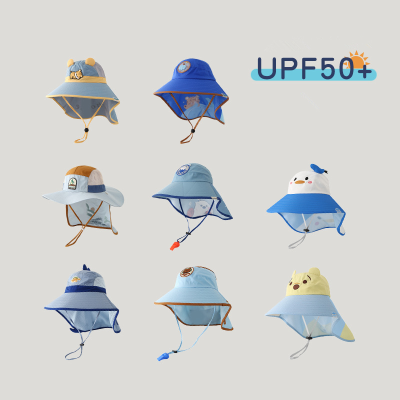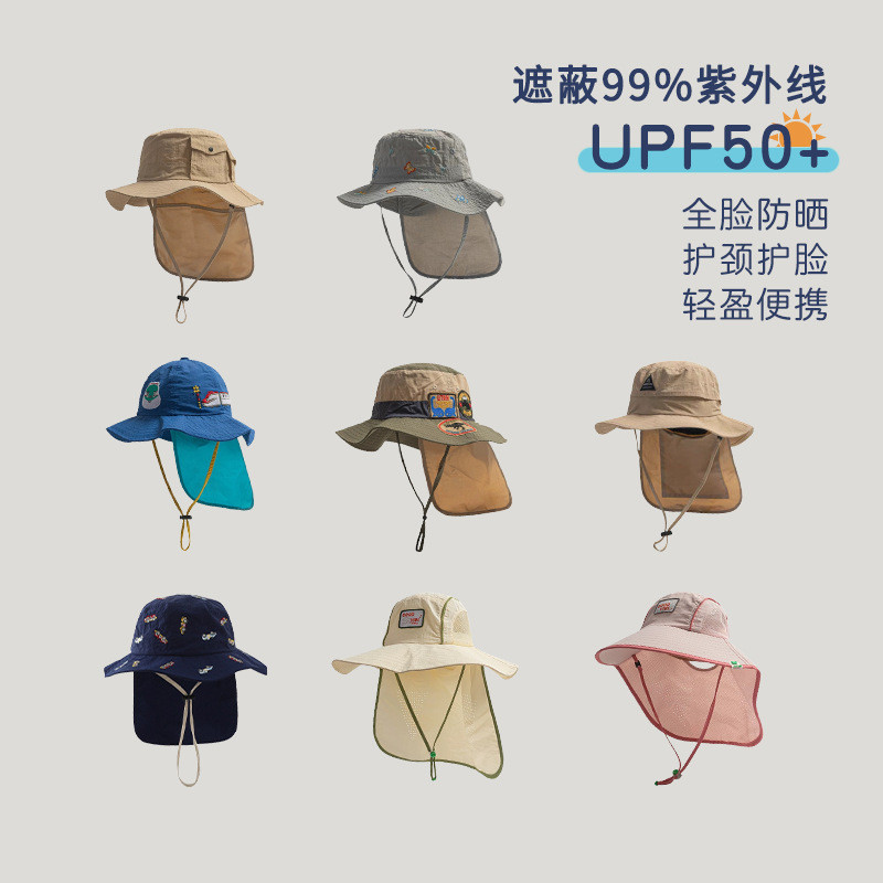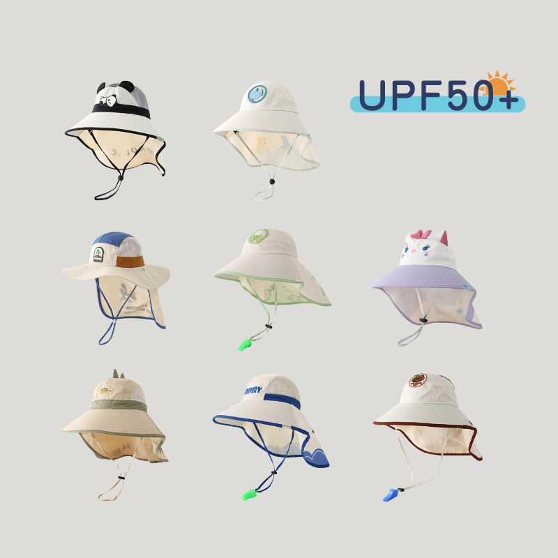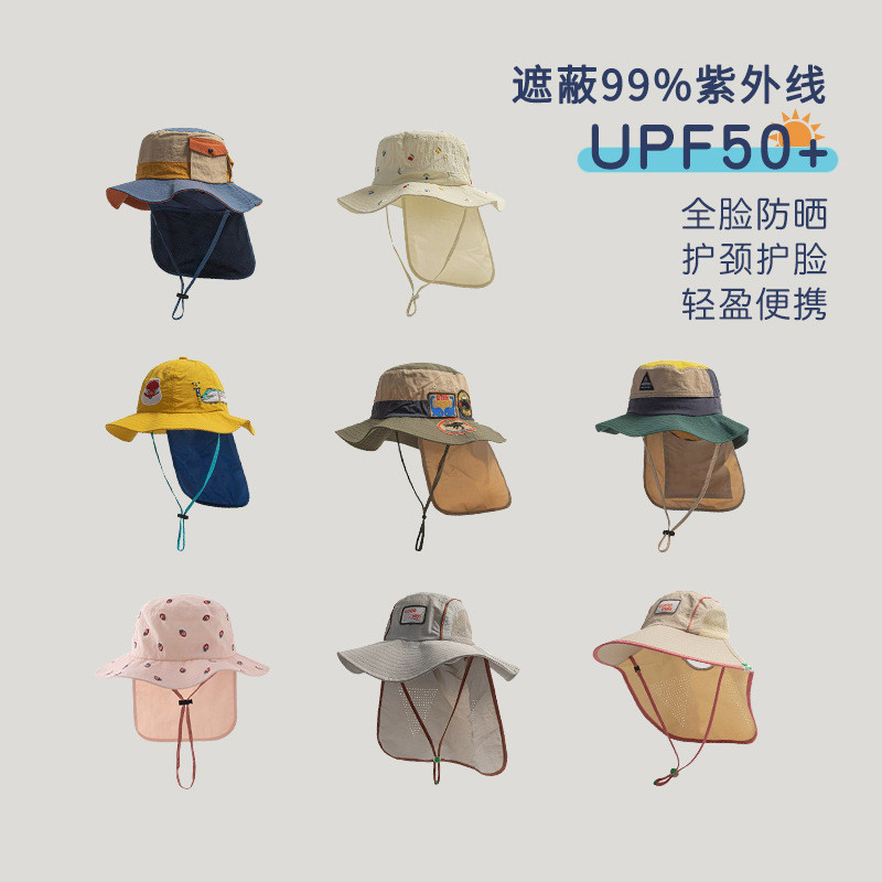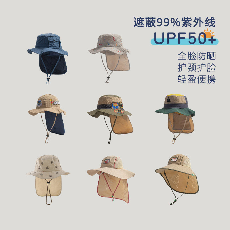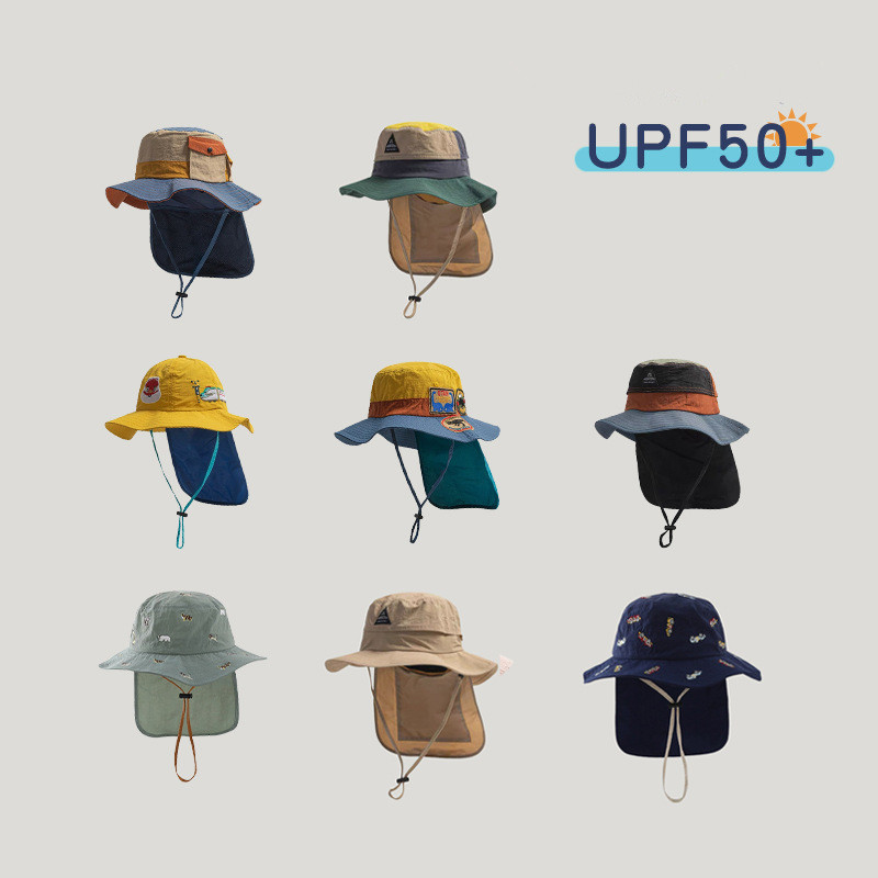 [1-20 ปี] หมวกเด็กฤดูร้อนป้องกันคอป้องกันแสงแดดแห้งเร็วหมวกกันแดดชายป้องกันแสงแดดถังหมวกสาวหมวกชายหาด QN504