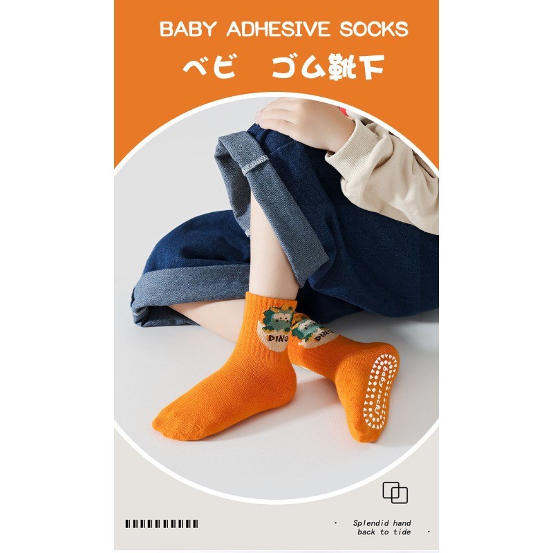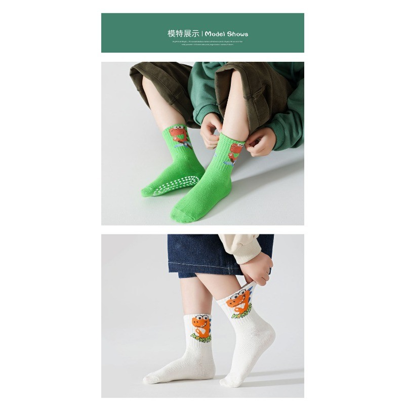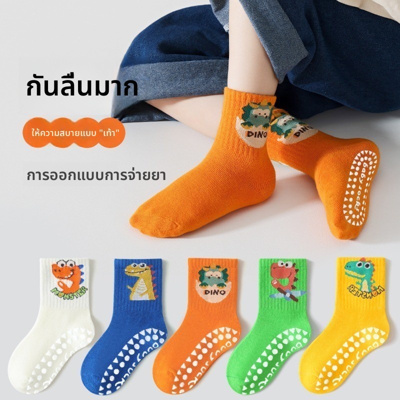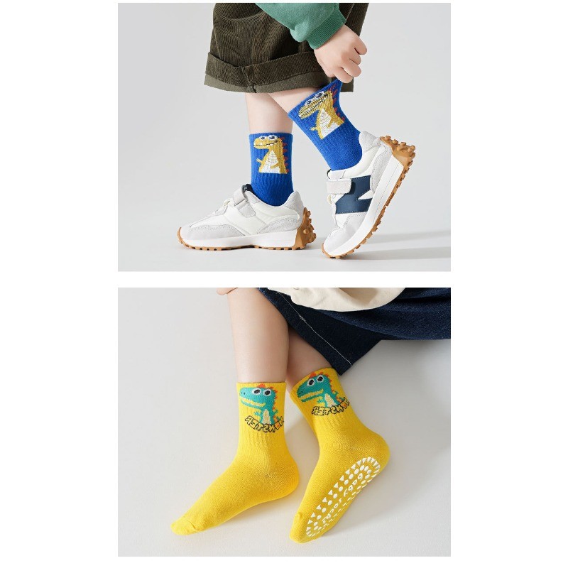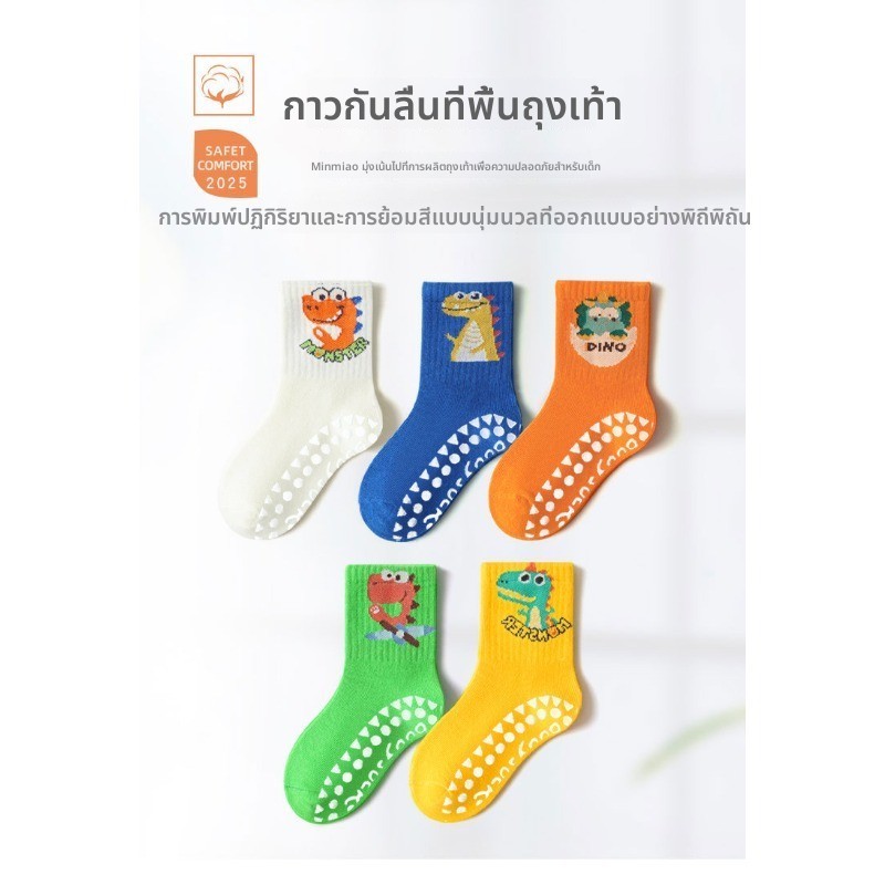 [5 คู่] ถุงเท้ากันลื่นสําหรับเด็ก Combed Cotton Breathable Mid-Tube การ์ตูนน่ารักสบาย S-XL Size