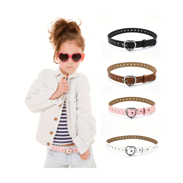 (พร้อมส่ง)🇹🇭 เข็มขัดเด็กหนังเทียมหัวเข็มขัดรูปหัวใจ แฟชั่นเข็มขัดเด็กอินเทรน