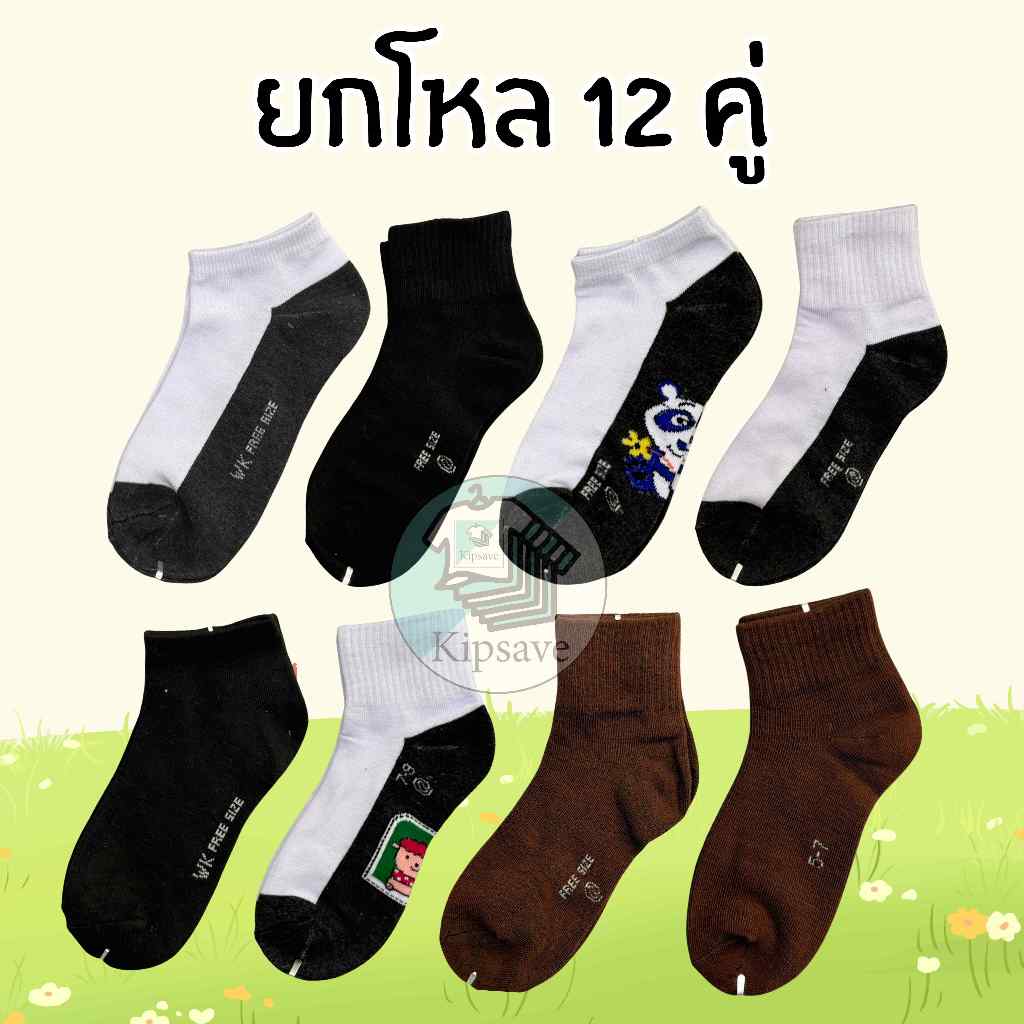 (12/6คู่) ถุงเท้านักเรียน ถุงเท้าทำงาน ข้อกลางสีน้ำตาลป้ายเหลือง มีหลายไซส์ให้เลือก ขายแบบ6คู่กับ12คู่ สินค้าพร้อมส่ง