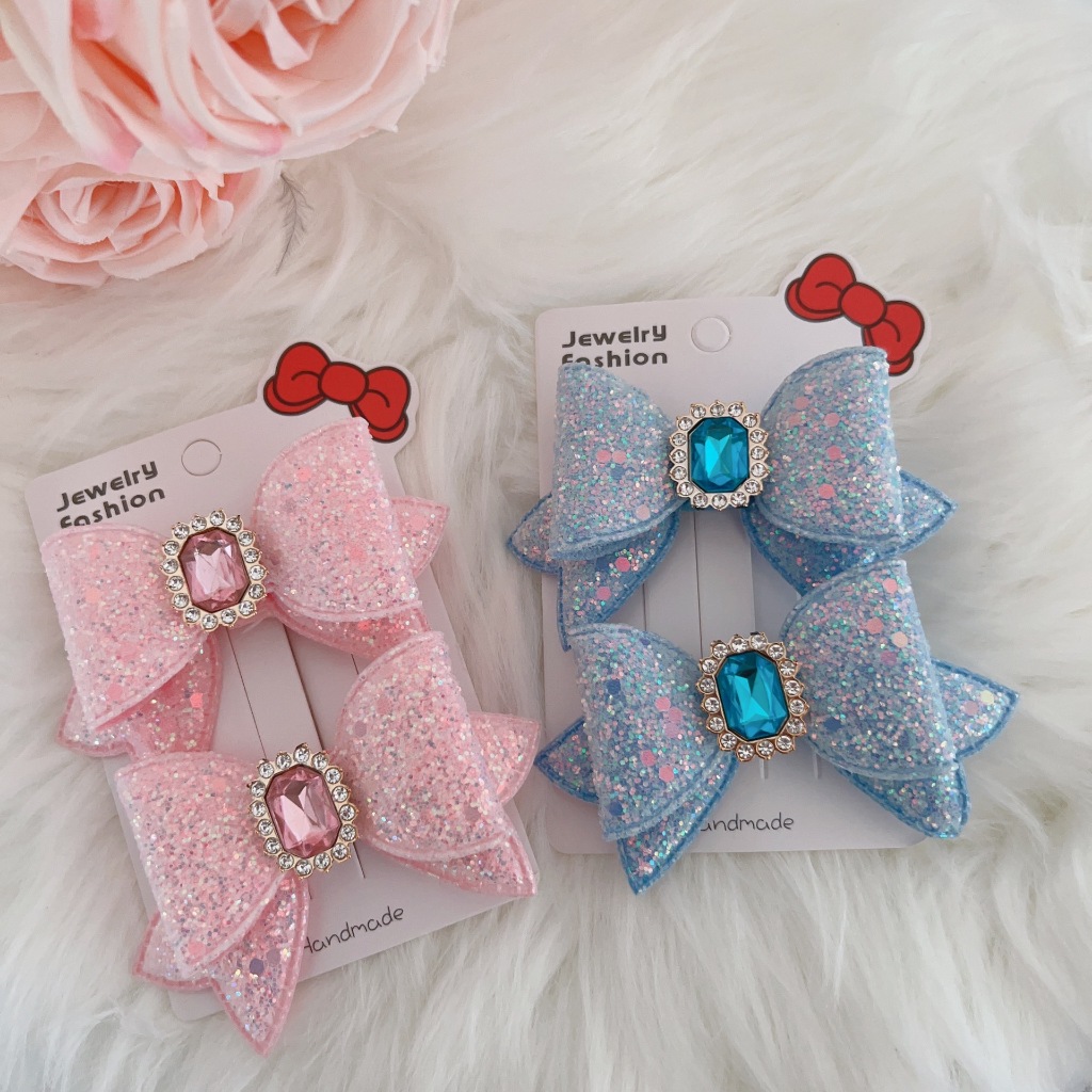✨2ชิ้น/เซ็ต! กิ๊บผีเสื้อ3D 👑แฮนด์เมดเด็ก 👧🏻เพชรเทียม ✨ชมพู+ฟ้า