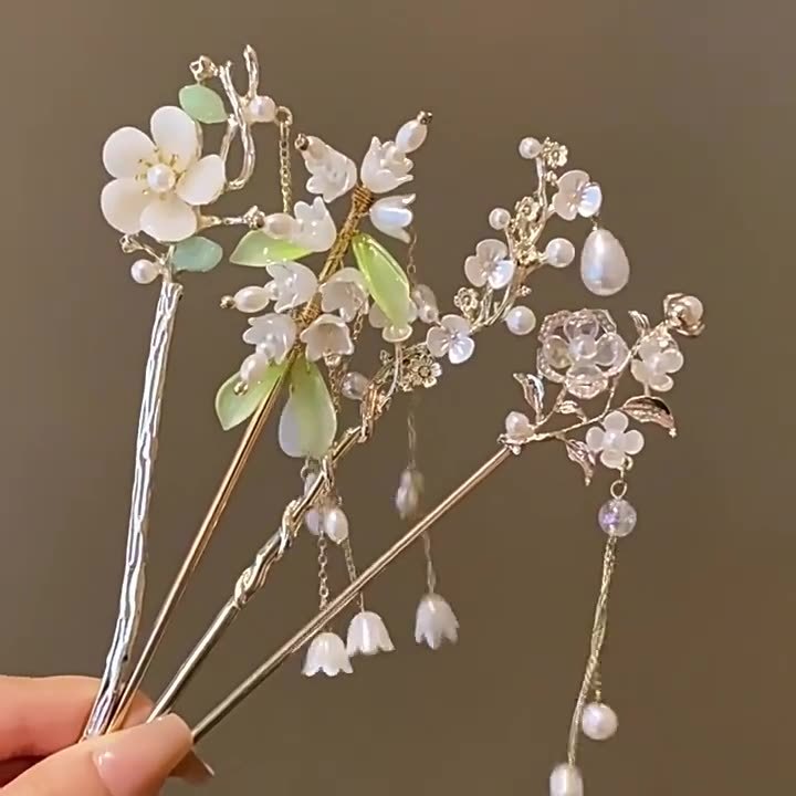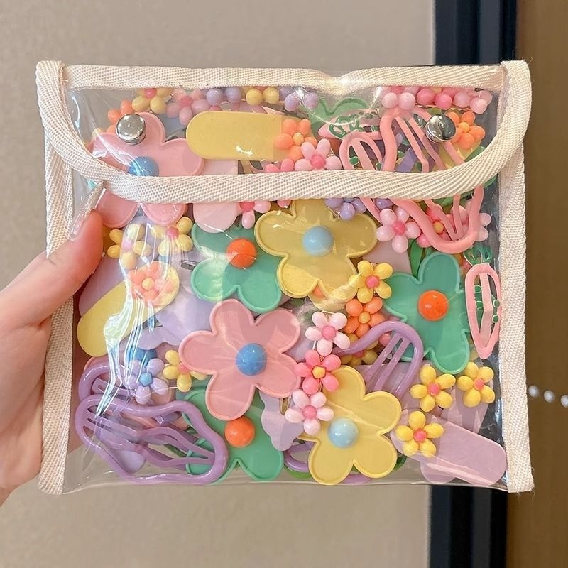 กิ๊บติดผมคลิปหน้าม้าด้านข้างสำหรับเด็กผู้หญิง สไตล์นุ่มนวลและลายดอกไม้