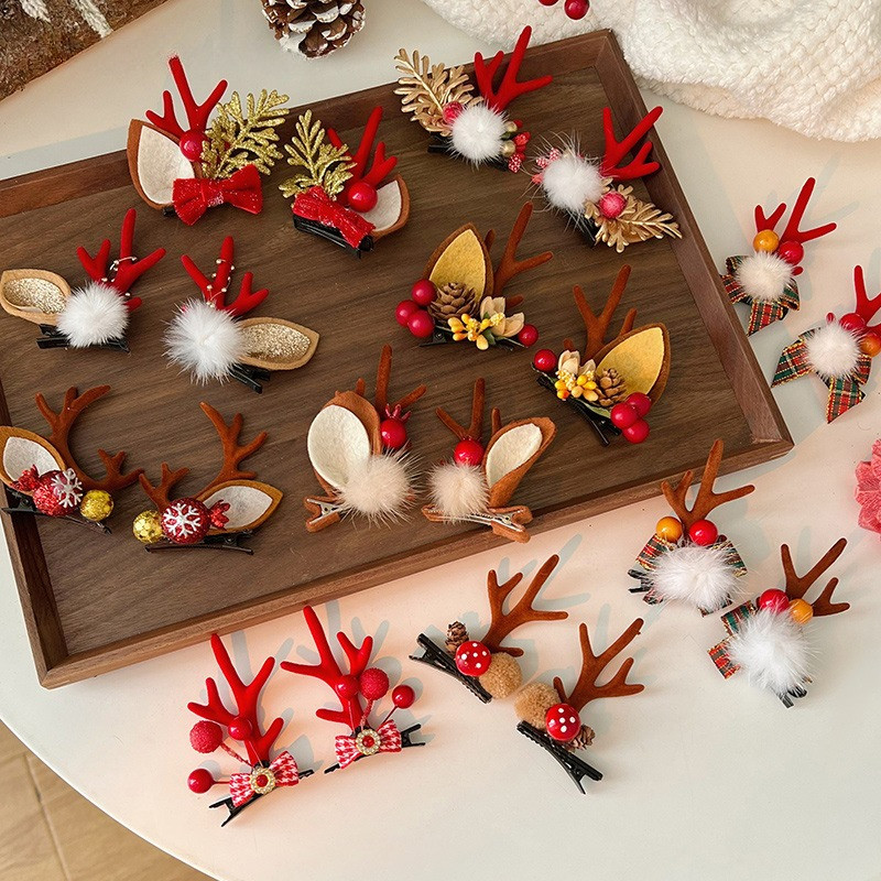 กิ๊บติดผมน่ารักแบบกวางฮอร์น ชุดสองชิ้น สไตล์คริสต์มาส สำหรับผู้หญิง และของขวัญที่ดี