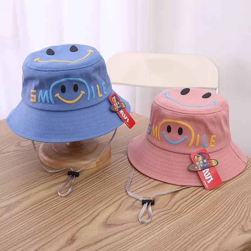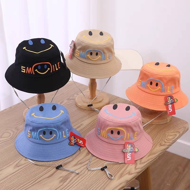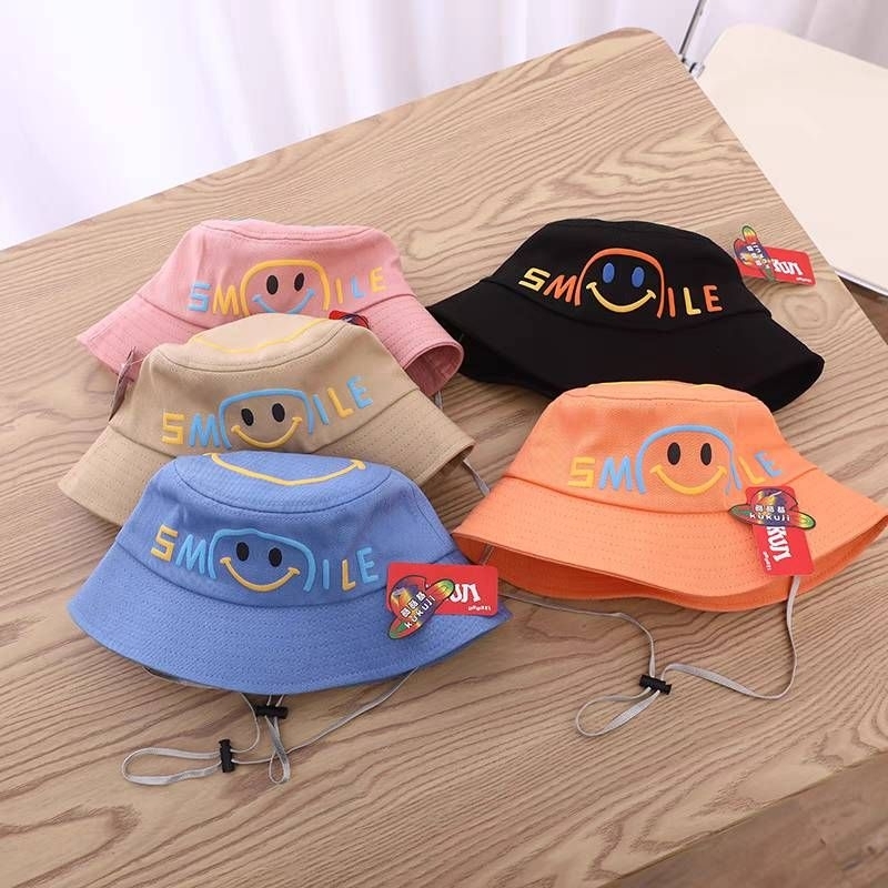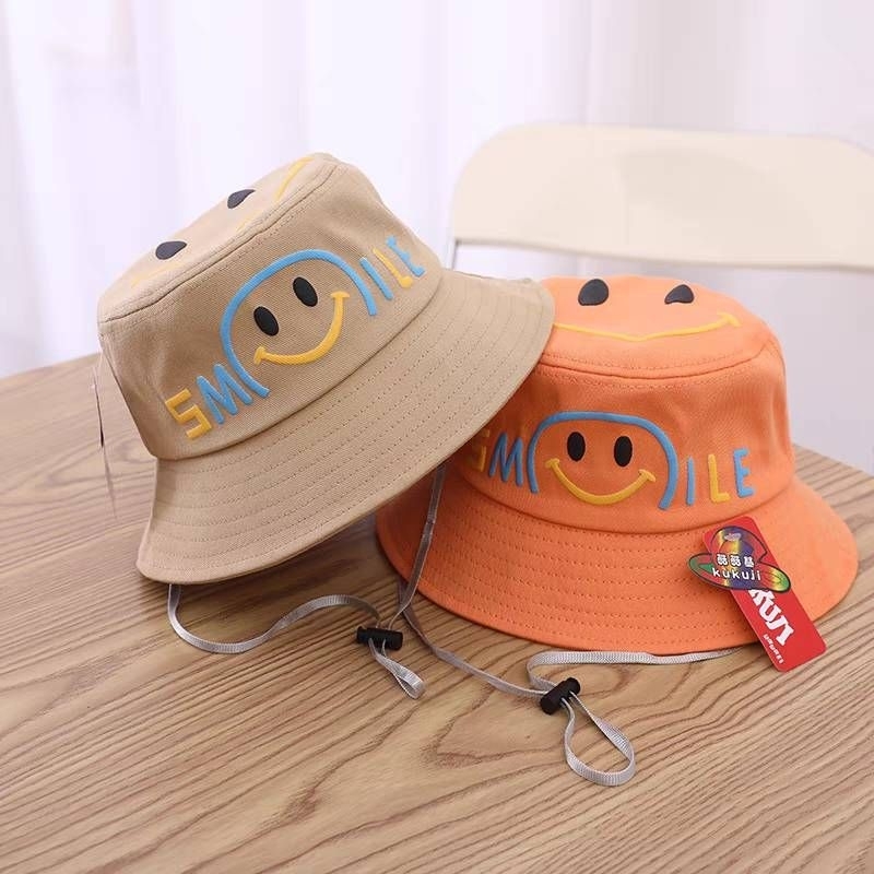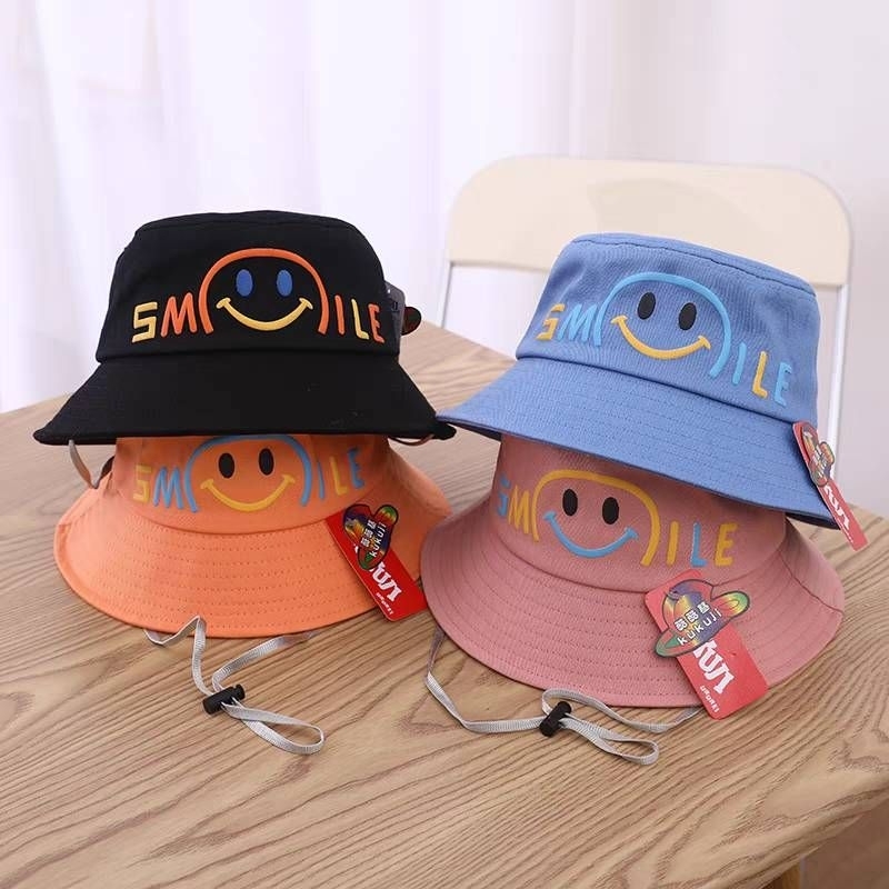 [พร้อมส่ง] หมวกเด็ก 12เดือน-7ปี รอบหัว:52-54 cm. หมวกบักเก็ต (Bucket) แต่งอิโมจิหน้ายิ้ม 😀 (smile) หมวกแฟชั่นเด็ก